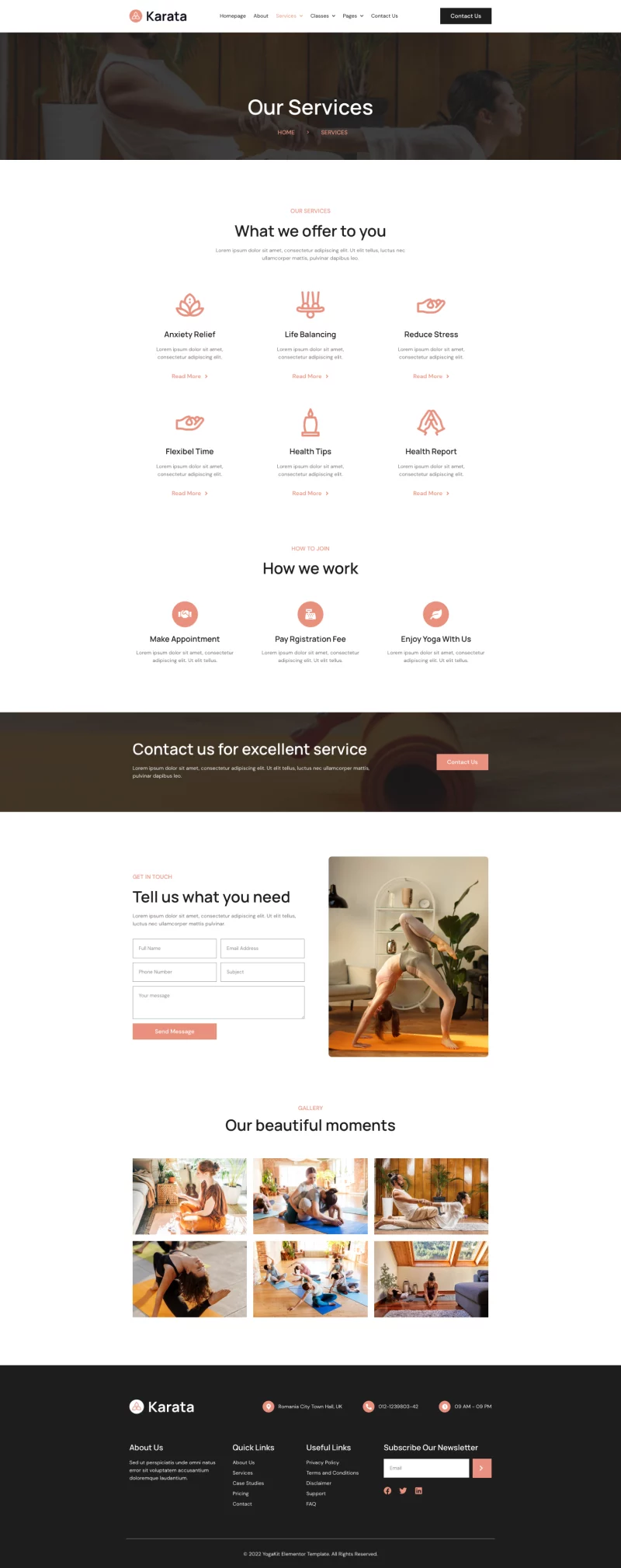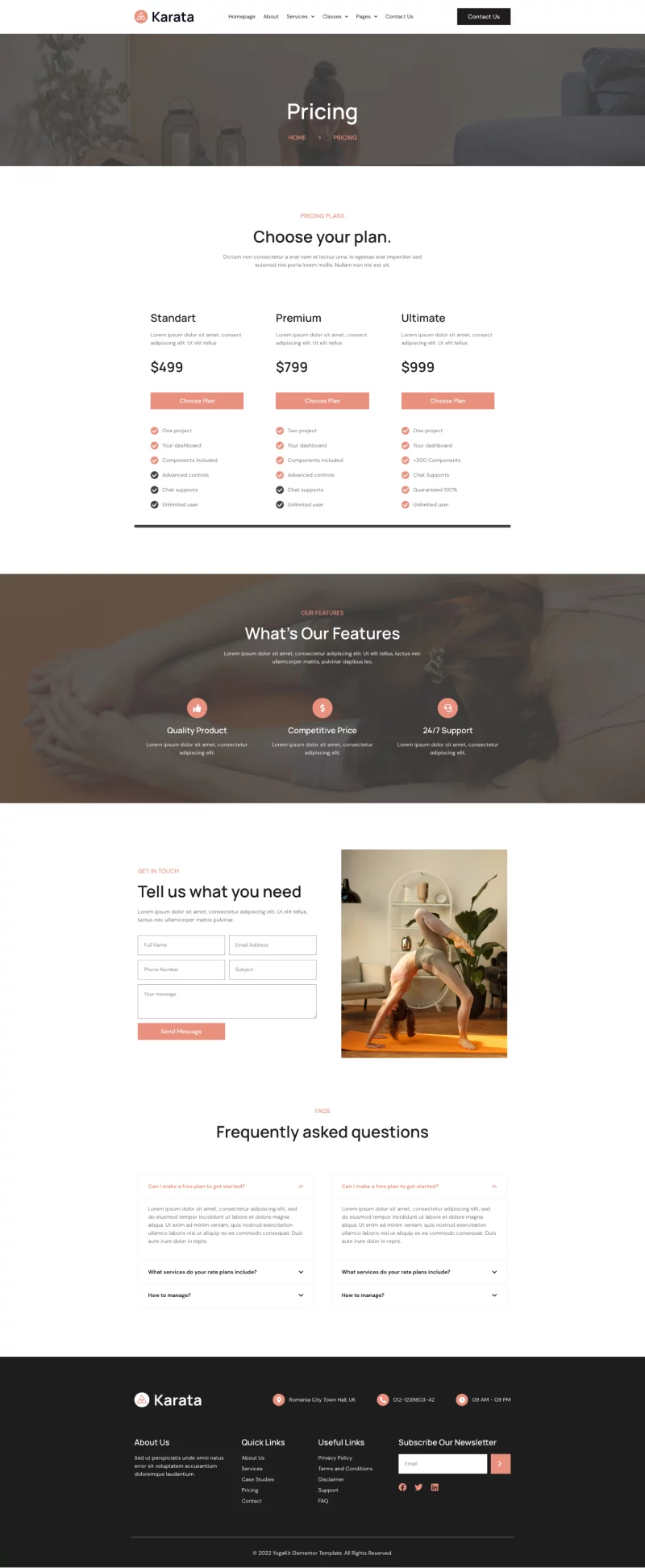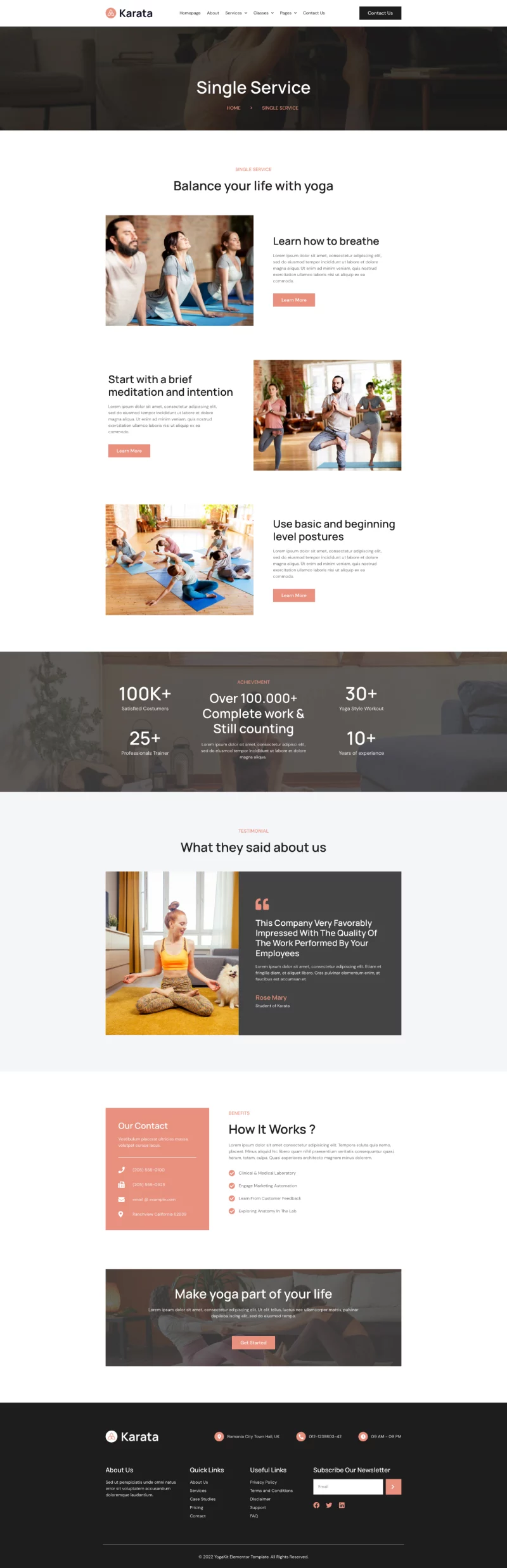 با کیت قالب المنتور مربی و استودیوی یوگا Karata، میتوانید وبسایت خود را با بودجهای کم و با تنها چند کلیک بسازید. این قالب شامل 10 قالب از پیش طراحی شده است که به شما کمک میکند تا به سرعت وبسایت حرفهای خود را راهاندازی کنید. برای استفاده از برخی از قالبها و ویژگیها، به ارتقاء المنتور پرو نیاز خواهید داشت.