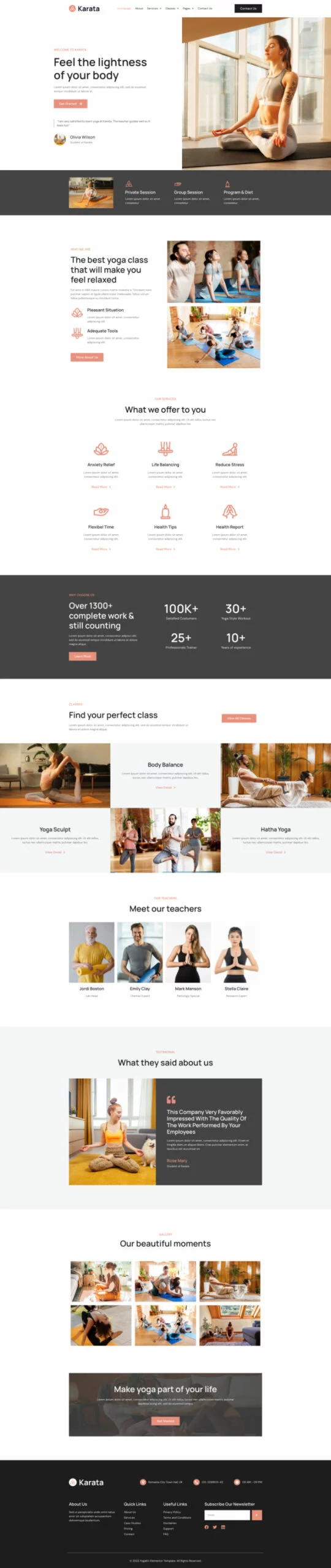 Karata یک کیت قالب المنتور برای مربیان و استودیوهای یوگا است که برای ایجاد وبسایتهای یوگا استودیو، مربیان یوگا، مدیتیشن، تناسب اندام و سبک زندگی ایدهآل میباشد. این قالب دارای طراحی حرفهای با یک طرحبندی کاملاً پاسخگو و آماده برای رتینا است و به دلیل استفاده از المنتور بسیار آسان برای سفارشیسازی میباشد؛ بنابراین نیازی به یک خط کدنویسی ندارید!