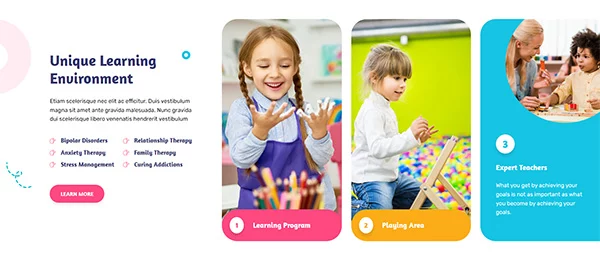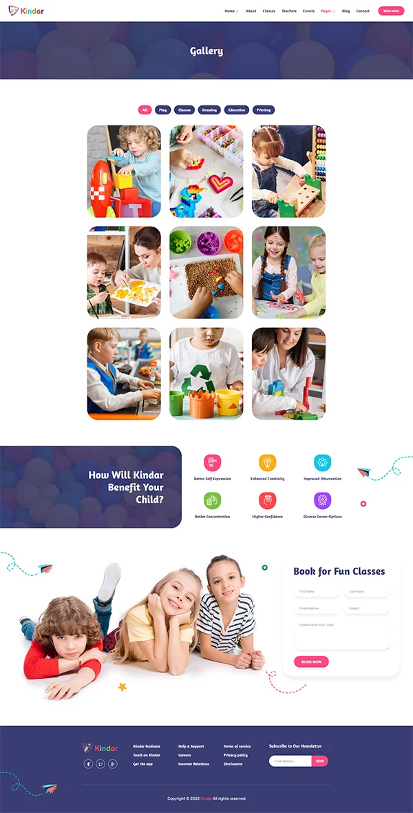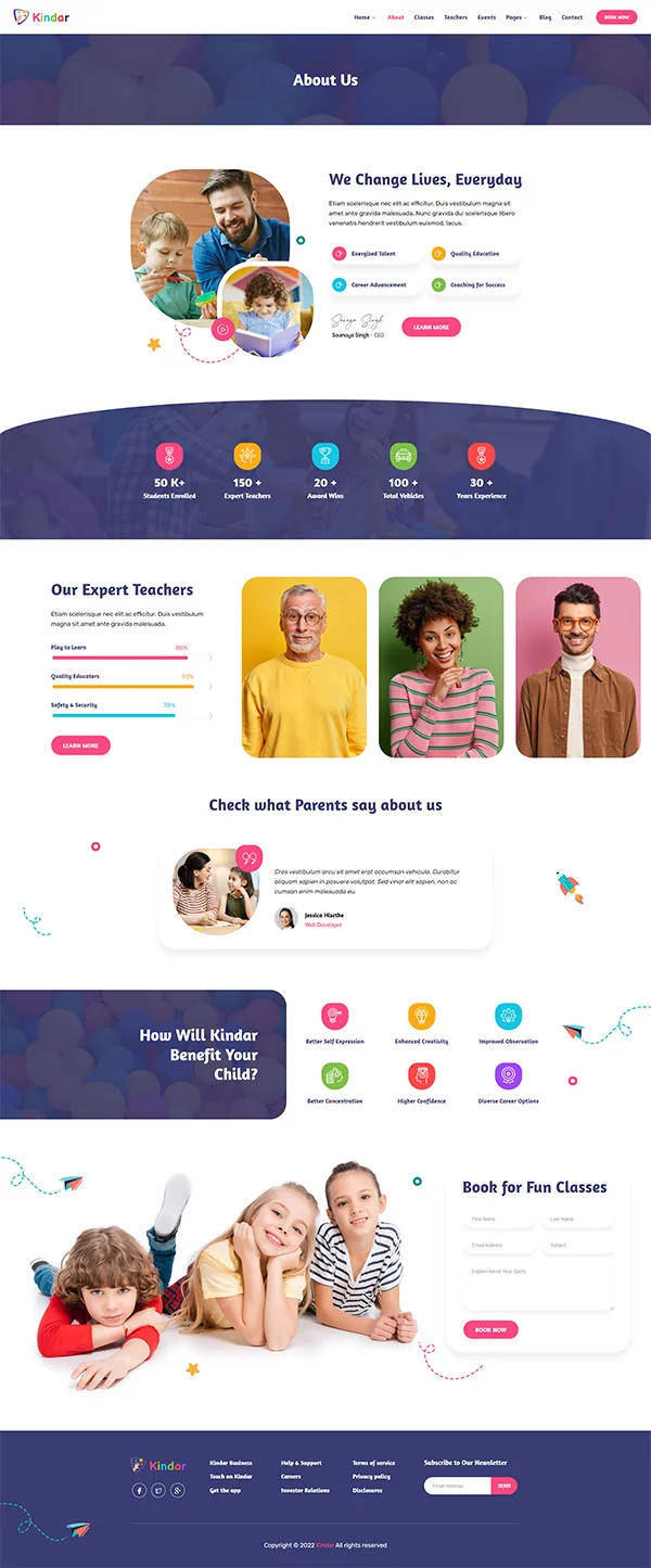 این کیت با داشتن 12 دمو پیشساخته و طراحی تمیز و مدرن، به شما این امکان را میدهد که به سرعت و به راحتی محتوای دلخواه خود را اضافه کنید و وبسایتی منحصر به فرد و جذاب برای جذب والدین و کودکان ایجاد کنید. تمام بخشها و قالبها کاملاً قابل تنظیم هستند، به شما این امکان را میدهد که رنگها، فونتها و محتوای سایت خود را به دلخواه تغییر دهید و بهترین تجربه کاربری را برای بازدیدکنندگان فراهم کنید.