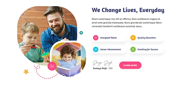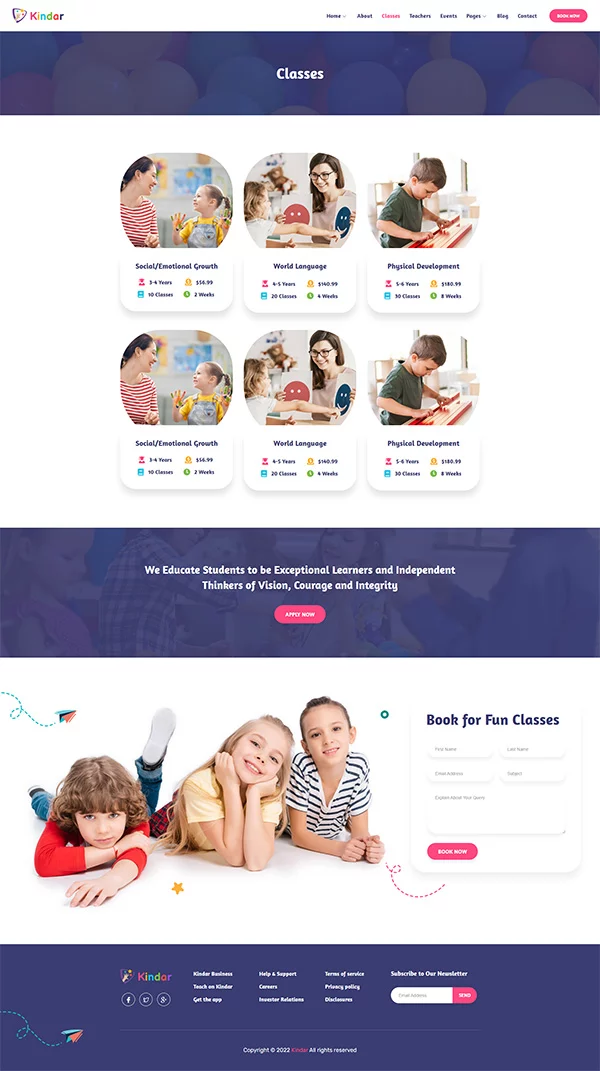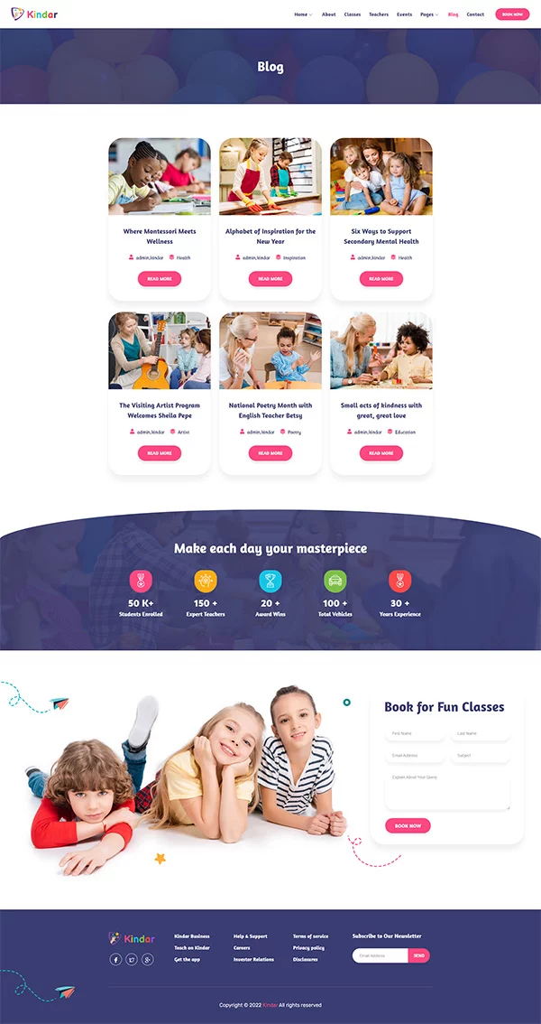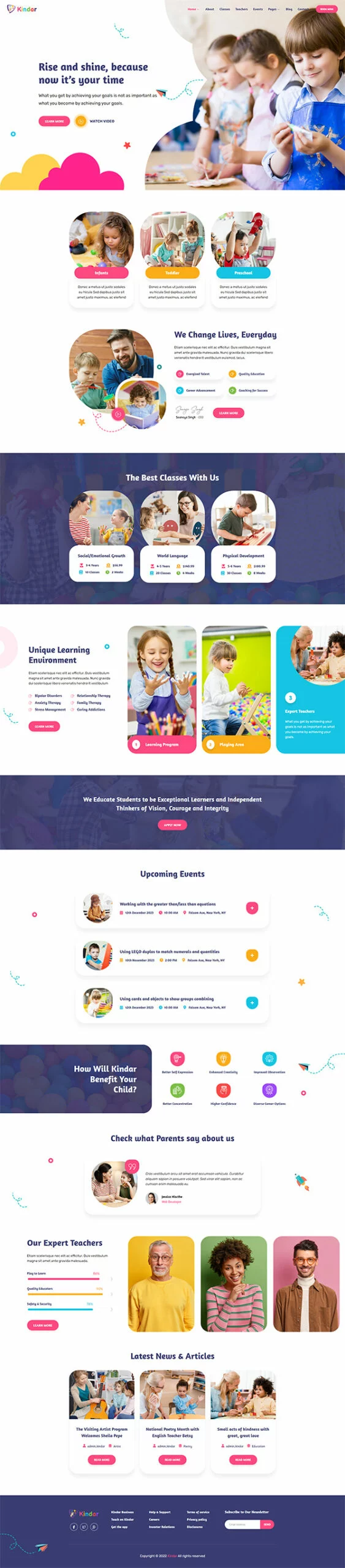 با کیت قالب المنتور مهدکودک و مدرسه Kindar، میتوانید تمامی نیازهای وبسایت مهدکودک و مدرسه خود را برآورده کنید، از معرفی معلمان و کلاسها گرفته تا نمایش رویدادها و گالری تصاویر، همه چیز در اختیار شماست تا وبسایتی کامل و حرفهای بسازید.