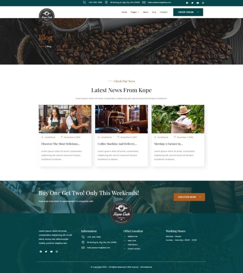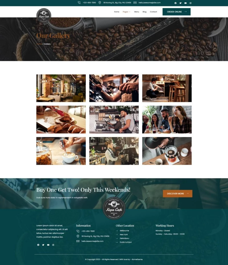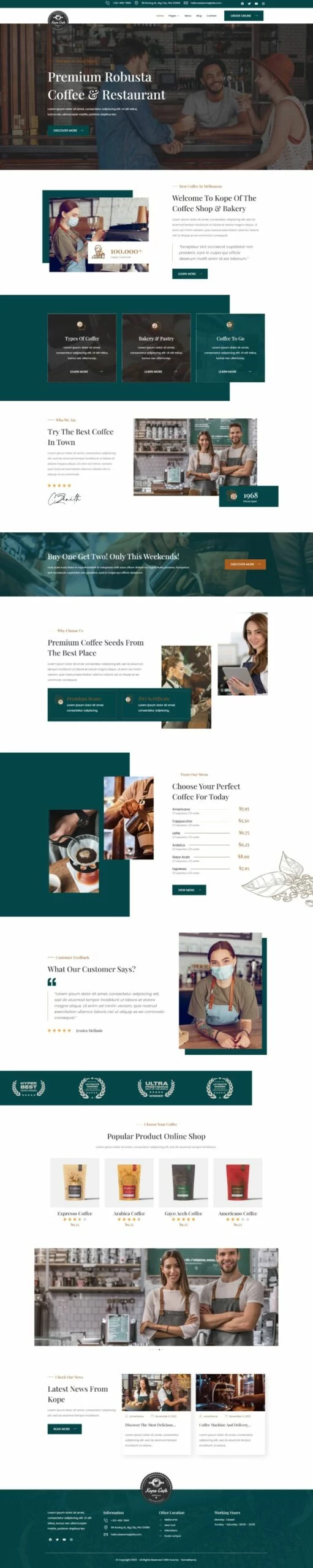 کیت قالب المنتور کافی شاپ و کافه Kope به شما امکان میدهد یک وبسایت حرفهای برای کافیشاپ، بار، رستوران یا هر کسبوکار مرتبط ایجاد کنید. این کیت قالب با طراحی واکنشگرا و مدرن، تجربه کاربری بهتری را برای بازدیدکنندگان شما فراهم میکند و تضمین میکند که وبسایت شما در تمامی دستگاهها و مرورگرها بهخوبی نمایش داده شود.
