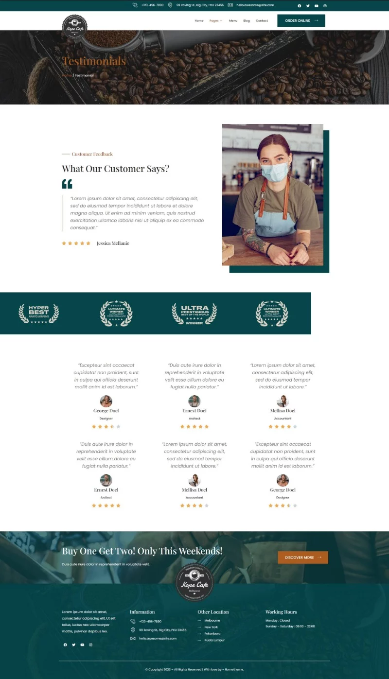 توضیحات بیشتر درباره کیت قالب المنتور کافی شاپ و کافه Kope