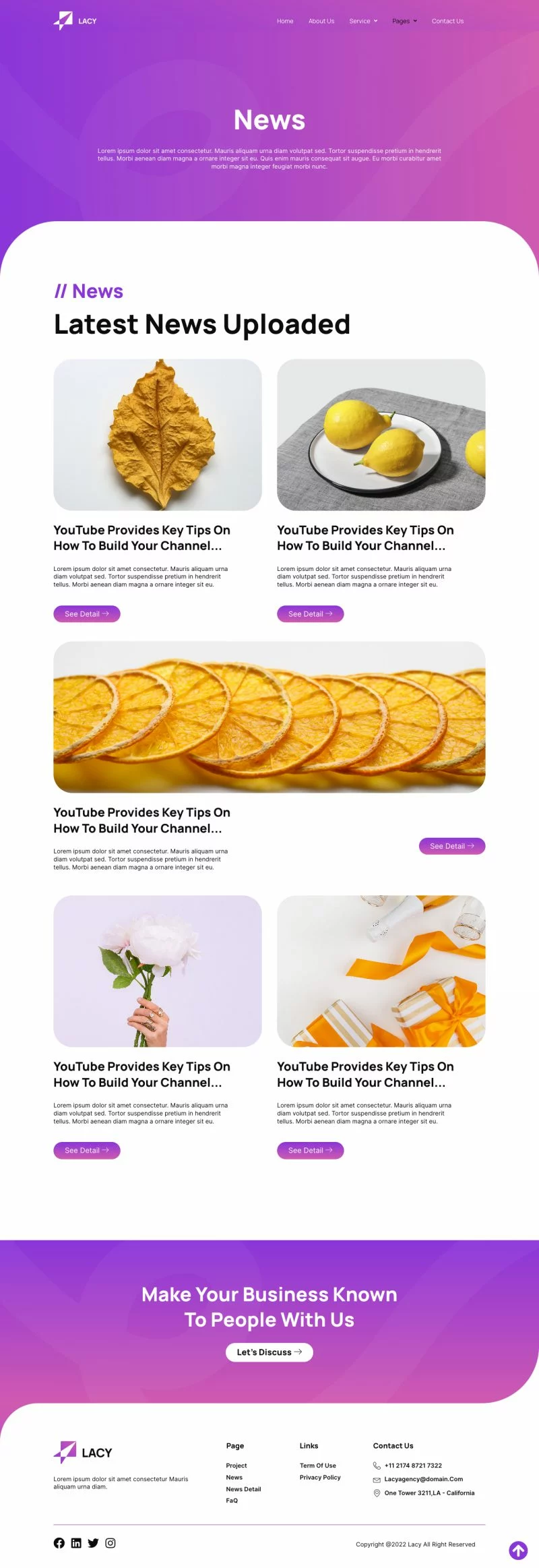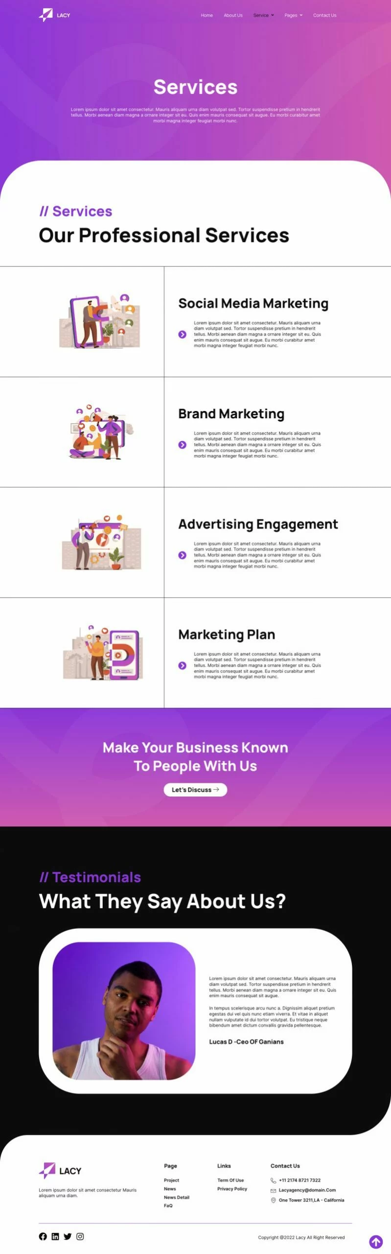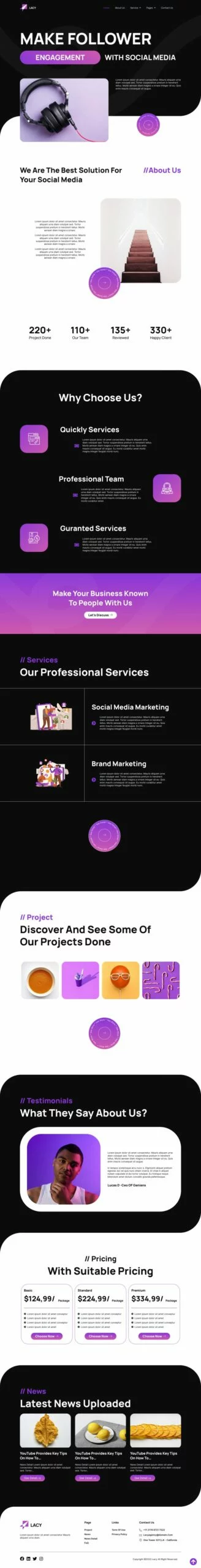 کیت قالب المنتور بازاریابی شبکه های اجتماعی Lacy با طراحی حرفهای و مدرن، به شما کمک میکند تا یک وبسایت جذاب و کاربرپسند برای کسبوکار خود ایجاد کنید.