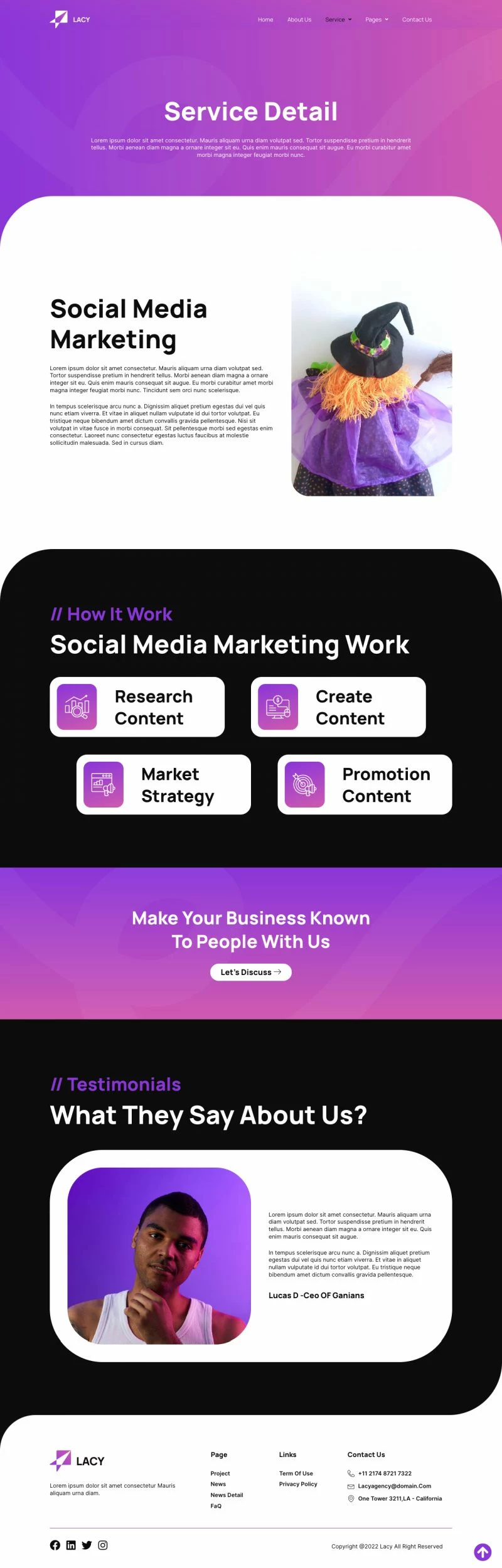 کیت قالب المنتور بازاریابی شبکه های اجتماعی Lacy برای ایجاد سریع و آسان وبسایتهای تجاری شما با استفاده از افزونه Elementor Page Builder برای وردپرس طراحی شده است. این یک قالب وردپرس نیست. کیتهای قالب شامل محتوای صفحه برای صفحهساز المنتور هستند. این کیت برای استفاده با قالب رایگان Hello Elementor بهینه شده است اما میتواند با بیشتر قالبهایی که از المنتور پشتیبانی میکنند، استفاده شود.