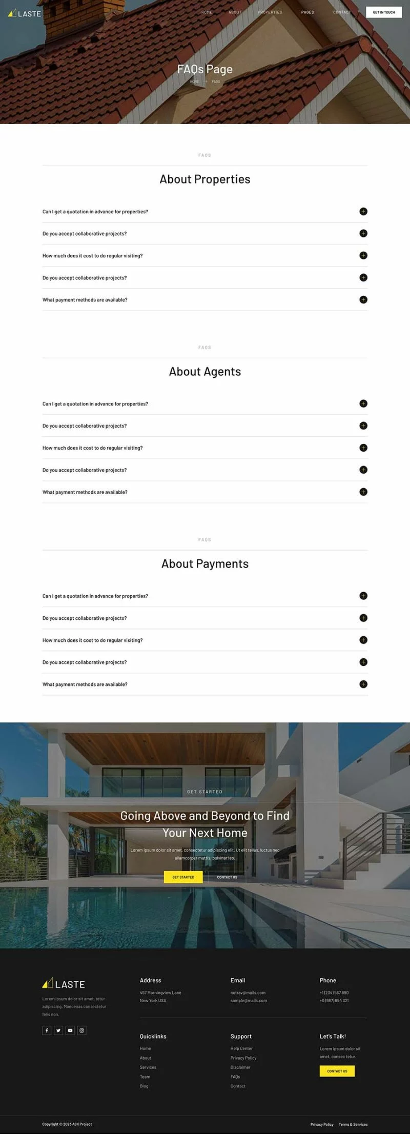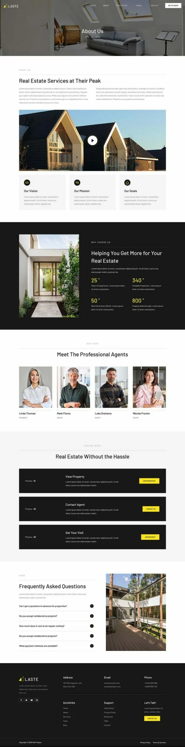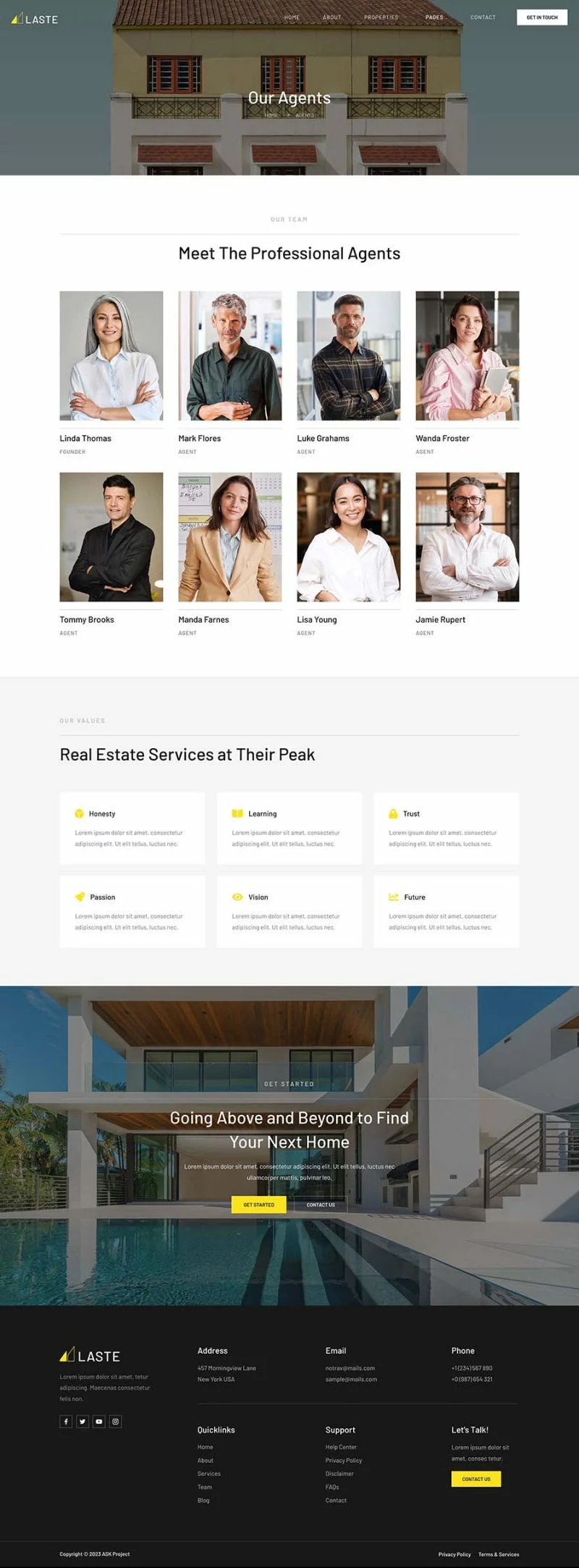 کیت قالب المنتور املاک و مستغلات Laste بهطور ویژه برای آژانسهای املاک، مشاوران املاک، سازندگان خانه، شرکتهای ساختمانی، پیمانکاران املاک، نمایشگاههای معماری و غیره طراحی شده است. Laste دارای طراحی ساده، مدرن و تمیز با یک چیدمان 100٪ واکنشگرا است که بسیار آسان برای سفارشیسازی است و میتواند توسط هر کسی بدون نیاز به دانش کدنویسی استفاده شود.