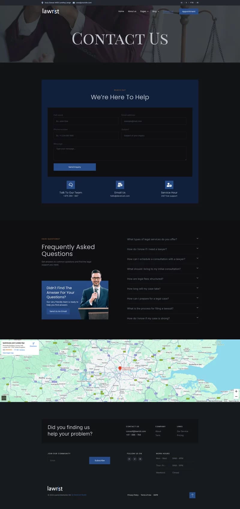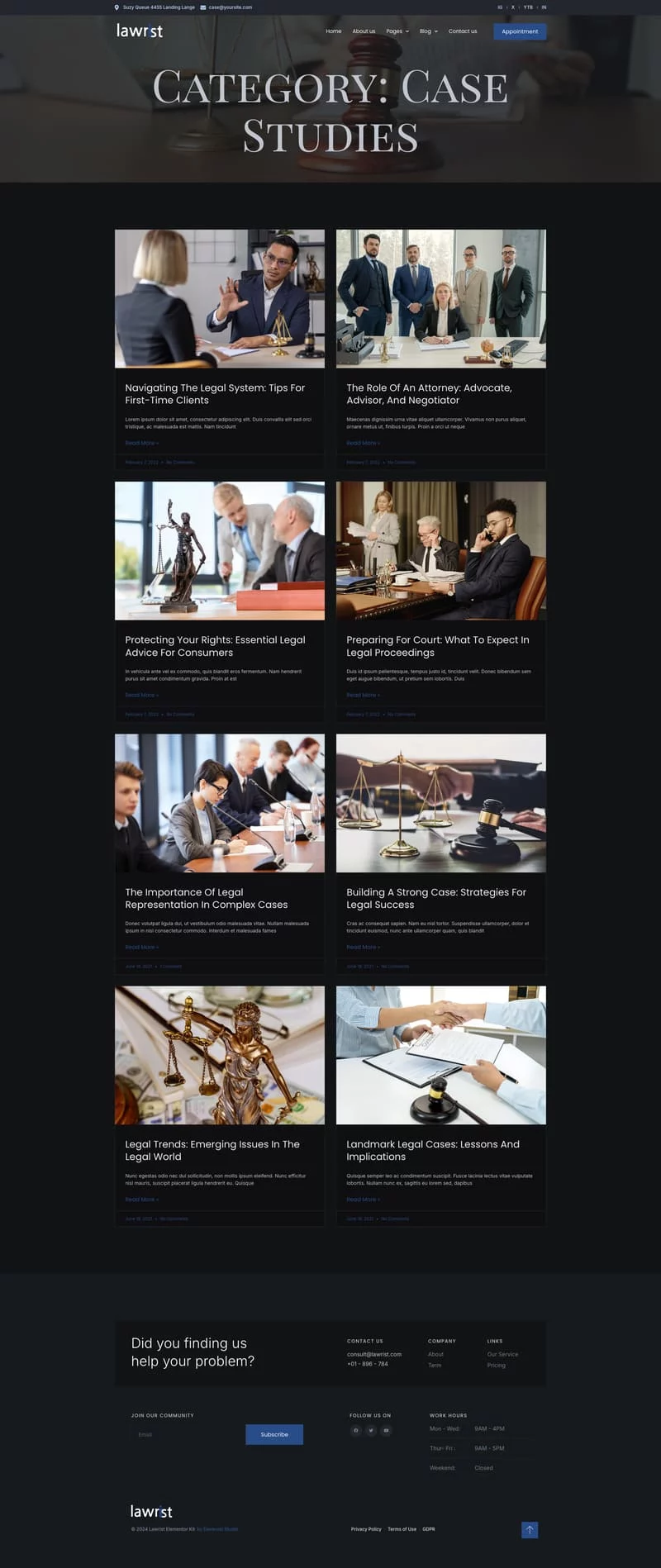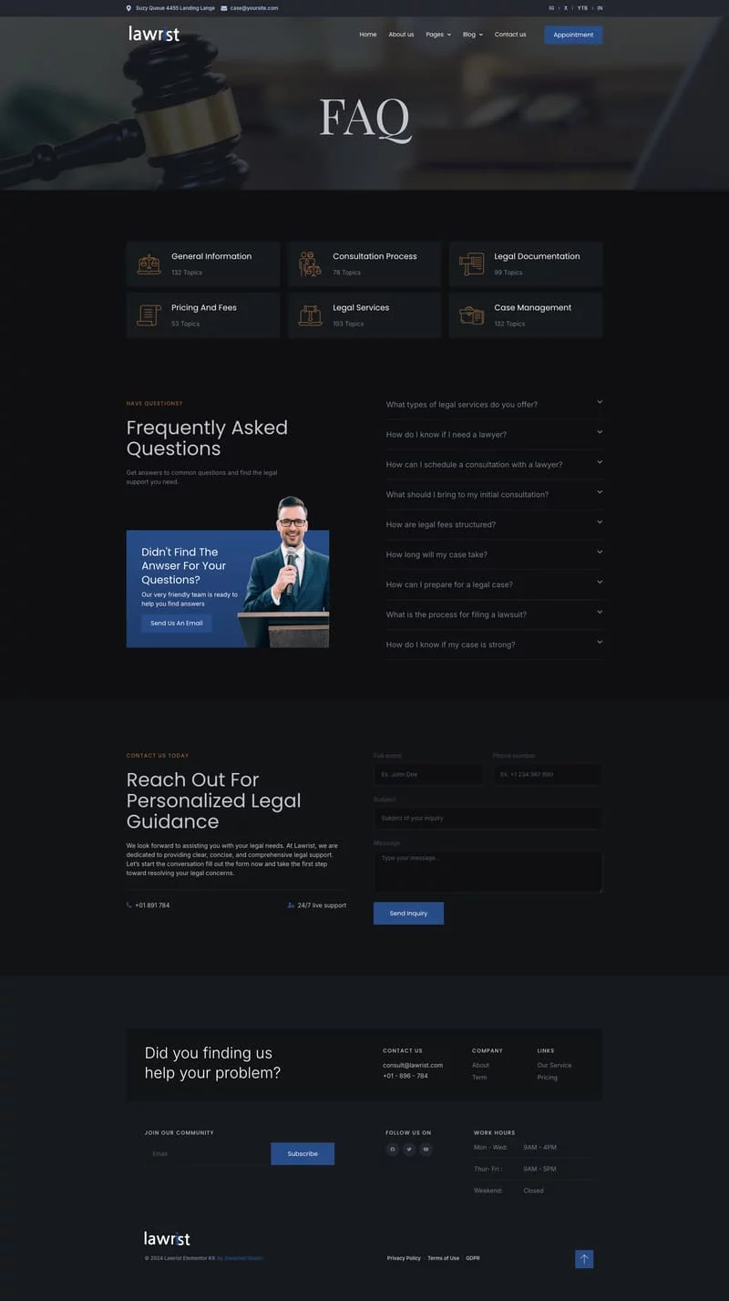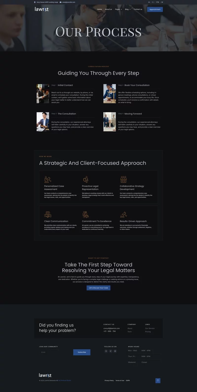 چه یک وکیل باتجربه باشید و چه به تازگی فعالیت خود را آغاز کرده باشید، Lawrist با طراحی خاص و تمیز خود به شما کمک میکند تا یک تصویر حرفهای از برند حقوقی خود بسازید. همچنین، این کیت قالب به شما این امکان را میدهد که از طیف وسیعی از رنگها و فونتهای آماده استفاده کرده و ظاهر وبسایت خود را با هویت برندتان تطبیق دهید. قالب بهطور کامل ریسپانسیو است و در همه دستگاهها از موبایل تا دسکتاپ بهخوبی نمایش داده میشود.