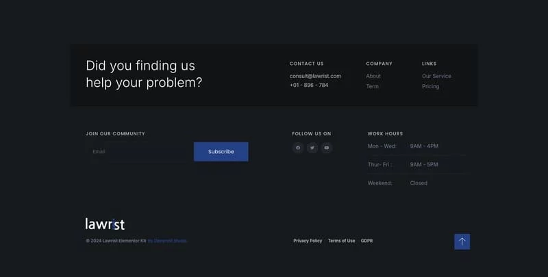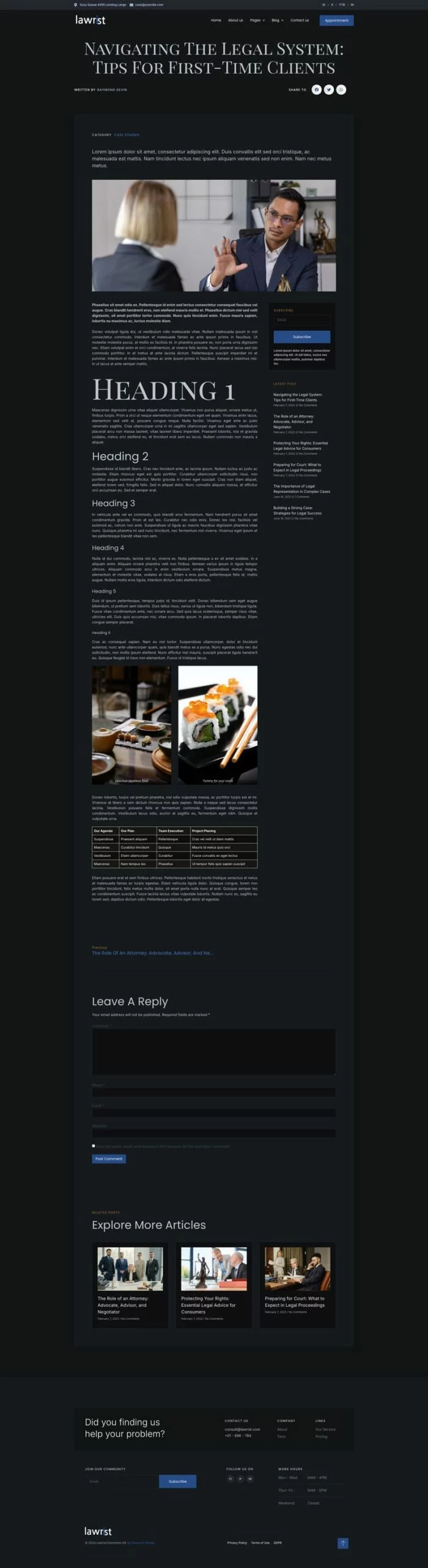 یکی از ویژگیهای برجسته Lawrist، امکان استفاده از رنگها و فونتهای نامحدود است که به شما این امکان را میدهد تا طراحی وبسایت خود را با هویت برندتان هماهنگ کنید. علاوه بر این، دکمه بازگشت به بالا و هدر ثابت به کاربران کمک میکند تا به راحتی در وبسایت شما حرکت کنند و برند شما همیشه در معرض دید باشد.