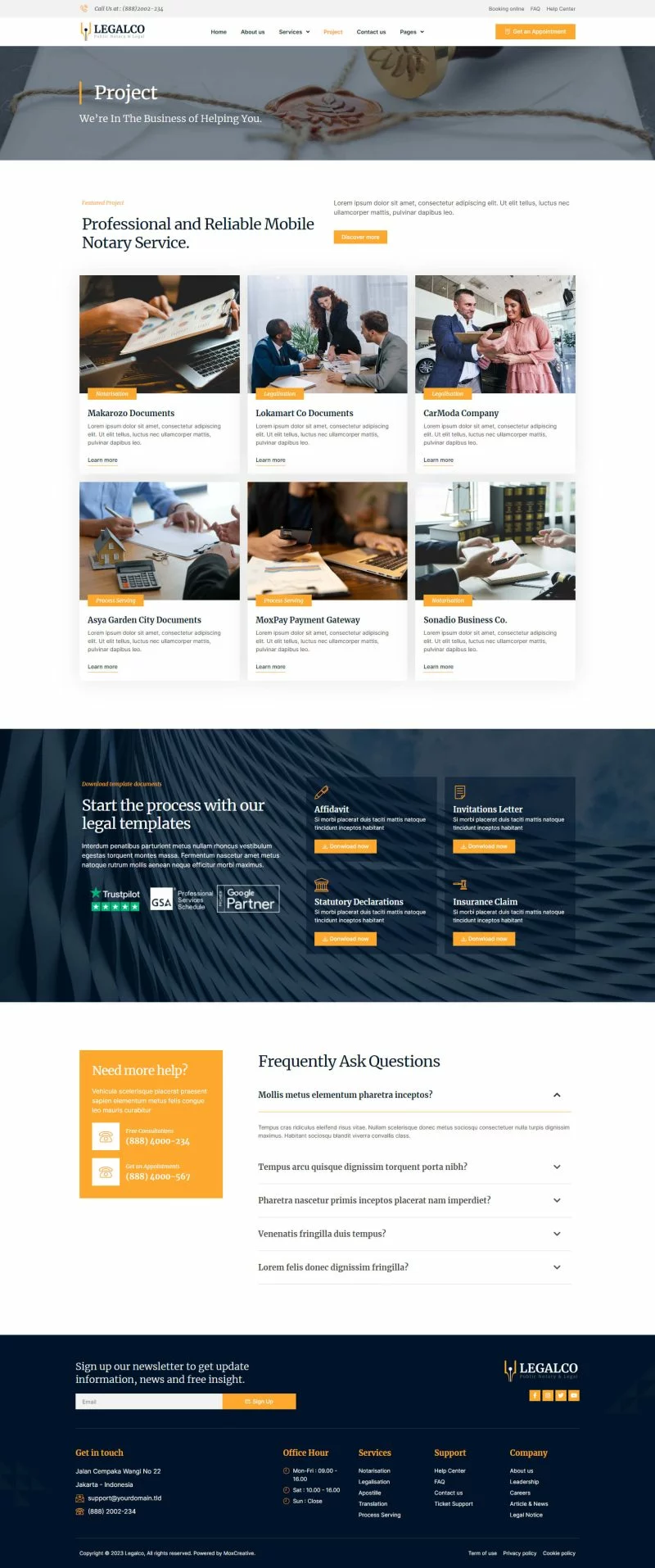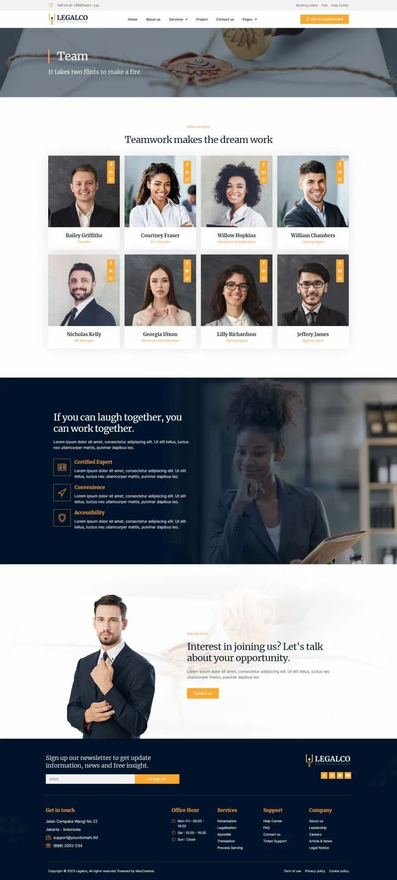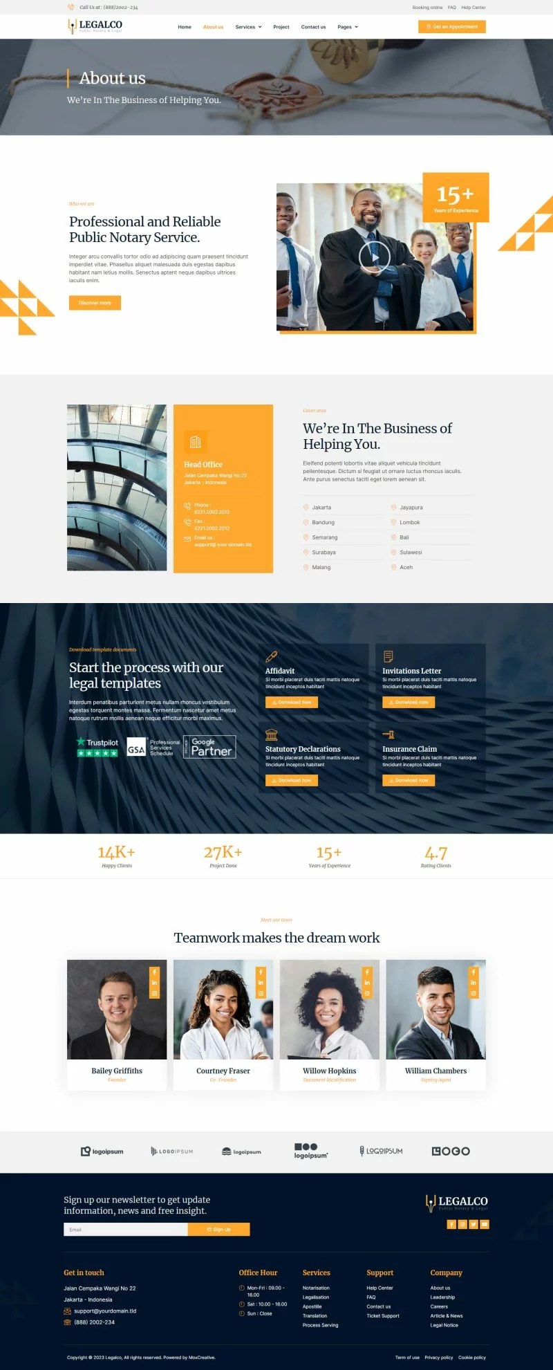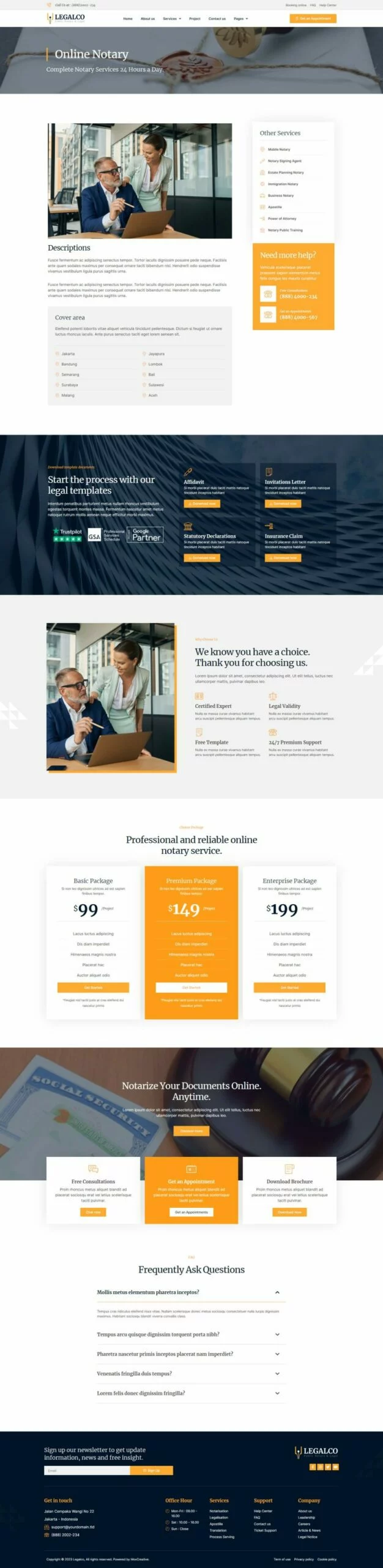 کیت قالب المنتور خدمات حقوقی و دفتر اسناد رسمی Legalco دارای چیدمان مدرن و تمیز با سبک طراحی منحصر به فرد است و برای هر کسب و کار یا خدمات مرتبط با دفتر اسناد رسمی و خدمات حقوقی مناسب است. با استفاده از این کیت میتوانید به راحتی یک وبسایت دفتر اسناد رسمی ایجاد کنید که خدماتی مانند خدمات دفتر اسناد عمومی، خدمات دفتر اسناد تجاری و خدمات دفتر اسناد آنلاین ارائه میدهد.
