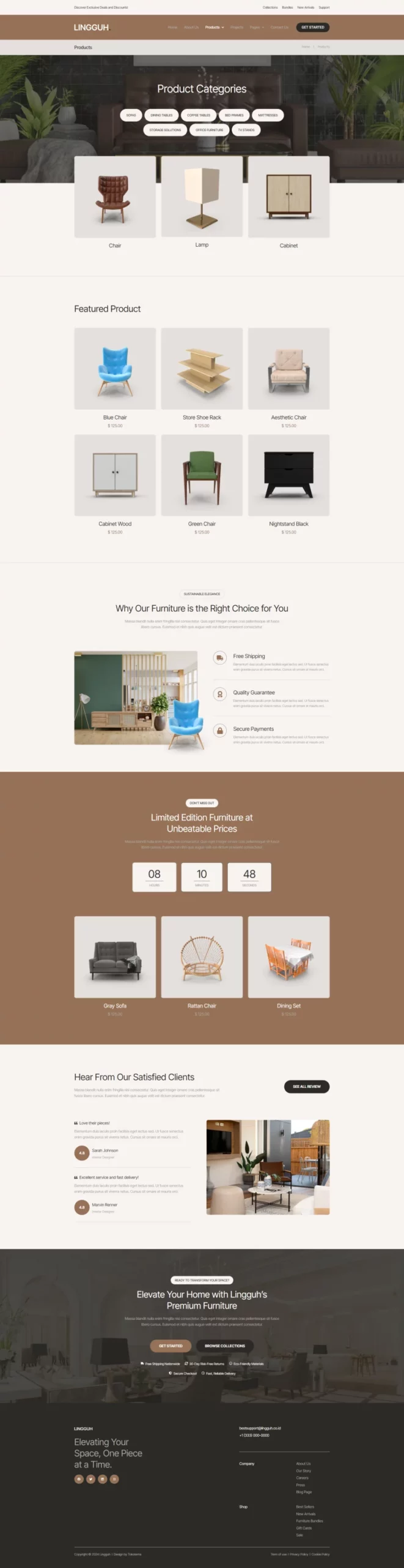 کیت قالب المنتور فروشگاه مبلمان Lingguh با طراحی مدرن و حرفهای خود، امکانات متعددی را در اختیار شما قرار میدهد: