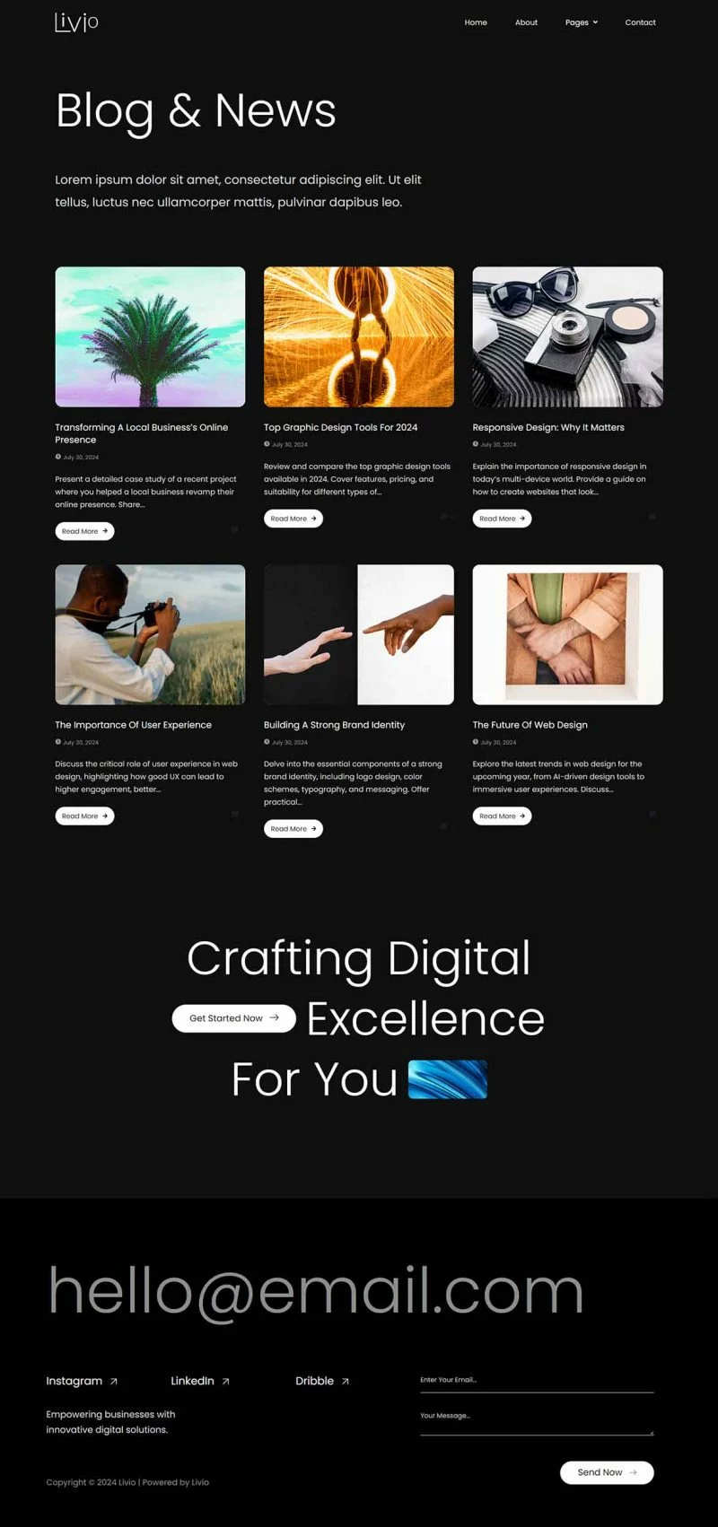 Livio یک کیت قالب المنتور است که برای طراحی سایتهای حرفهای برای آژانسهای SaaS و مجازی طراحی شده است. این قالب با نسخه رایگان المنتور کاملاً سازگار است و به شما امکان میدهد بدون هزینه اضافی وبسایتهای زیبا و کاربردی ایجاد کنید.