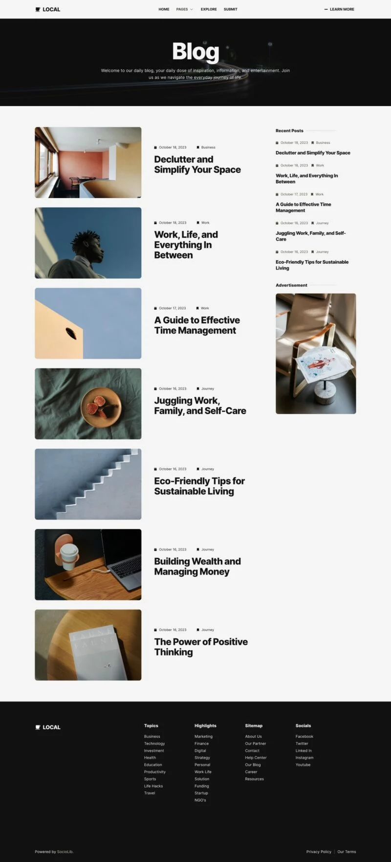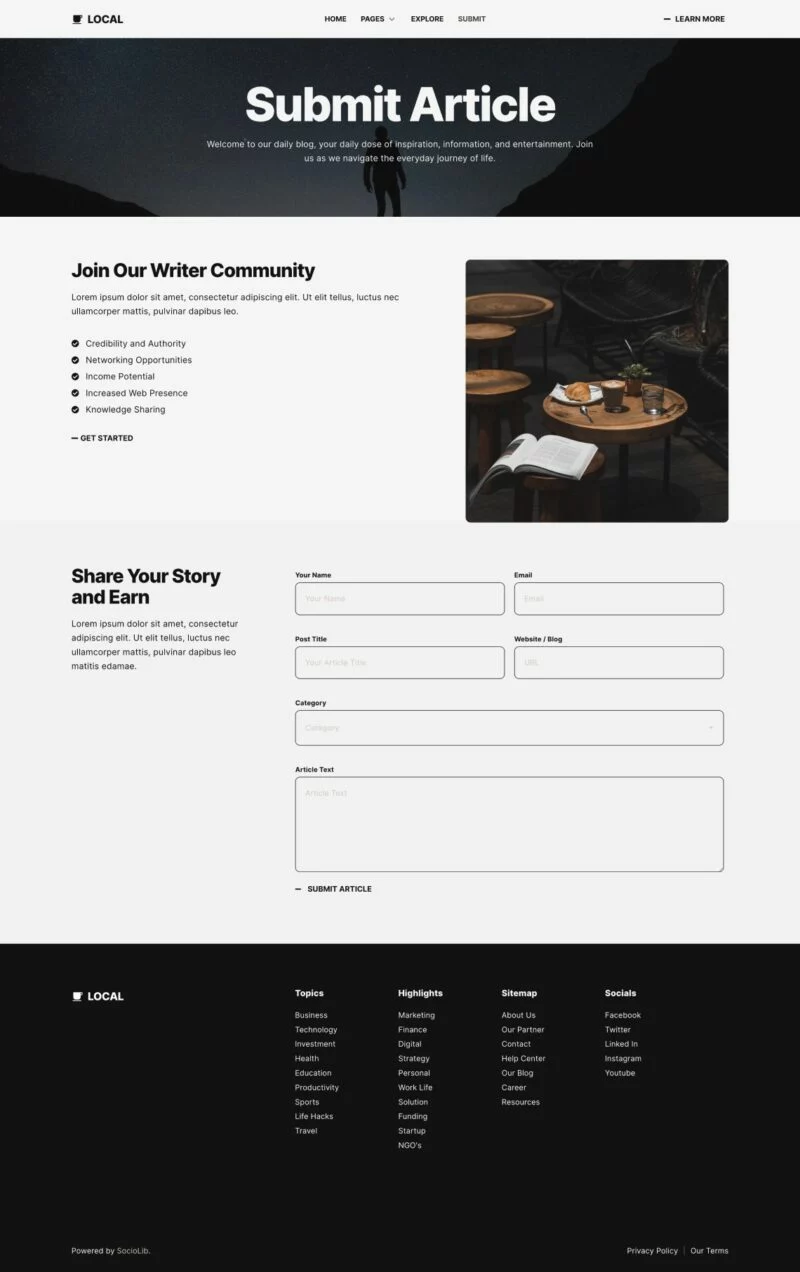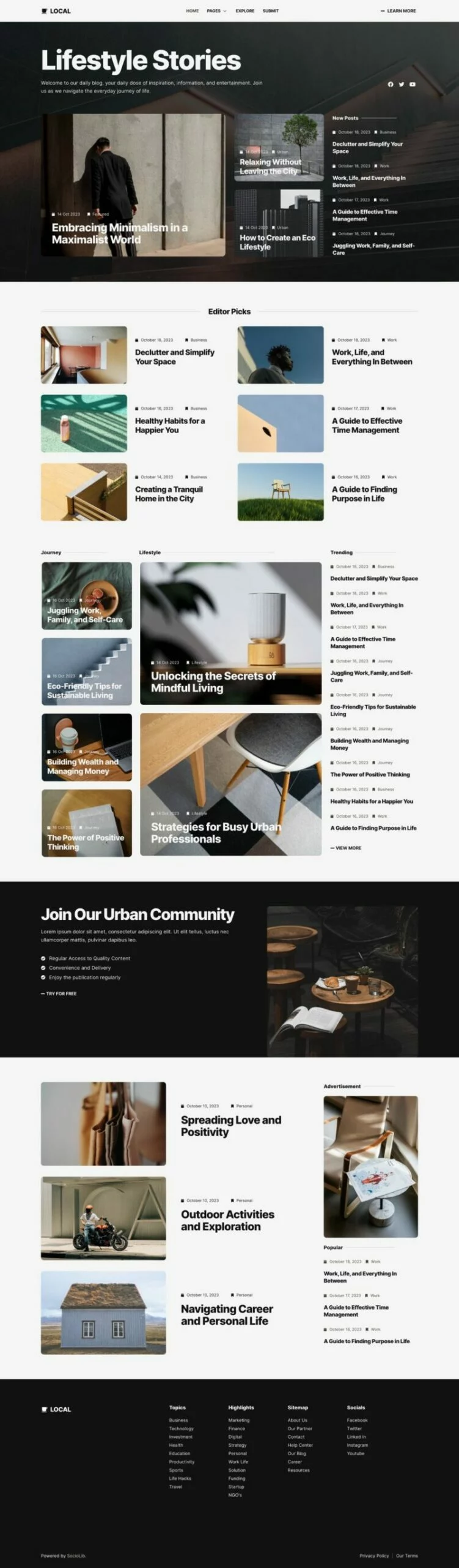 کیت قالب المنتور وبلاگ و مجله مدرن Local برای ایجاد سریع و آسان وبلاگ مدرن با استفاده از افزونه Elementor Page Builder برای وردپرس طراحی شده است. مناسب برای بلاگرها، ژورنالها، اخبار، پورتالها، داستانها، مجلات و غیره. با استفاده از این کیت قالب وبسایت خود را با سبک طراحی خلاقانه و مدرن به روز کنید تا احساس مدرنیته به وبلاگ شما بیافزاید.