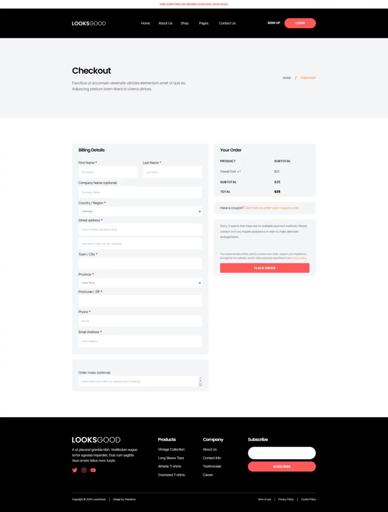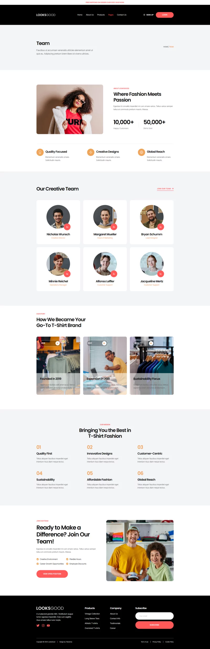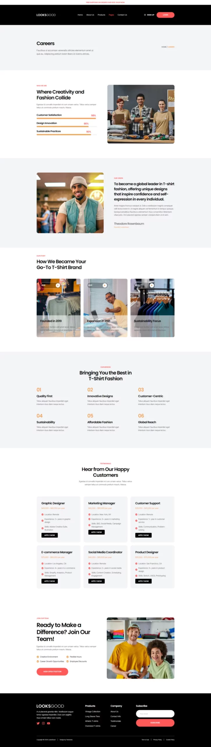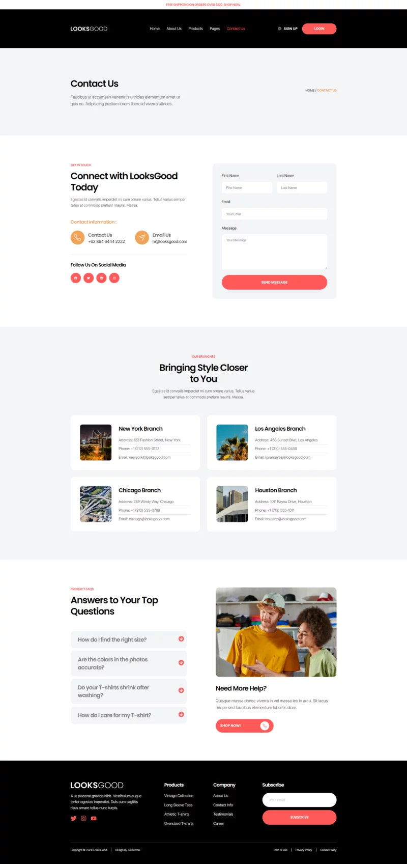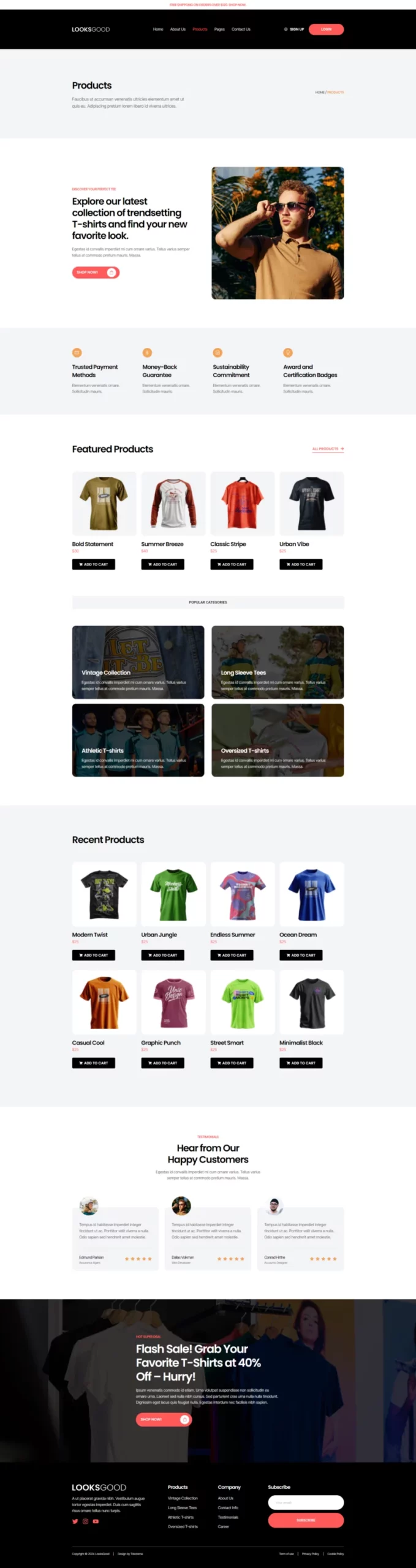 با ظاهری ساده، شیک و حرفهای، LooksGood به شما امکان میدهد تا با استفاده از عناصر طراحی مدرن، کسبوکار تیشرت خود را به شکل چشمگیری به نمایش بگذارید. این طراحی نه تنها جذاب است، بلکه به خوبی با نیازهای یک فروشگاه مد و پوشاک همخوانی دارد.