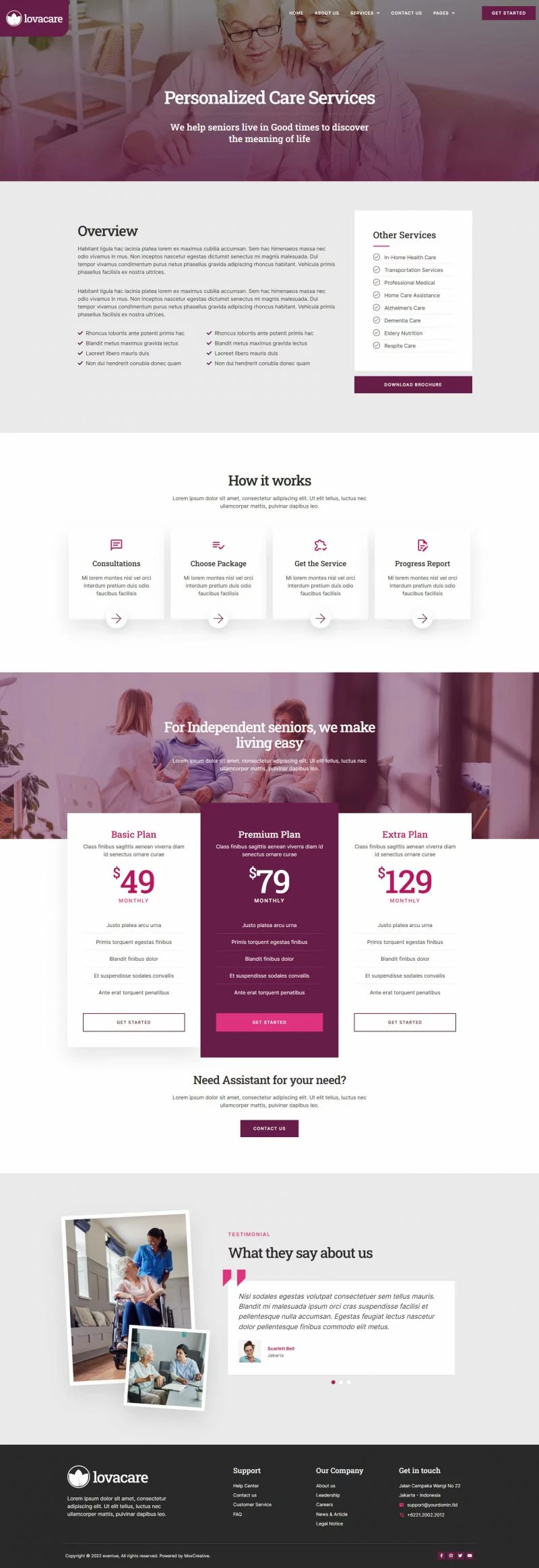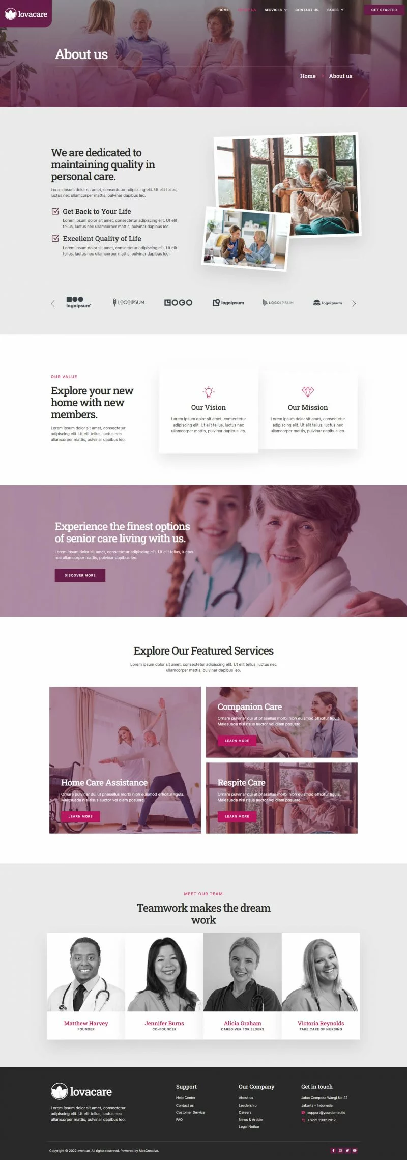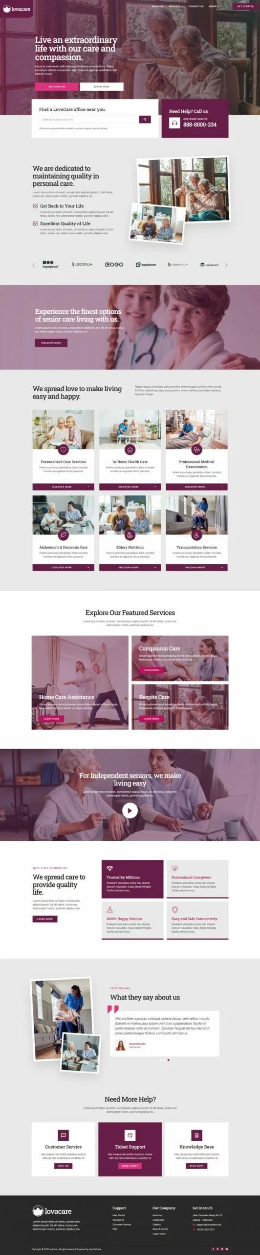 کیت قالب المنتور خدمات مراقبت از سالمندان LovaCare برای ایجاد هر نوع وبسایتی مانند مراقبت از سالمندان، پرستاری، خانههای سالمندان، پزشکی، خانههای بازنشستگی و غیره مناسب است. دارای بیش از 12 قالب از پیش ساخته شده با طراحی تمیز و سبک مدرن است.
