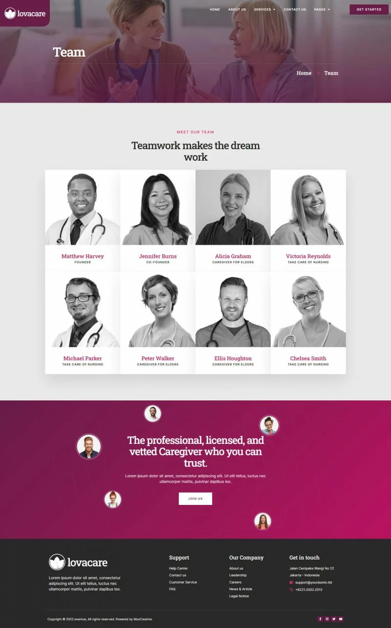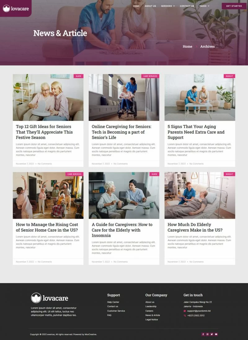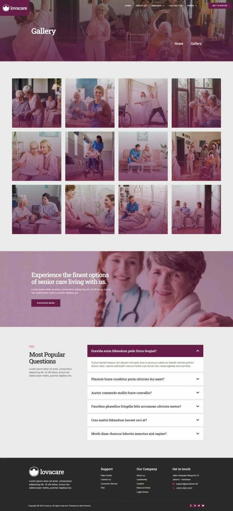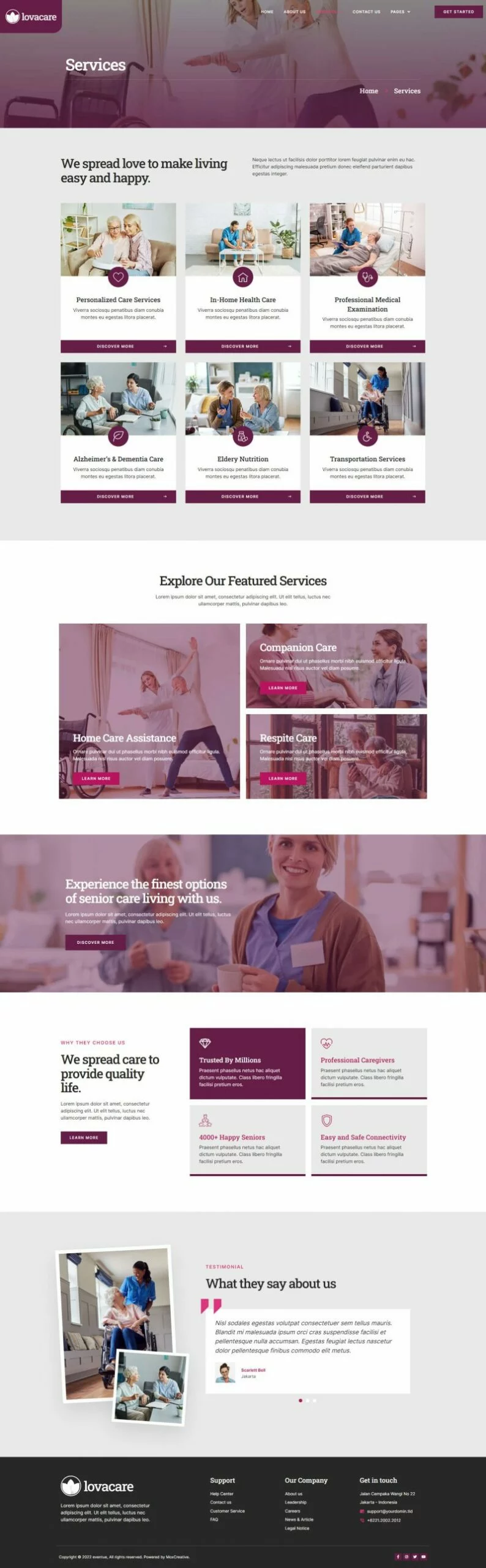 کیت قالب المنتور خدمات مراقبت از سالمندان LovaCare برای ایجاد هر نوع وبسایتی مانند مراقبت از سالمندان، پرستاری، خانههای سالمندان، پزشکی، خانههای بازنشستگی و غیره مناسب است. دارای بیش از 12 قالب از پیش ساخته شده با طراحی تمیز و سبک مدرن است.