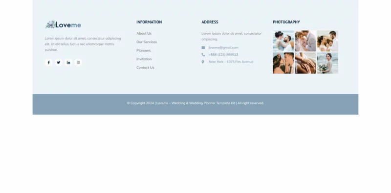 کیت قالب المنتور عروسی و برنامه ریزی عروسی Loveme با استفاده از افزونه Elementor Page Builder ساخته شده و به شما امکان میدهد بهراحتی آن را ویرایش یا سفارشی کنید. بدون نیاز به کدنویسی، تنها با کشیدن و رها کردن المانها، میتوانید وبسایتی زیبا و حرفهای بسازید.