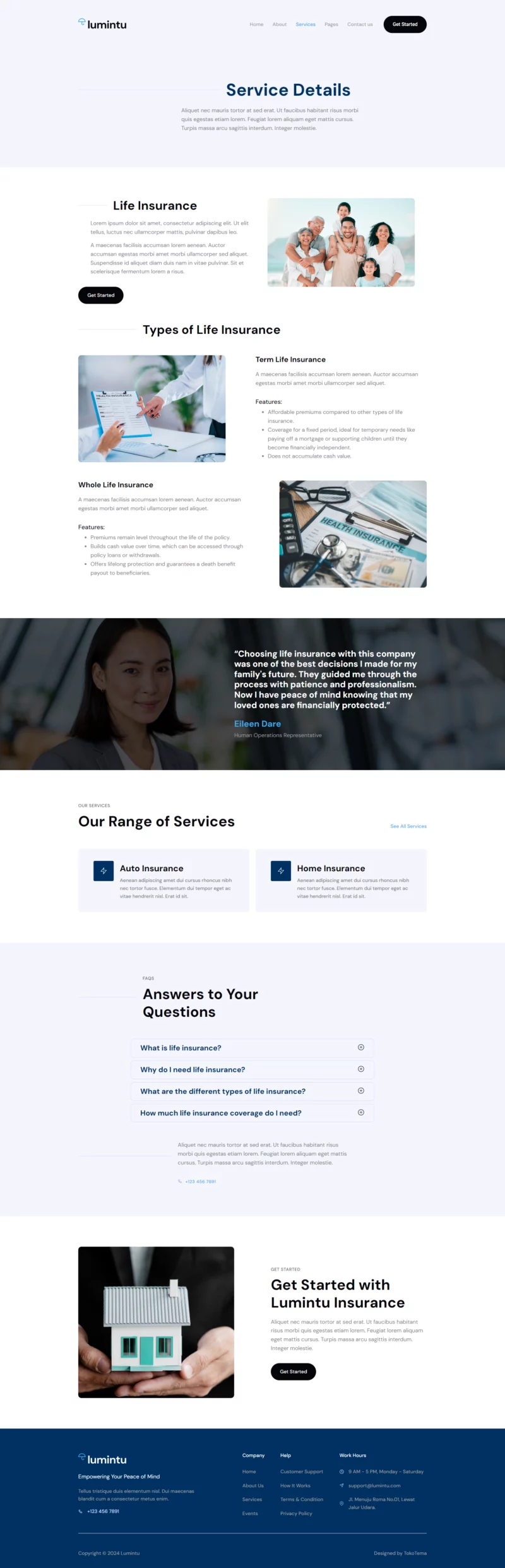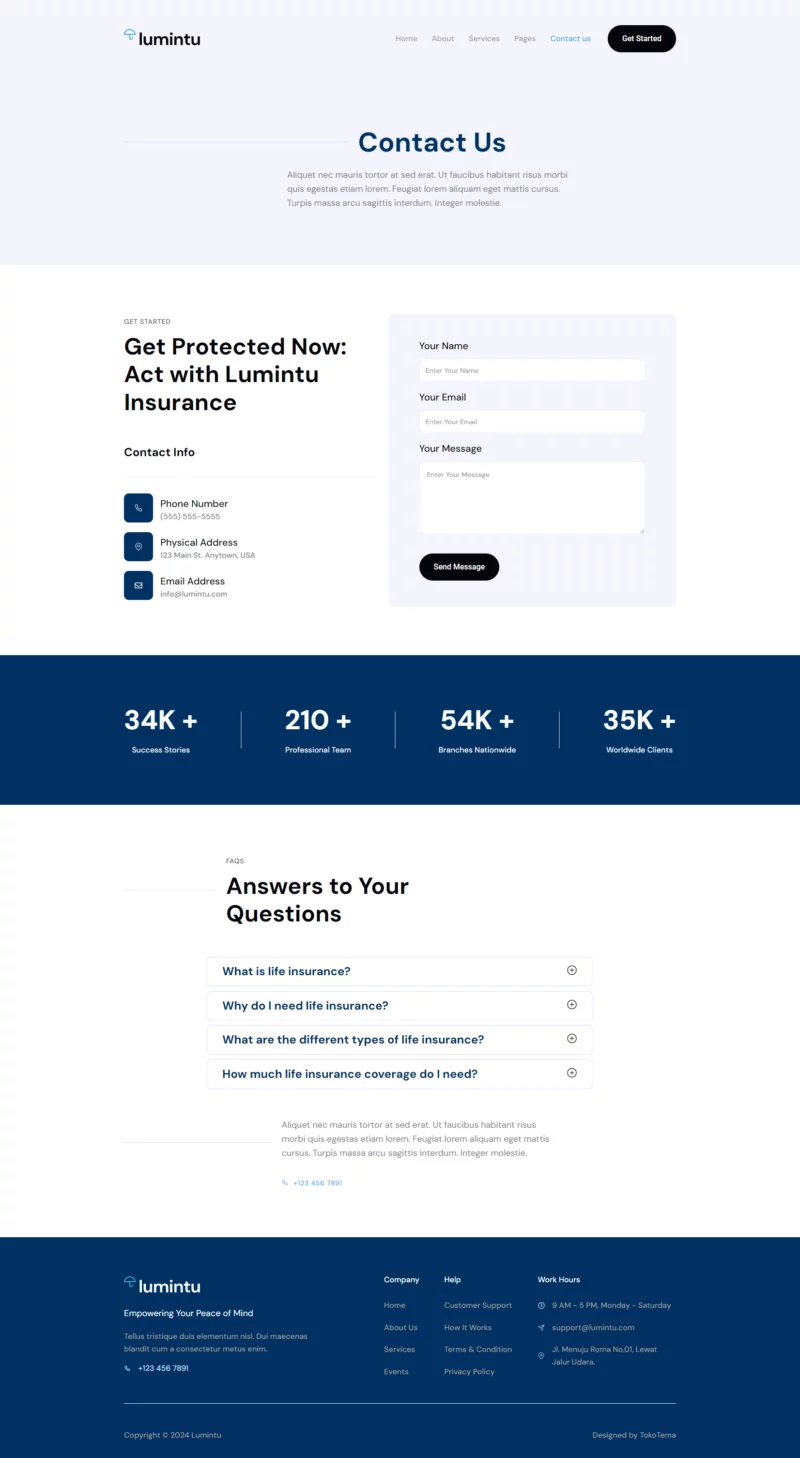 کیت قالب المنتور شرکت بیمه Lumintu بهطور خاص برای بهبود حضور آنلاین آژانسهای بیمه طراحی شده است. با استفاده از المنتور، این قالب یک پلتفرم پیشرفته و قابل تنظیم ارائه میدهد تا خدمات بیمهای شما را به شکلی مؤثر به نمایش بگذارد. صفحه اصلی با طراحی حرفهای و جذاب، از همان ابتدا تجربهای کاربرپسند را برای بازدیدکنندگان فراهم میکند.