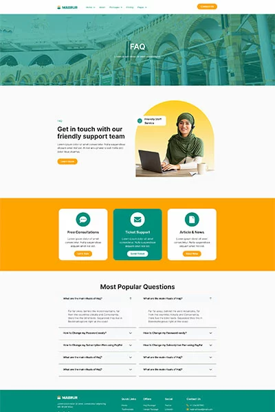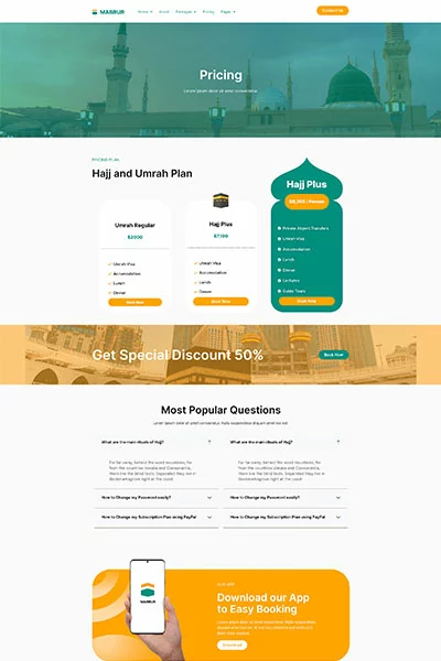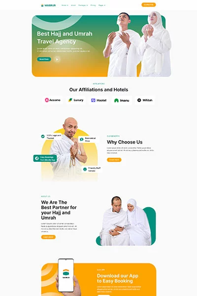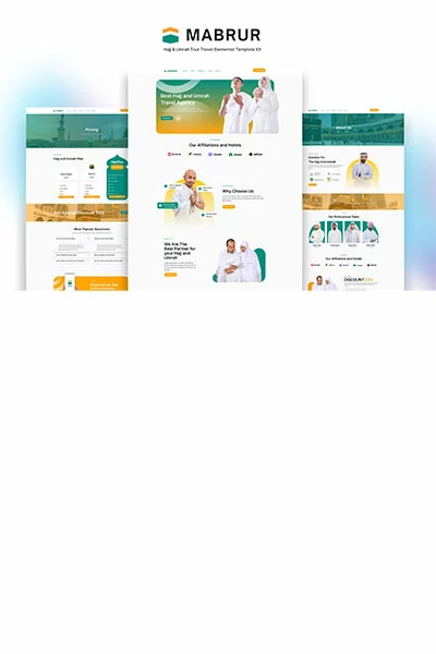 کیت قالب المنتور تور حج و عمره Mabrur مجموعهای از طرحبندیها برای افزونه صفحهساز المنتور وردپرس است که برای استفاده با نسخه رایگان المنتور و طراحی تمیز طراحی شده است. این کیت با اکثر تمها کار میکند و برای استفاده با تم رایگان Hello Elementor بهینه شده است.