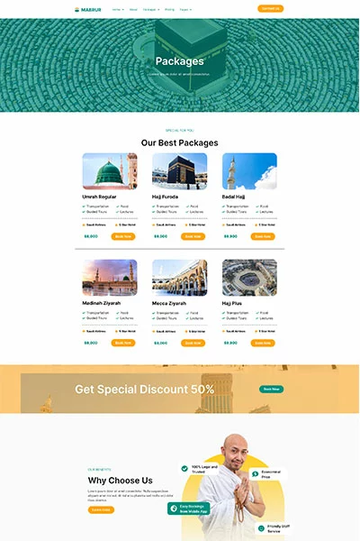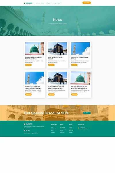 کیت قالب المنتور تور حج و عمره Mabrur برای تورهای حج و عمره طراحی شده است تا به شما کمک کند وبسایتی حرفهای و جذاب برای خدمات تور خود ایجاد کنید. این کیت با طراحی تمیز و مدرن خود، شامل قالبهای متنوعی است که به شما امکان میدهد بدون نیاز به دانش کدنویسی، صفحات مورد نیاز خود را بسازید و ویرایش کنید. با استفاده از افزونههای رایگان و سازگاری با تم Hello Elementor، این کیت یک انتخاب عالی برای ایجاد یک حضور آنلاین قوی و کارآمد برای کسبوکارهای مرتبط با حج و عمره است.