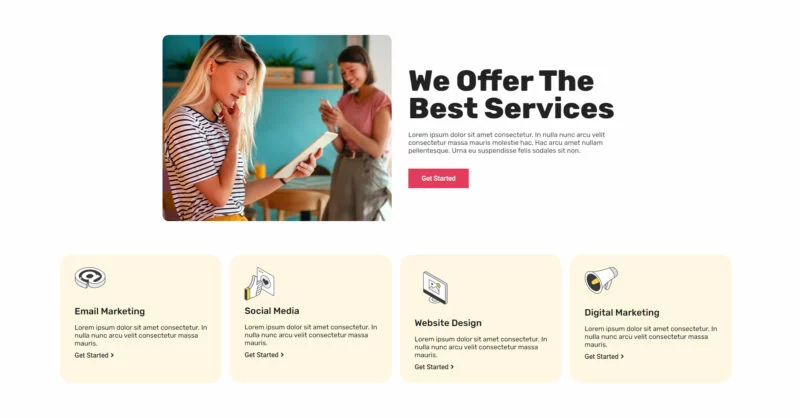 از جمله ویژگیهای برجسته کیت قالب المنتور خدمات بازاریابی دیجیتال Marketiverse، قابلیت سفارشیسازی آسان و سازگاری با بیشتر تمهای المنتور است. با استفاده از این کیت، میتوانید وبسایتی با طراحی حرفهای و ریسپانسیو برای کسبوکار بازاریابی دیجیتال خود ایجاد کنید.