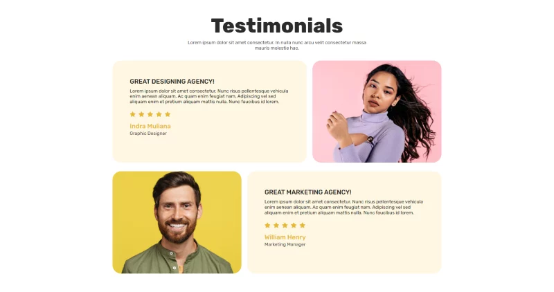 بخش قهرمان، بخش ویژگیها، بخش مشتریان، بخش نمونه کارها، بخش فراخوان برای اقدام، بخش خدمات، بخش درباره ما، بخش قیمتگذاری، بخش پروژهها، بخش تیم، بخش نظرات، بخش سوالات متداول، بخش تماس، بخش خبرنامه