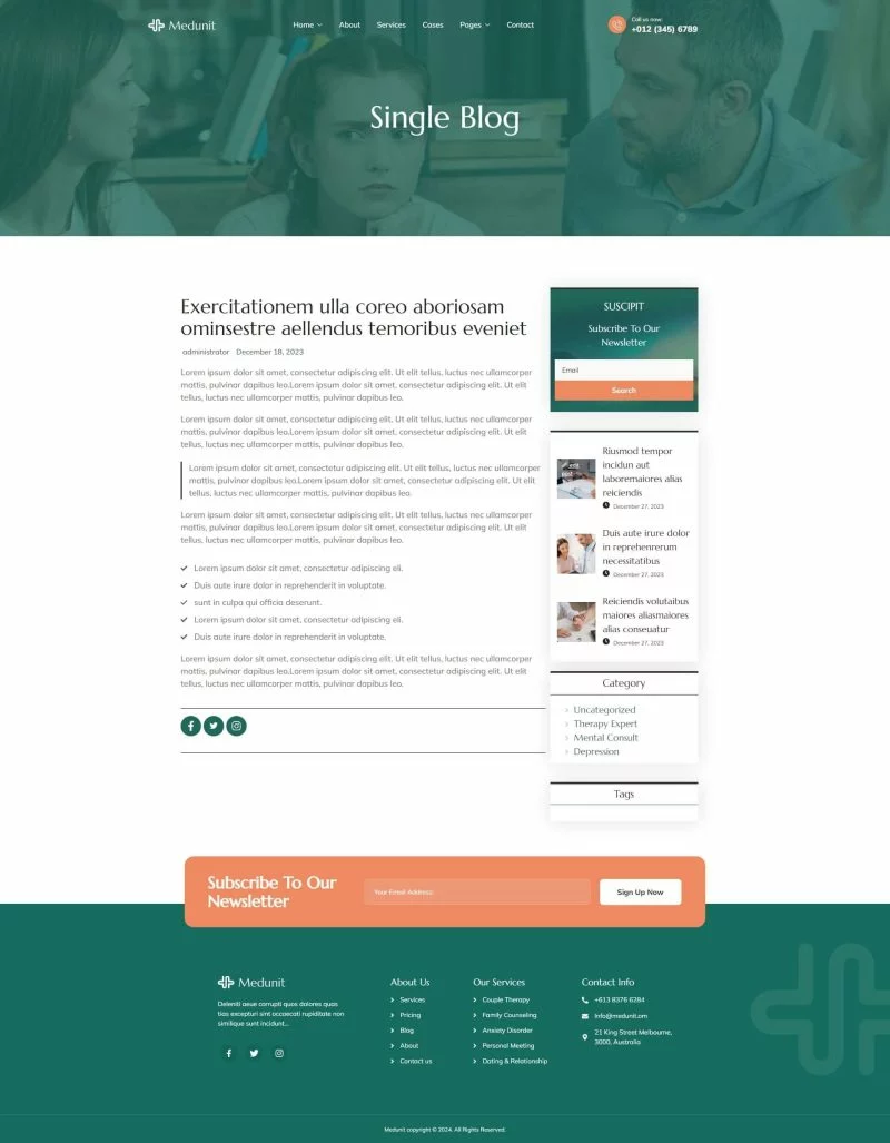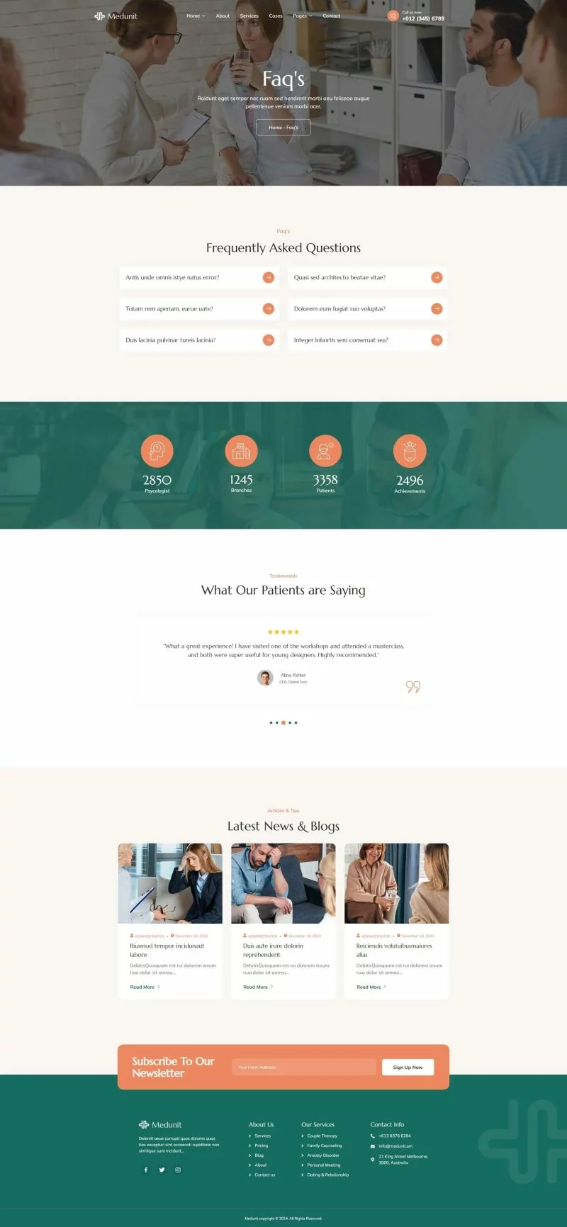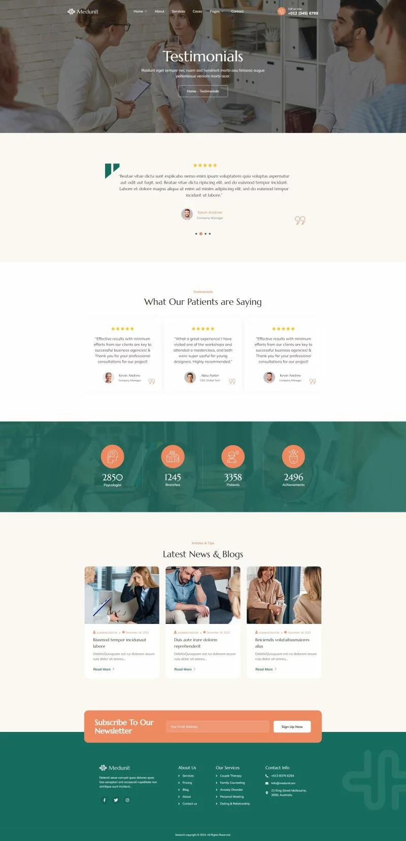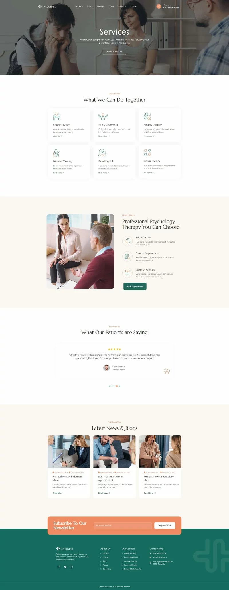 کیت قالب المنتور روانشناسی Medunit با دقت برای متخصصان روانشناسی و بهداشت و درمان طراحی شده است تا حضور آنلاین خود را ارتقاء دهند. با طراحی معاصر، ویژگیهای قدرتمند و رابط کاربری شهودی، این کیت قالب پایه محکمی برای ساخت یک وبسایت حرفهای و جذاب ایجاد میکند.