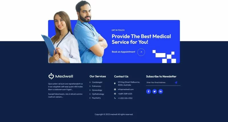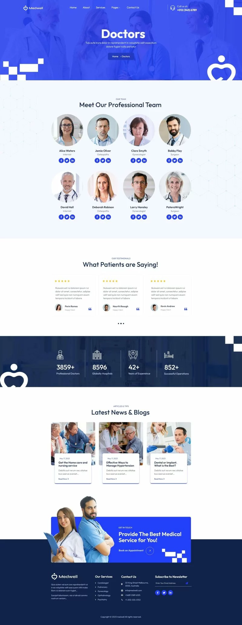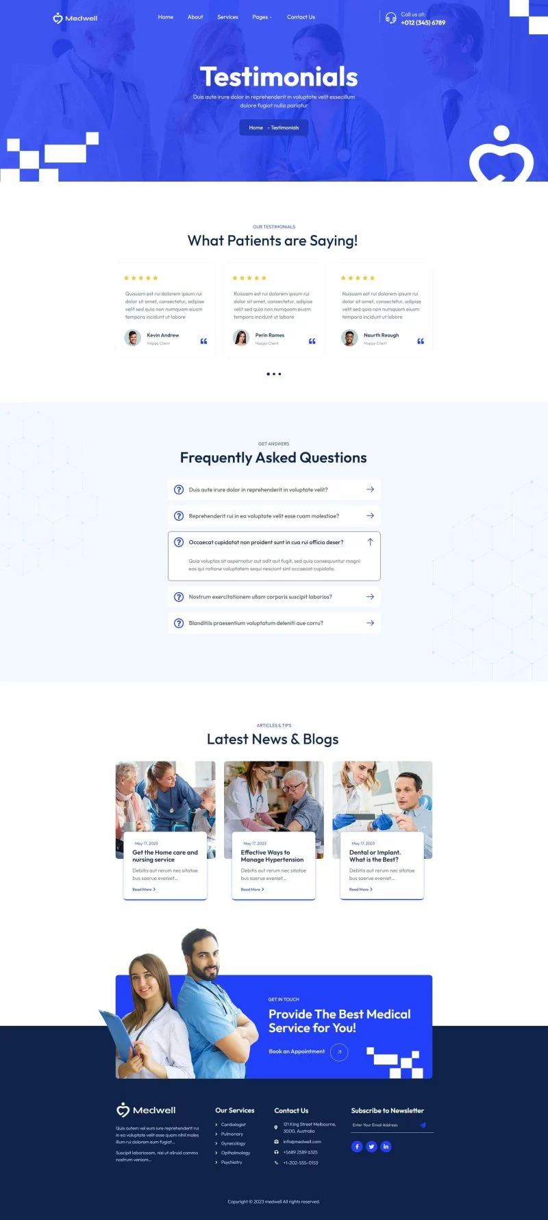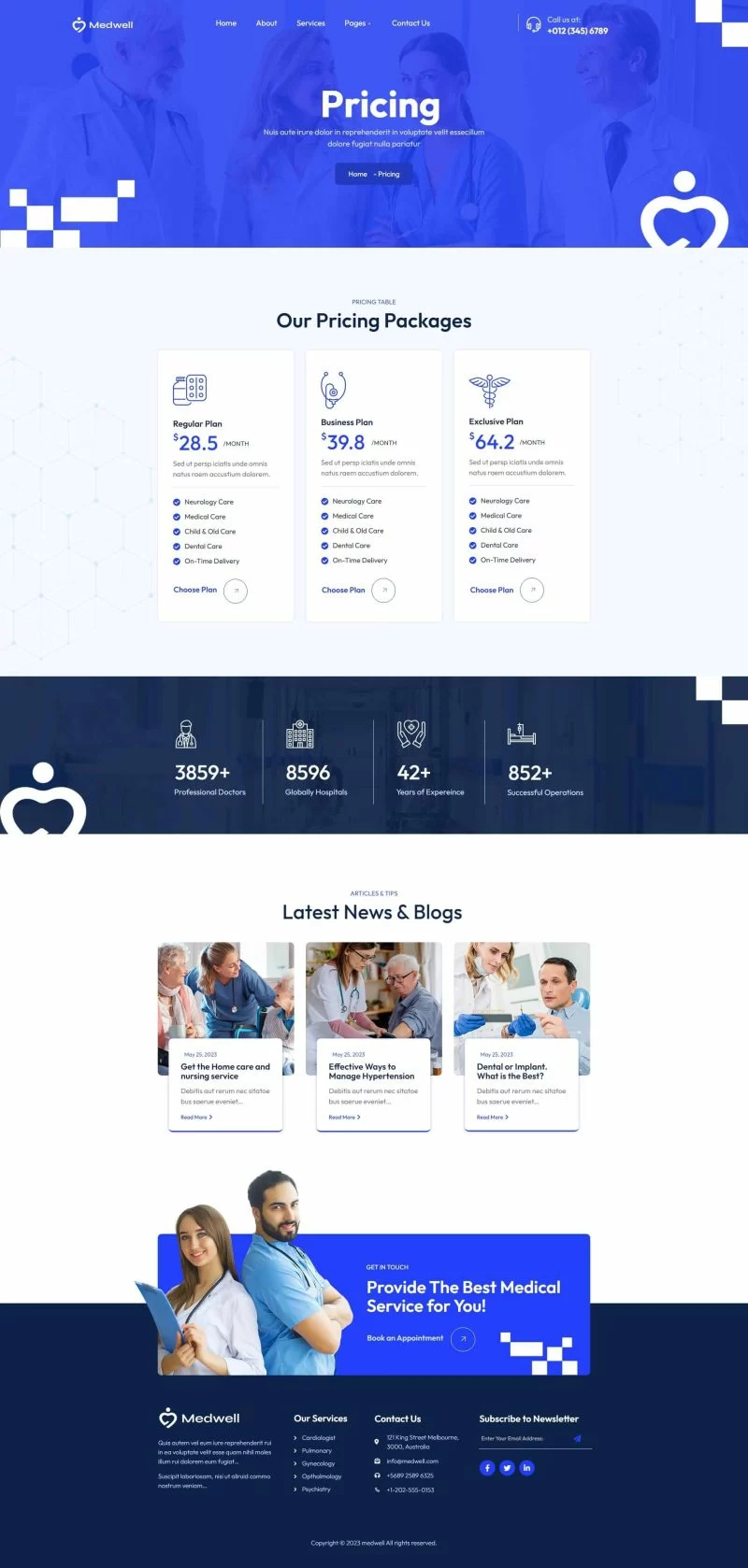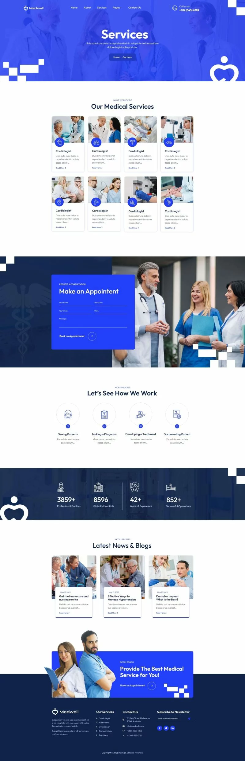 کیت قالب المنتور پزشکی و بهداشت Medwell به طور ویژه برای مراقبتهای پزشکی و راهحلهای بهداشتی طراحی شده است. با طراحی شیک و حرفهای، این کیت یک پلتفرم ایدهآل برای نمایش فعالیتهای پزشکی، مراکز بهداشتی یا مراکز سلامتی شما فراهم میکند.کیت قالب المنتور پزشکی و بهداشت Medwell تجربه کاربری بدون نقصی را هم برای بازدیدکنندگان و هم برای مدیران فراهم میکند. این قالب مجهز به مجموعهای از ویژگیهای قدرتمند و گزینههای سفارشیسازی است که به شما امکان میدهد به سادگی وبسایتی بسازید که هویت منحصربهفرد برند پزشکی شما را بازتاب دهد.