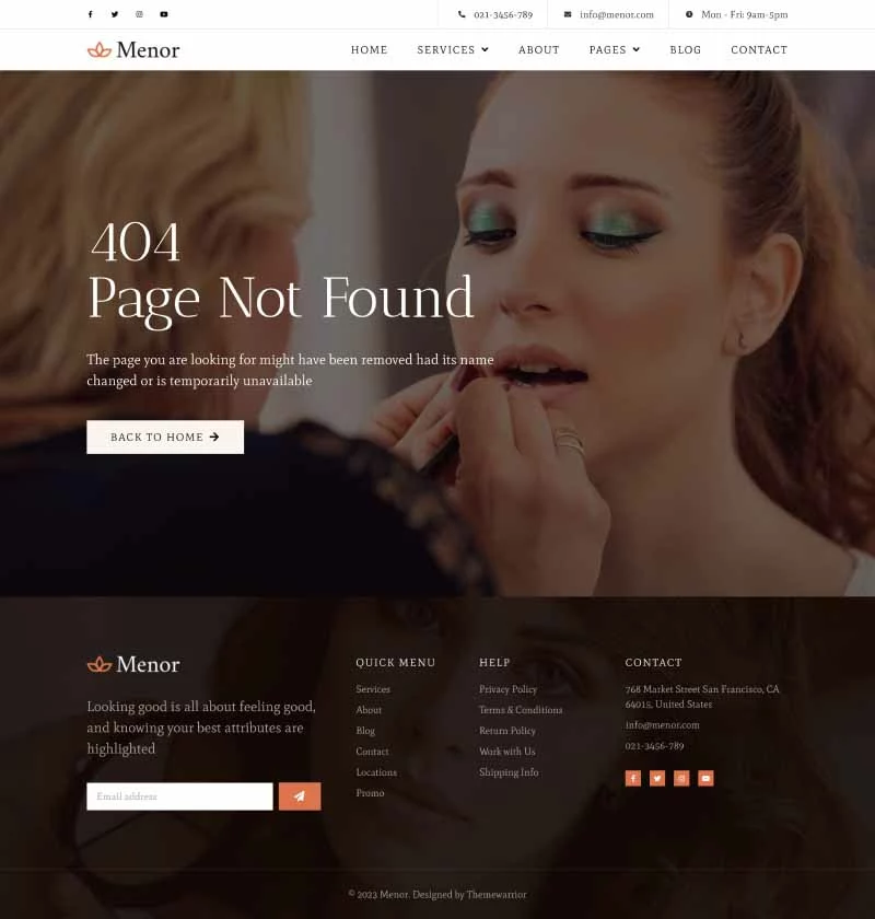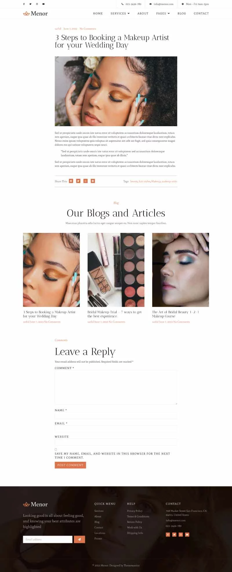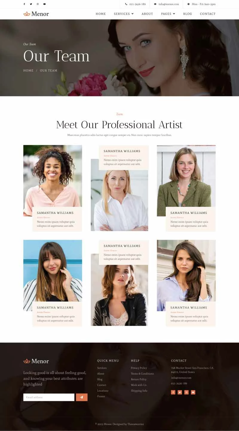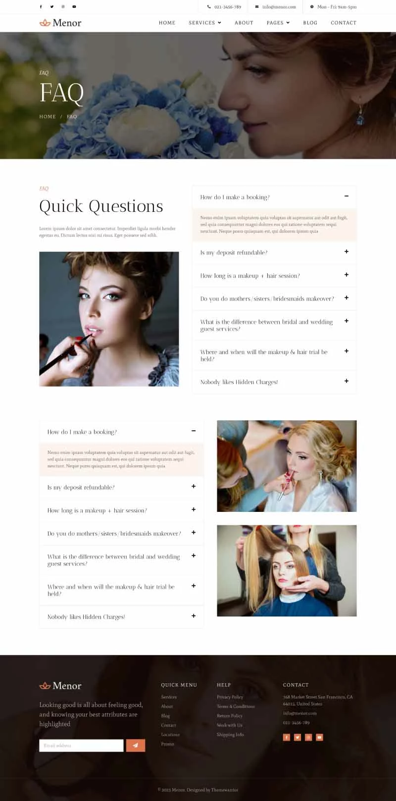 با کیت قالب المنتور آرایشگر و استایلیست مو Menor، شما به مجموعهای متنوع از 19 قالب حرفهای دسترسی پیدا میکنید که بر پایه صفحهساز قدرتمند و کاربرپسند المنتور ساخته شدهاند. وبسایت خود را به سادگی با کشیدن و رها کردن عناصر، بدون نیاز به دانش کدنویسی، شخصیسازی کنید و آن را به شکل منحصر به فرد خود درآورید.