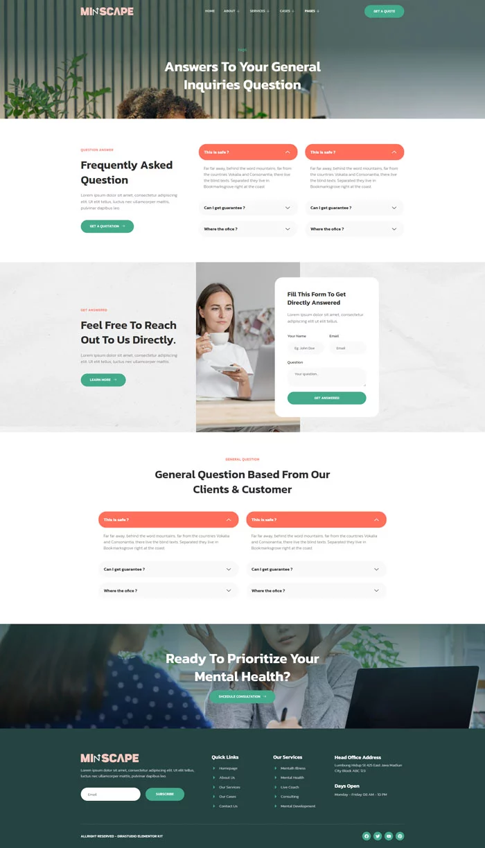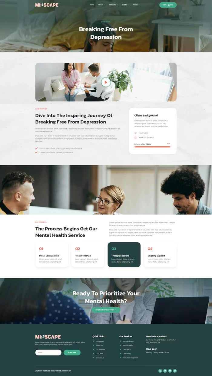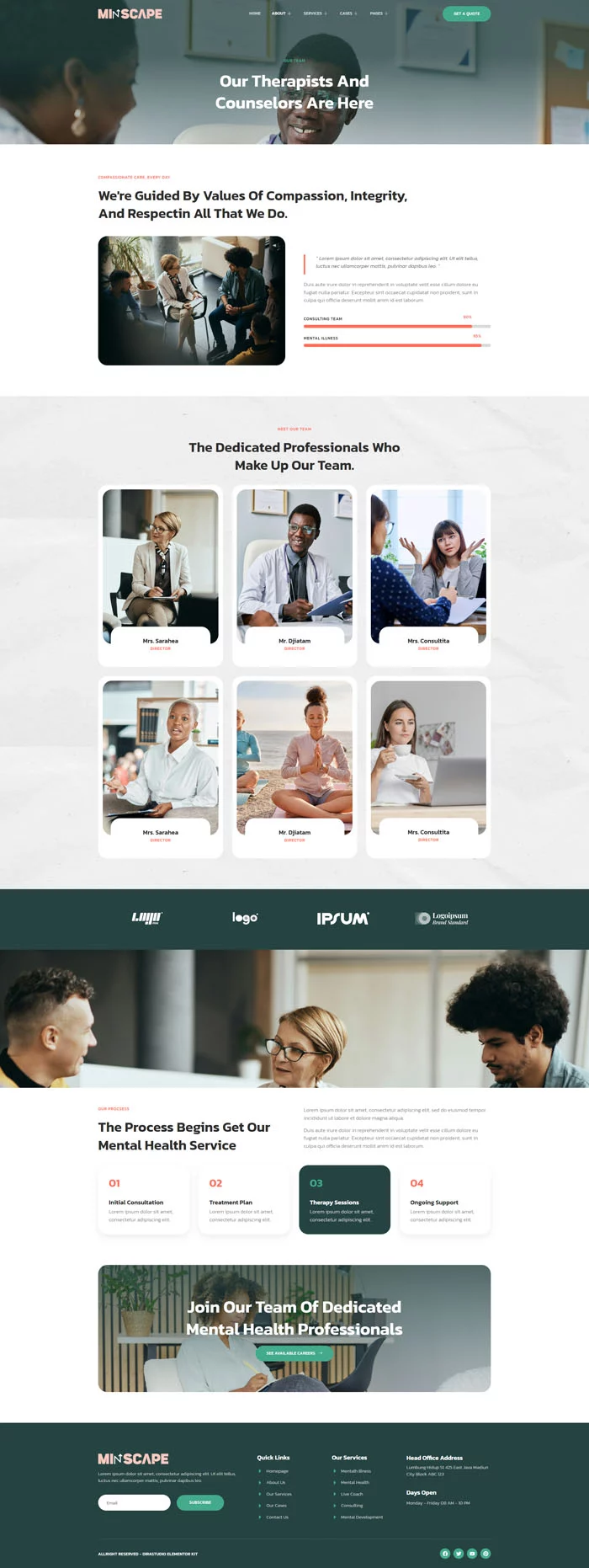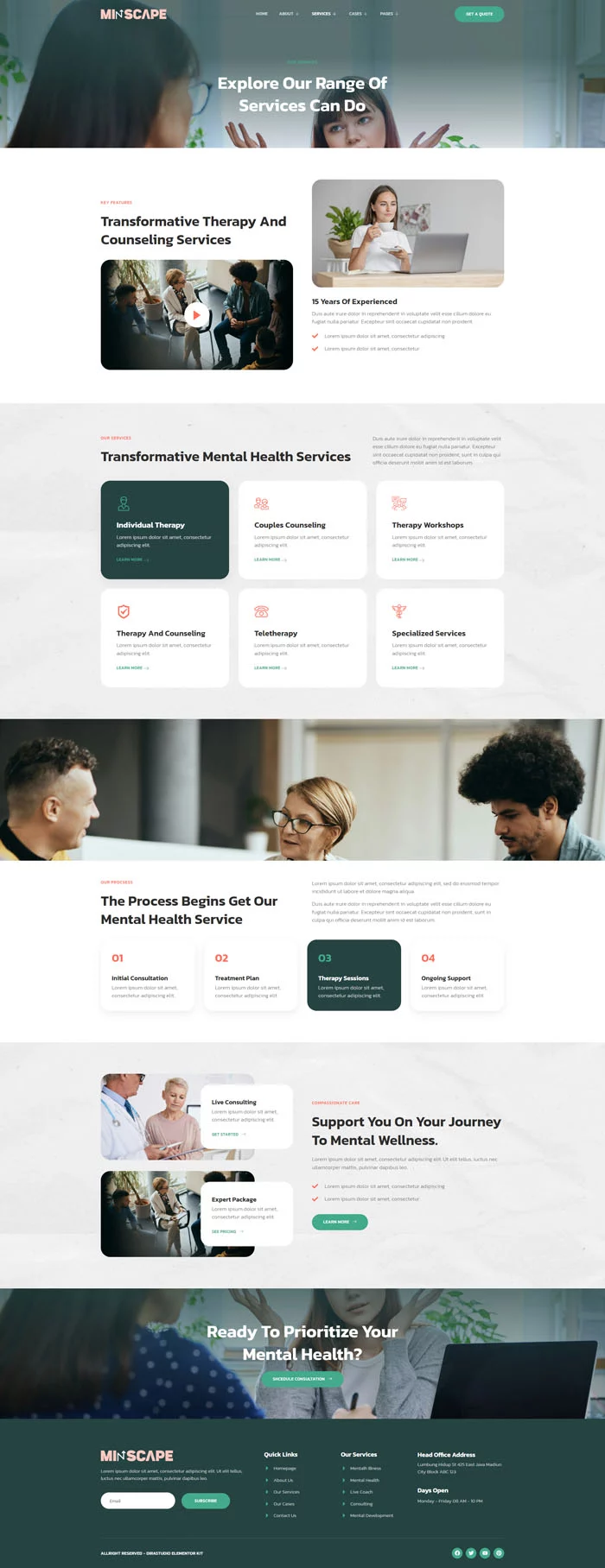 بدون نیاز به مهارتهای کدنویسی! کیت قالب المنتور مشاوره سلامت روان Mindscape با المنتور ساخته شده است که سفارشیسازی را بسیار آسان میکند. به راحتی طرح، رنگها و محتوا را برای تطابق با هویت برند خود تغییر دهید.