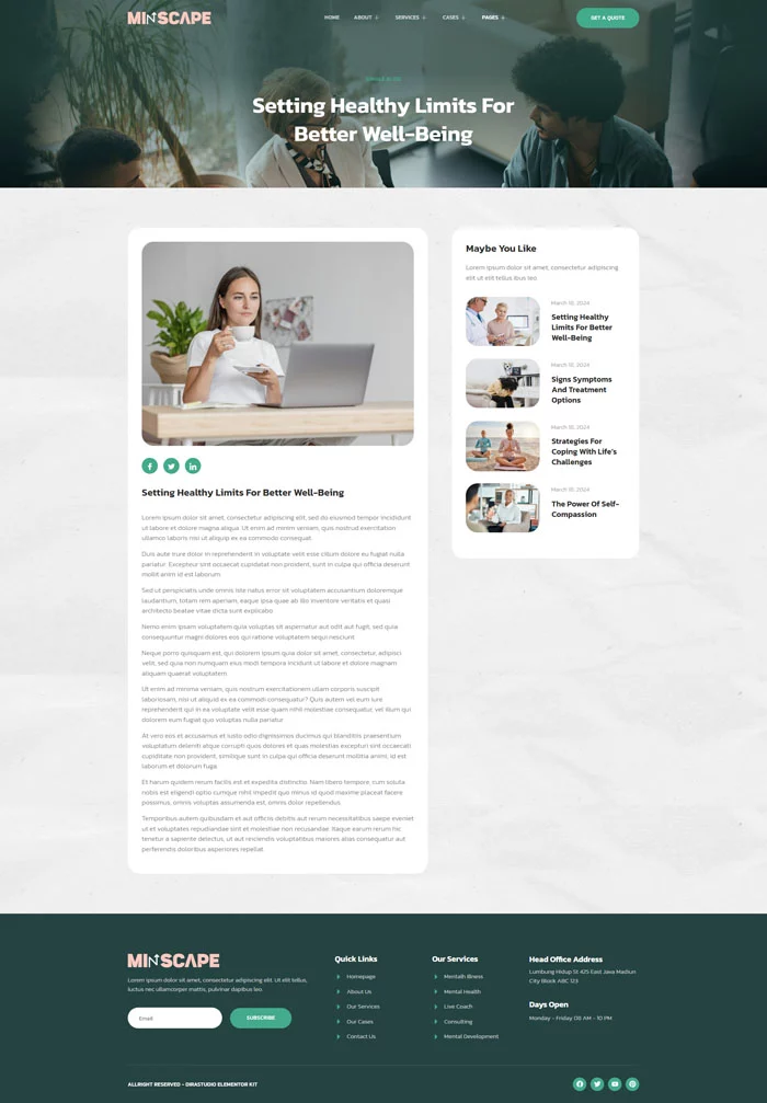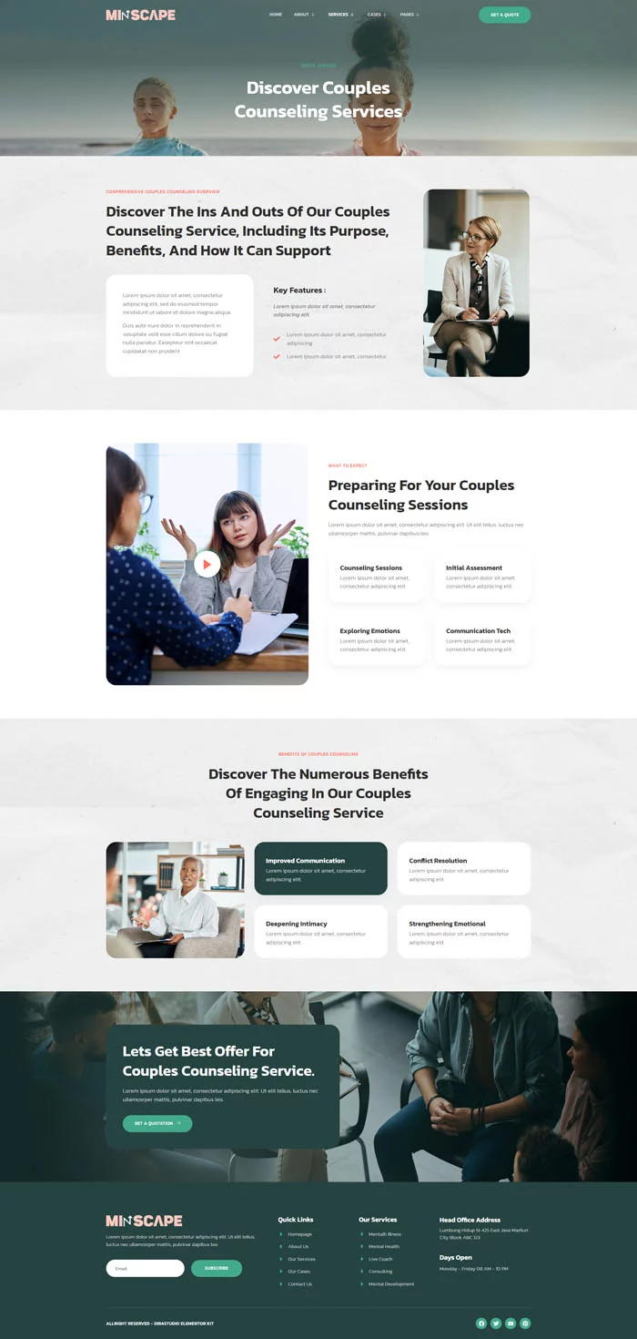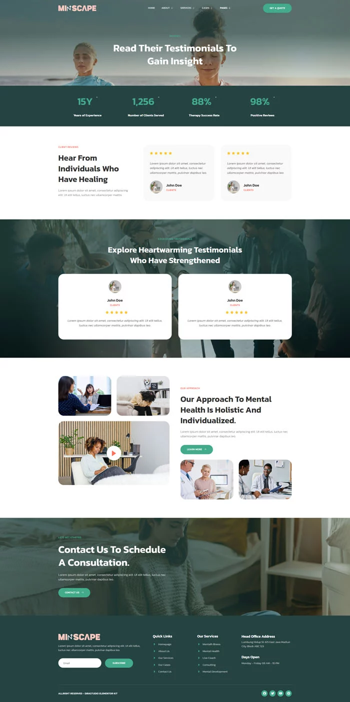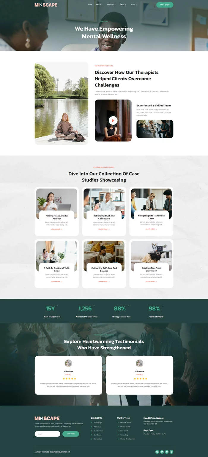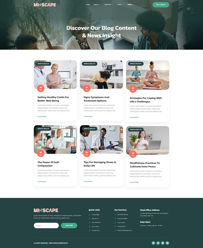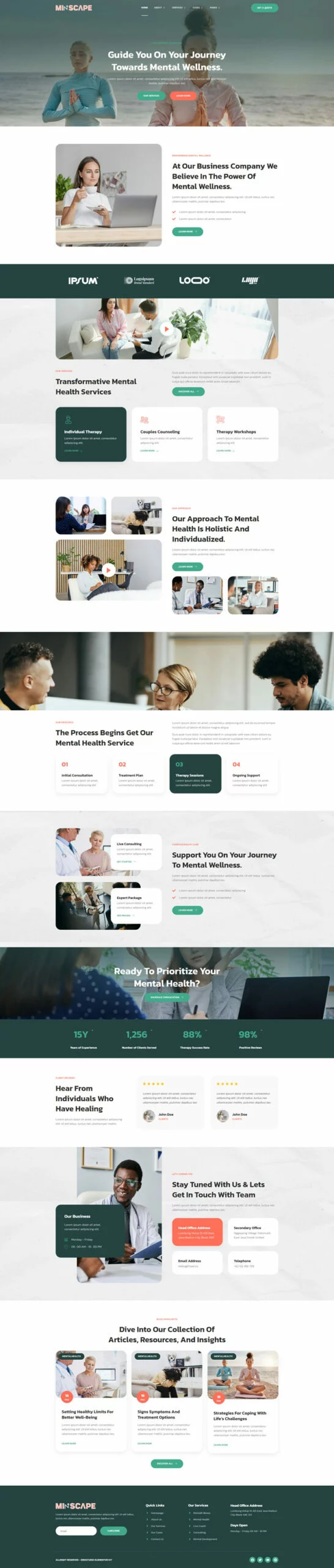 کیت قالب المنتور سلامت روان Mindscape یک مجموعه قالب برای افزونه صفحهساز المنتور در وردپرس است که با نسخه رایگان المنتور سازگار است و طراحی تمیزی را ارائه میدهد. این کیت با اکثر تمها سازگار است و برای استفاده با تم رایگان Hello Elementor بهینه شده است.
