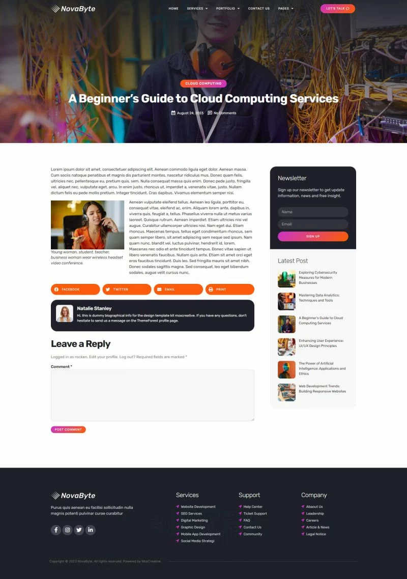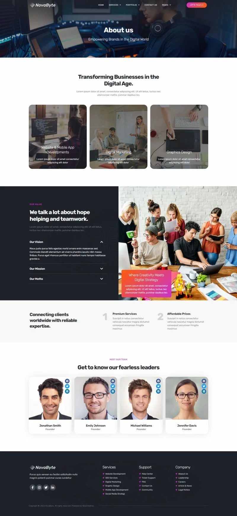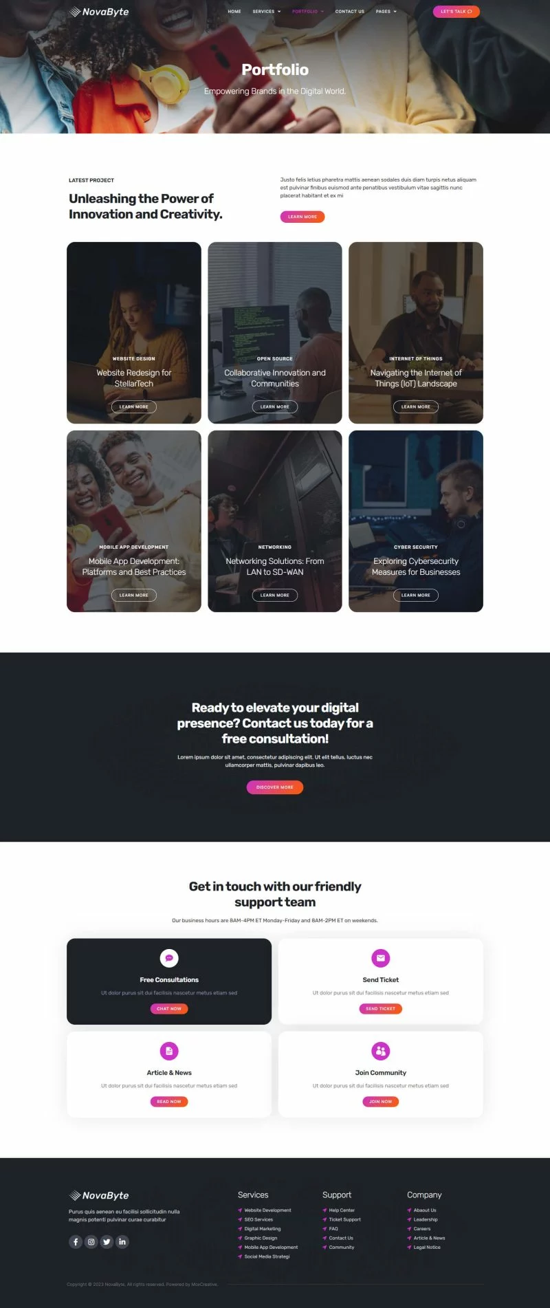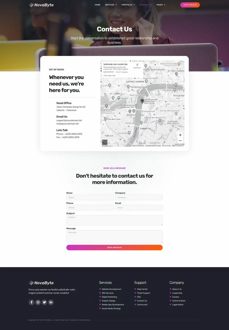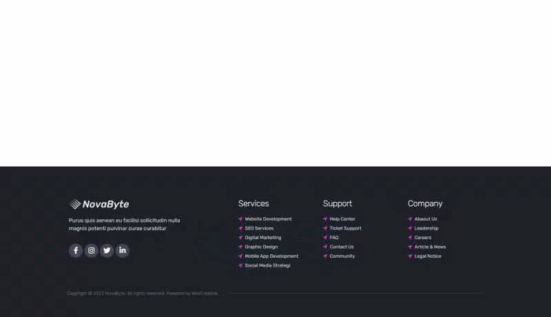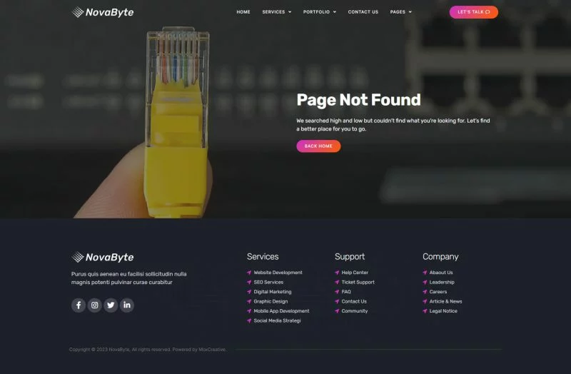 کیت قالب المنتور شرکت خدمات و راه حل های آی تی Novabyte برای ساخت وبسایتهای مدرن و تمیز وردپرس با استفاده از افزونه صفحهساز المنتور است. این کیت شامل بیش از 12 قالب از پیش ساخته شده است که برای هر کسبوکار و خدمات مرتبط با خدمات IT مانند وبسایت خدمات فناوری، نمایش برنامههای موبایل، خدمات و توسعه IT، وبسایت فناوری و وبسایت شرکت دیجیتال مناسب است.