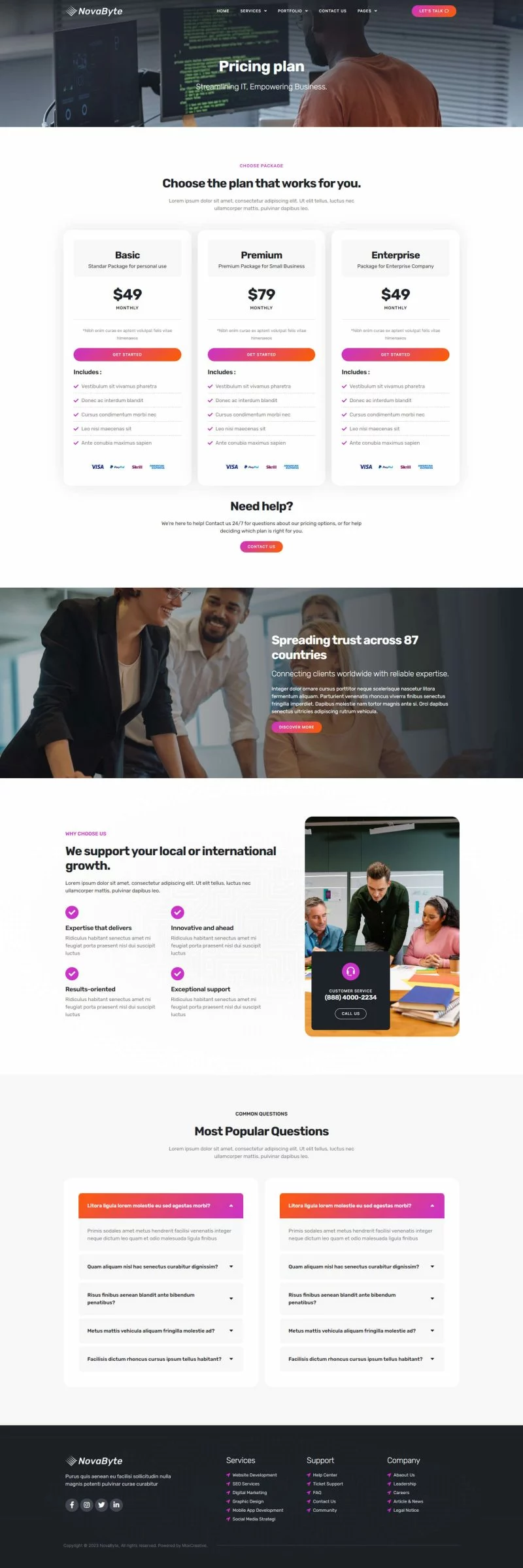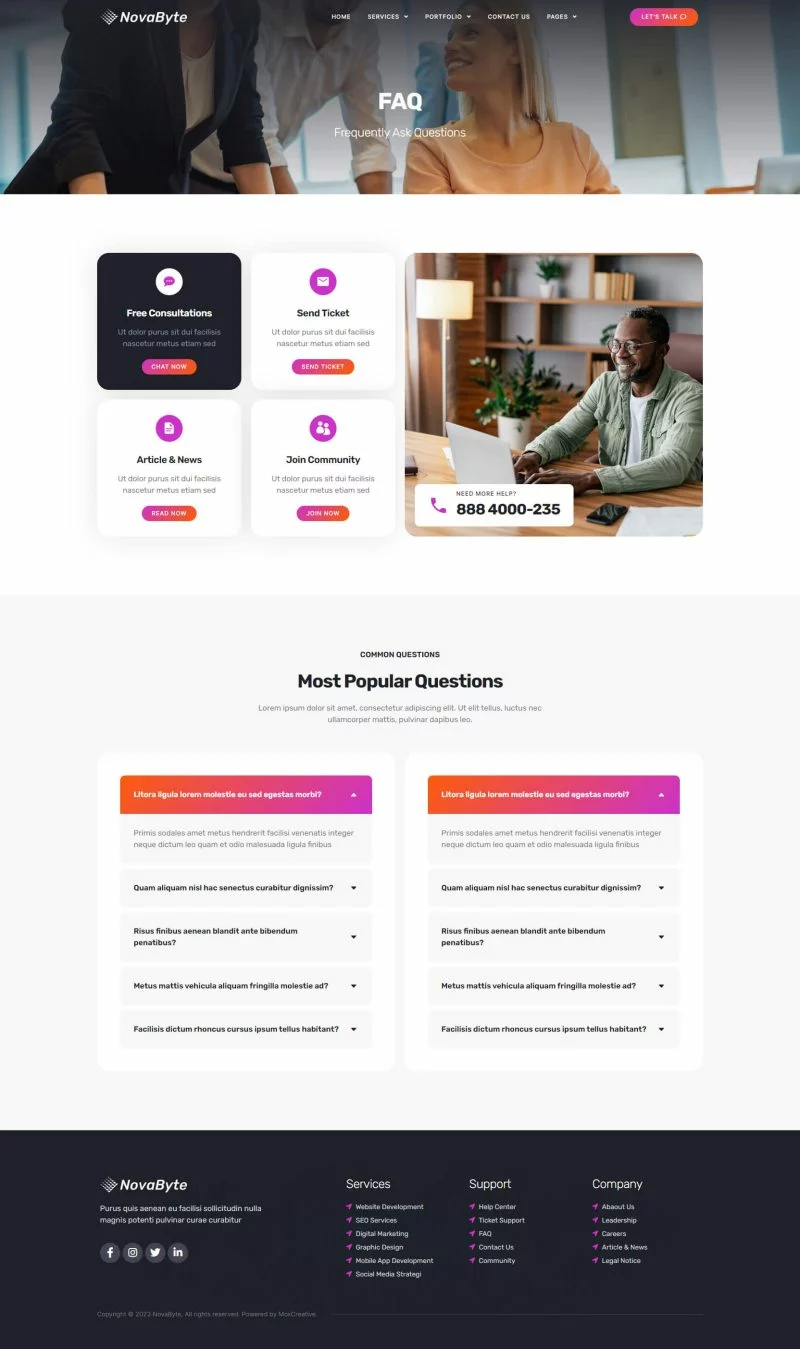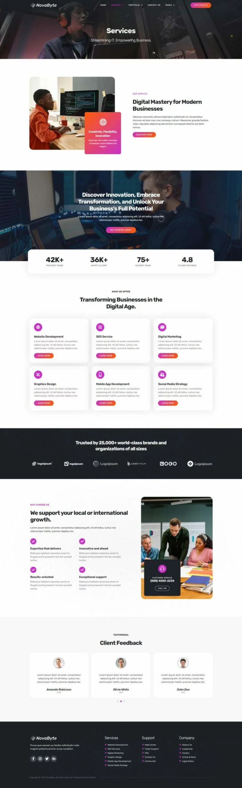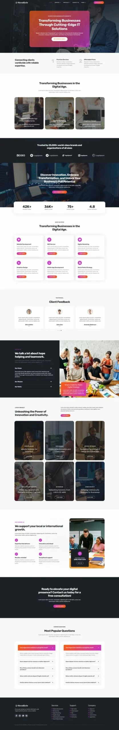 با استفاده از کیت قالب المنتور شرکت خدمات و راه حل های آی تی Novabyte، زمان خود را برای ساخت وبسایت خدماتی صرفهجویی کنید. با سازنده صفحه المنتور، شما میتوانید به راحتی آن را ویرایش یا سفارشیسازی کنید، بدون نیاز به کدنویسی، فقط کشیدن و رها کردن.