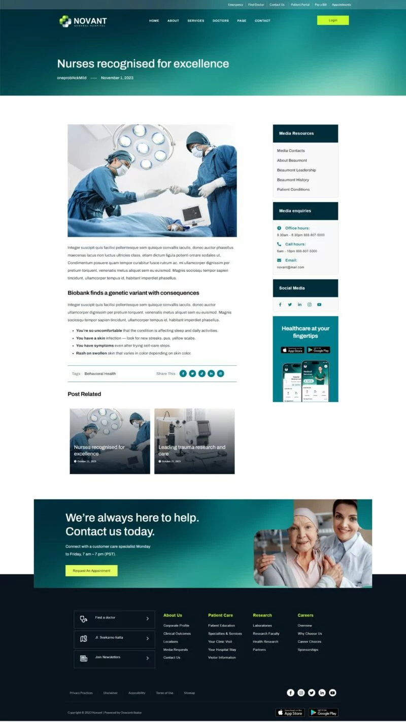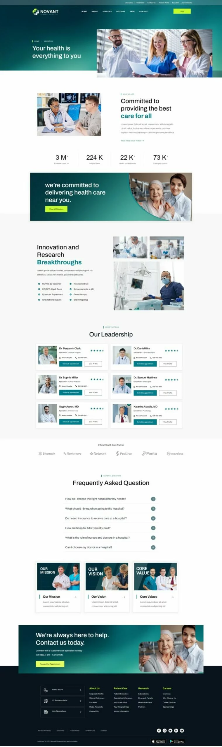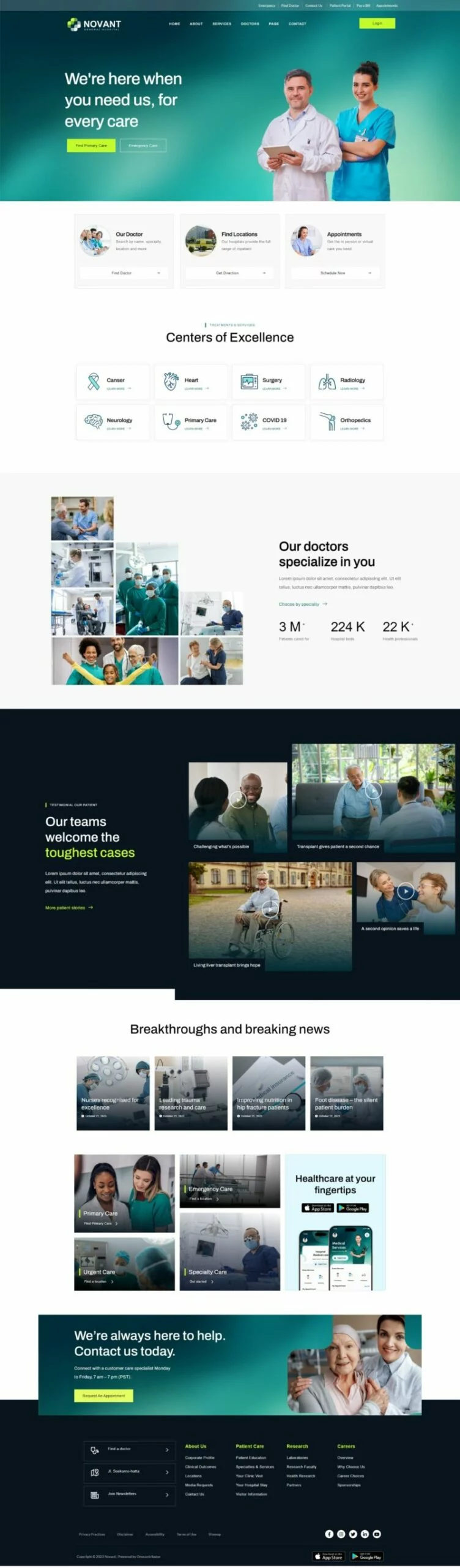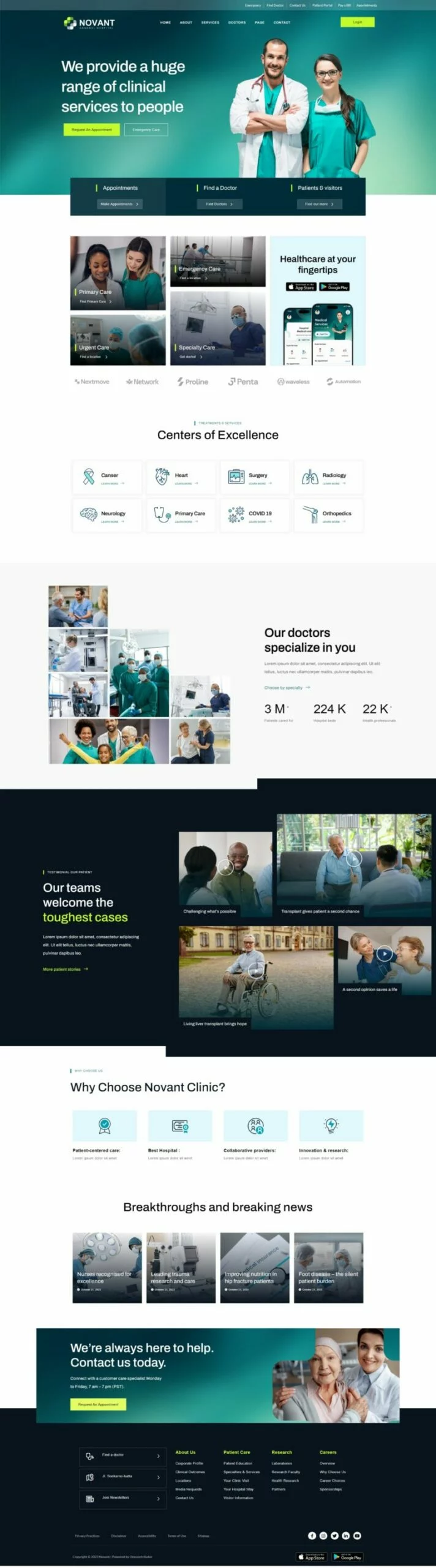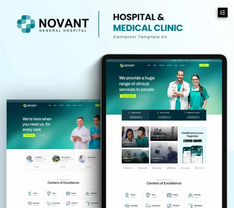 کیت قالب المنتور بیمارستان و کلینیک پزشکی Novant شامل بیش از 20 قالب با دقت ساخته شده است، بنابراین میتوانید با یک کلیک وبسایت حرفهای خود را بسازید.