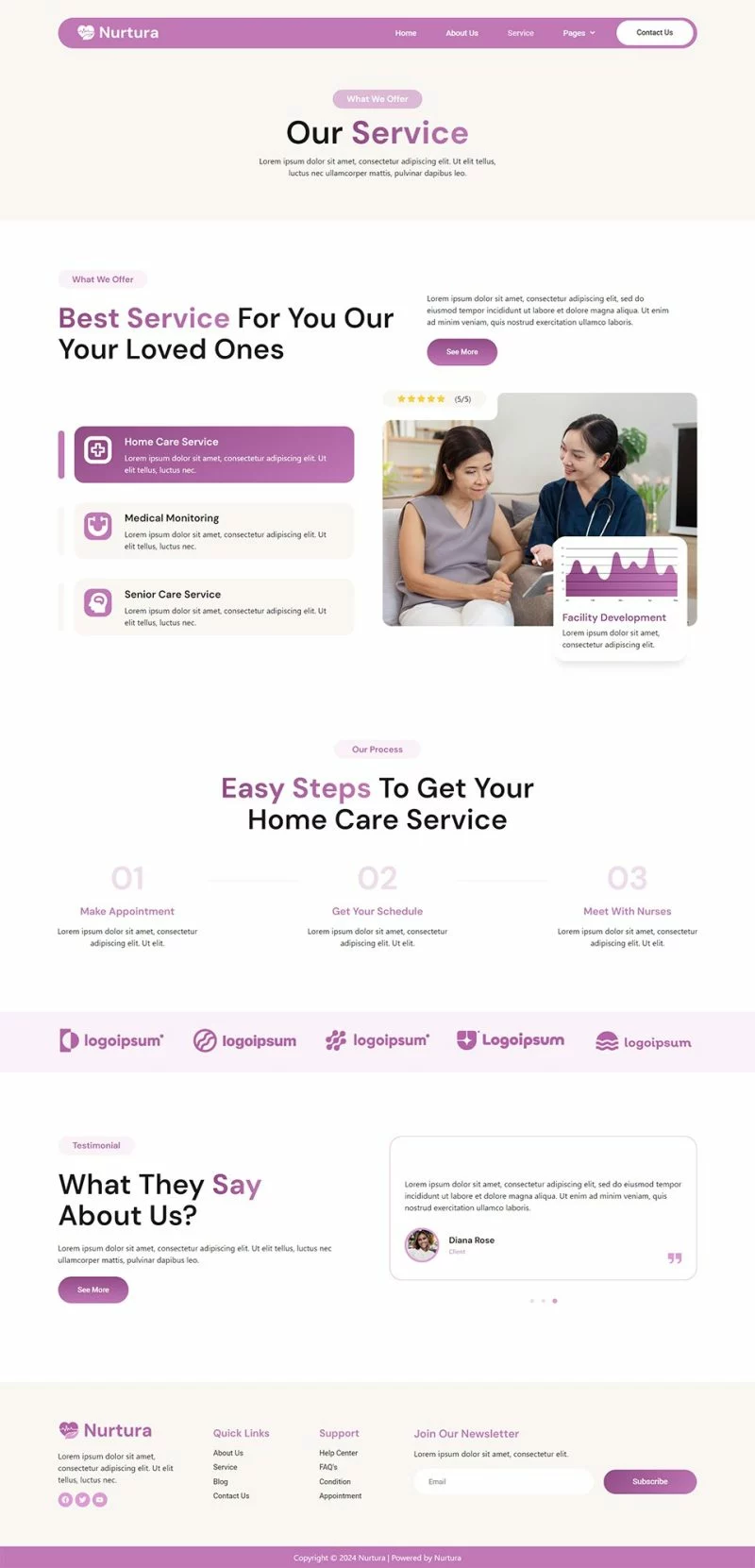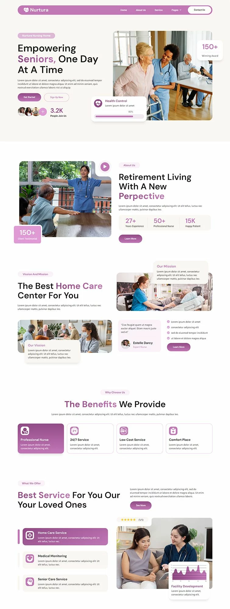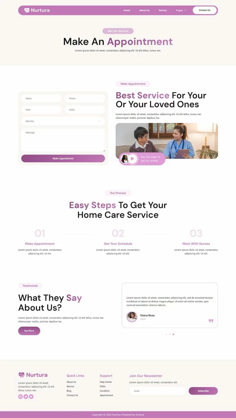کیت قالب Nurtura با طراحی زیبا و مدرن خود، فضایی مناسب برای معرفی خدمات مراقبت از سالمندان فراهم میکند. طراحیهای بصری جذاب و قابلیتهای کاربری این کیت به شما کمک میکند تا یک وبسایت کاربرپسند و جذاب بسازید.