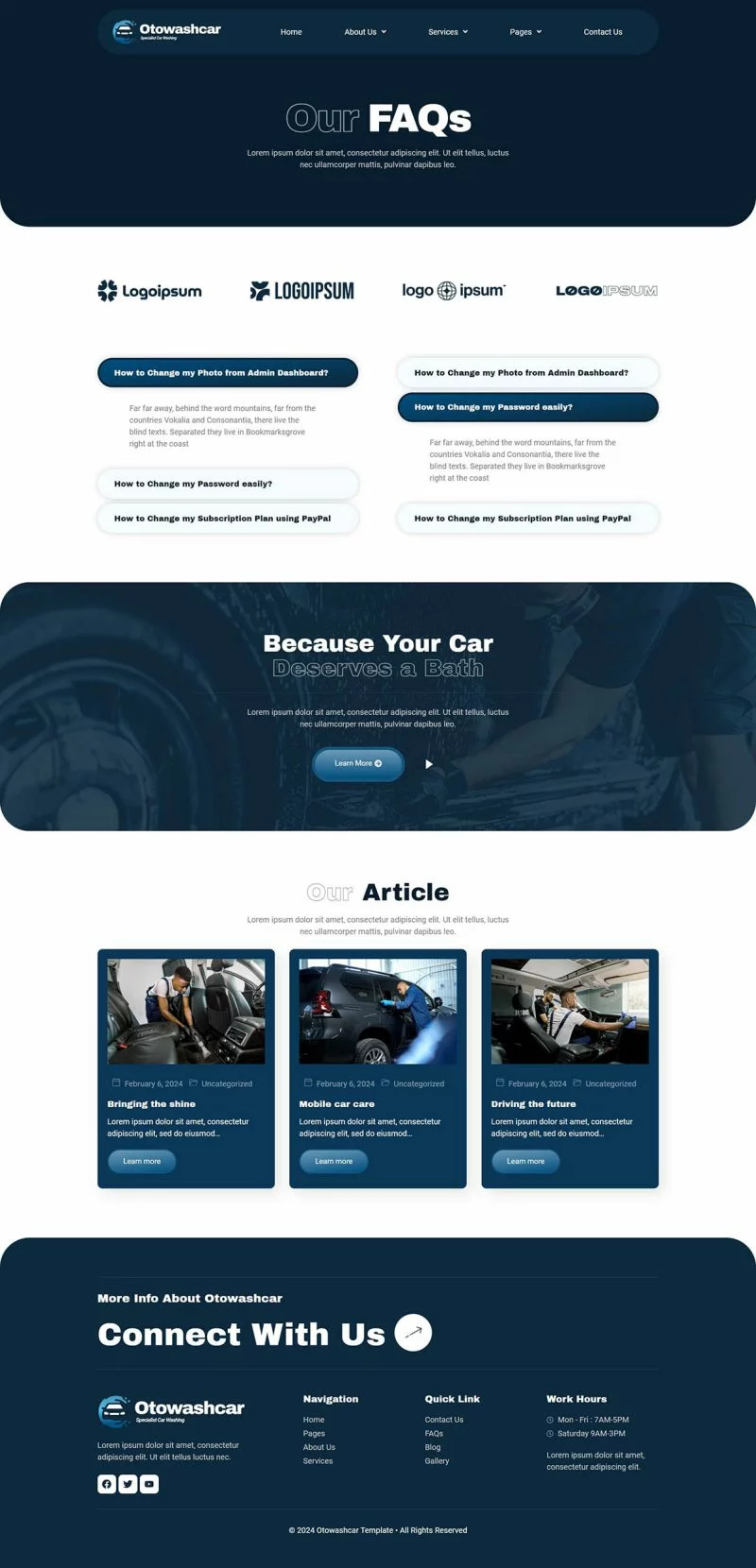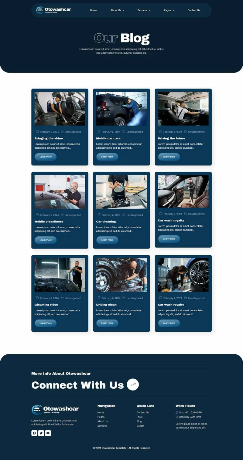 کیت قالب المنتور کارواش Otowashcar برای شستشوی ماشین، دیتیلینگ ماشین و خدمات خودرو است. این کیت از عناصر رایگان استفاده میکند، بنابراین نگران امتحان کردن این قالب نباشید. این یک تم وردپرس نیست. کیتهای قالب شامل محتوای صفحات برای سازنده صفحه المنتور هستند. کیت قالب المنتور کارواش Otowashcar برای استفاده با تم رایگان Hello Elementor بهینه شده است اما ممکن است با اکثر تمهایی که از المنتور پشتیبانی میکنند، استفاده شود.