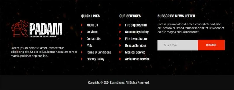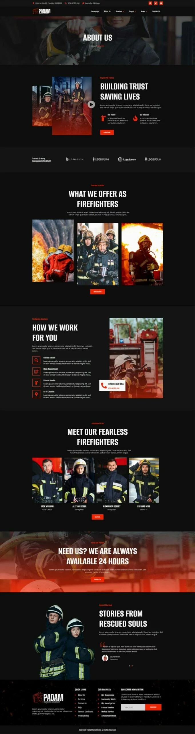 کیت قالب المنتور آتشنشانی Padam با انتخاب ایدهآلی از قالبها برای موارد اضطراری، اداره آتشنشانی، پیشگیری از آتشسوزی، ایستگاه آتشنشانی، آتشنشانان، نجات، ایمنی و همه چیزهای مربوط به کسب و کار بخش آتشنشانی همراه است و به راحتی قابل سفارشیسازی است زیرا از المنتور استفاده میکند، بنابراین نیازی به نوشتن حتی یک خط کد ندارید!