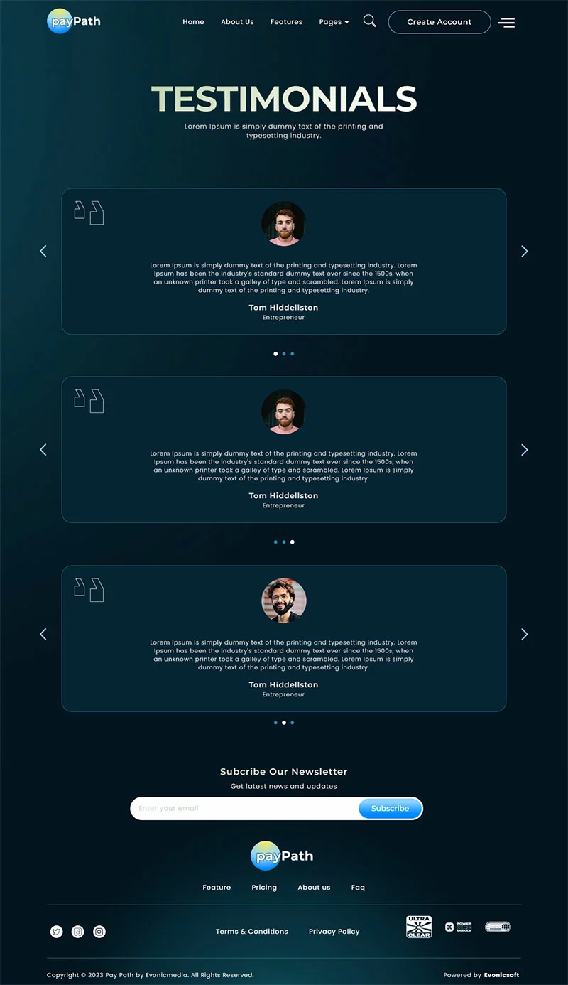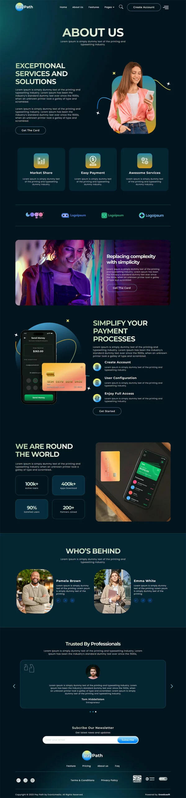 کیت قالب المنتور درگاه پرداخت آنلاین PayPath برای ارائهدهندگان پلتفرمهای تجارت الکترونیک یا خدمات فینتک طراحی شده است. این یک تم وردپرس نیست. کیتهای قالب شامل محتوای صفحات برای سازنده صفحات المنتور هستند. این کیت برای استفاده با تم رایگان Hello Elementor بهینه شده است، اما ممکن است با اکثر تمهایی که المنتور را پشتیبانی میکنند نیز استفاده شود.