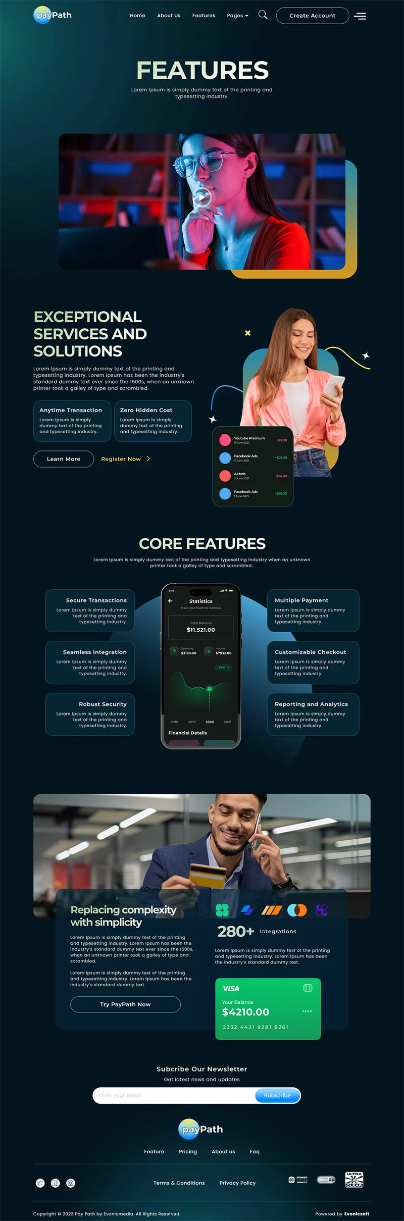استفاده از کیت قالب المنتور درگاه پرداخت آنلاین PayPath به شما این امکان را میدهد تا یک وبسایت حرفهای و کارآمد برای ارائه خدمات درگاه پرداخت آنلاین خود ایجاد کنید. طراحی مدرن و حرفهای آن به شما کمک میکند تا یک تجربه کاربری عالی برای بازدیدکنندگان وبسایت خود فراهم کنید. با امکانات سفارشیسازی بدون نیاز به کدنویسی و بارگذاری سریع، این کیت قالب یک انتخاب عالی برای کسب و کارهای فینتک و تجارت الکترونیک است. افزونههای از پیش نصب شده نیز به شما این امکان را میدهند تا ویژگیهای بیشتری به وبسایت خود اضافه کنید و آن را بهطور کامل بر اساس نیازهای خود تنظیم کنید.