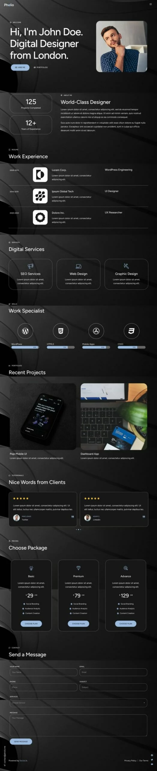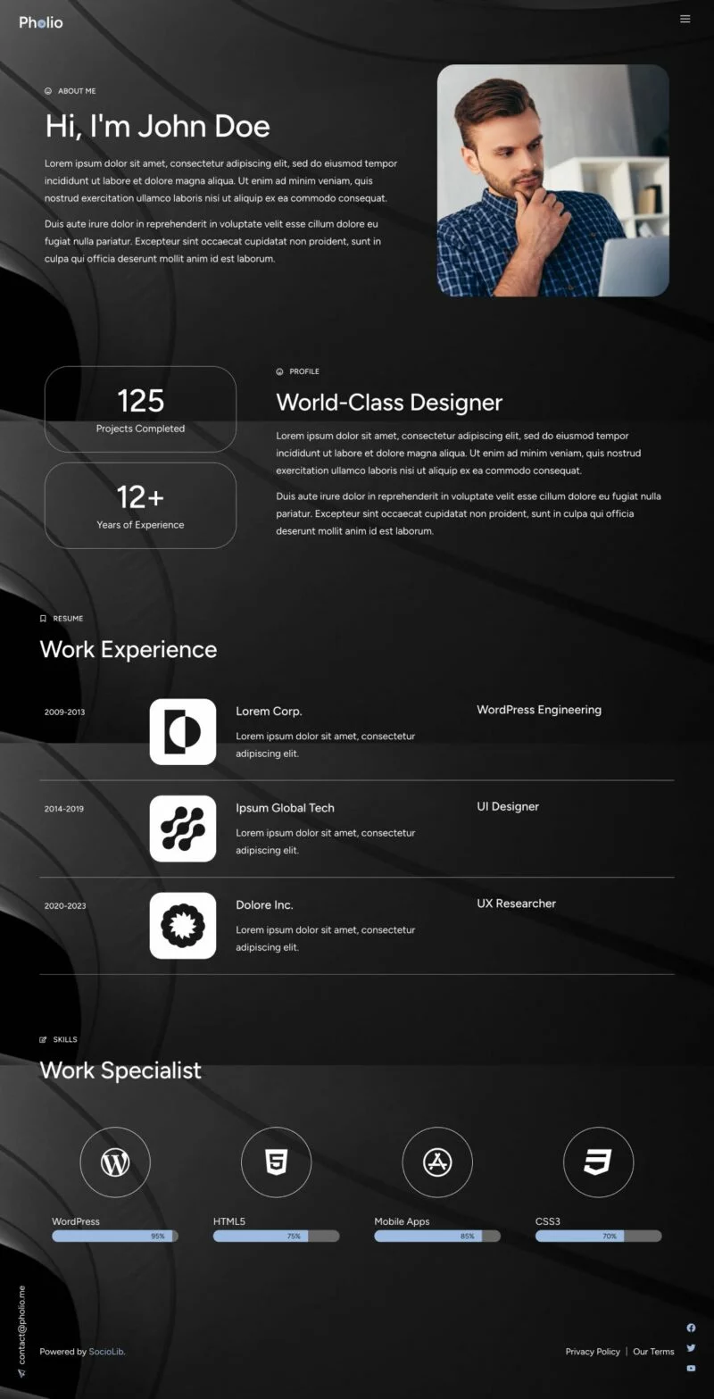 کیت قالب المنتور نمونه کار و رزومه Pholio، یک کیت برای ساخت سریع و آسان وبسایتهای نمونه کارها و رزومه شخصی با استفاده از افزونه Elementor Page Builder برای وردپرس است. این قالب مناسب برای شخصی، رزومه، بیوگرافی، پروفایل، طراحان، CV، وبسایتهای تک صفحهای، حالت تاریک و غیره میباشد. با استفاده از این کیت قالب با سبک طراحی مدرن و خلاقانه، به وبسایت وردپرسی خود یک حس مدرن ببخشید.