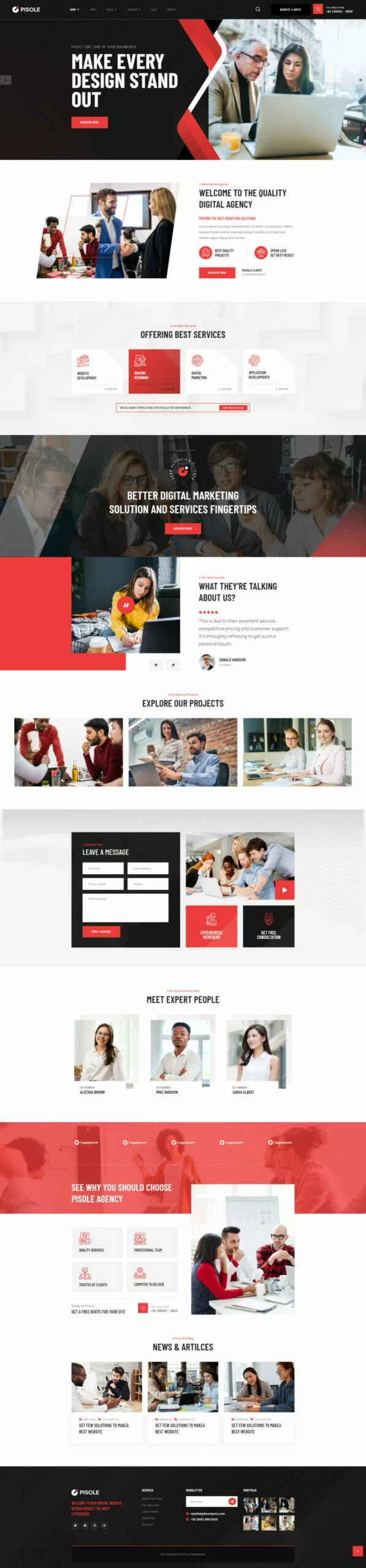 کیت قالب المنتور آژانس دیجیتال Pisole به طور خاص برای طراحی وب، توسعه وب، بازاریابی دیجیتال، خدمات SEO و سایر خدمات مرتبط با آژانسها و کسبوکارها طراحی شده است. کیت Pisole با استفاده از المنتور ایجاد شده است. این قالب به صورت 100% واکنشگرا در هر دستگاهی نمایش داده میشود و نیازی به مهارتهای کدنویسی ندارد!
