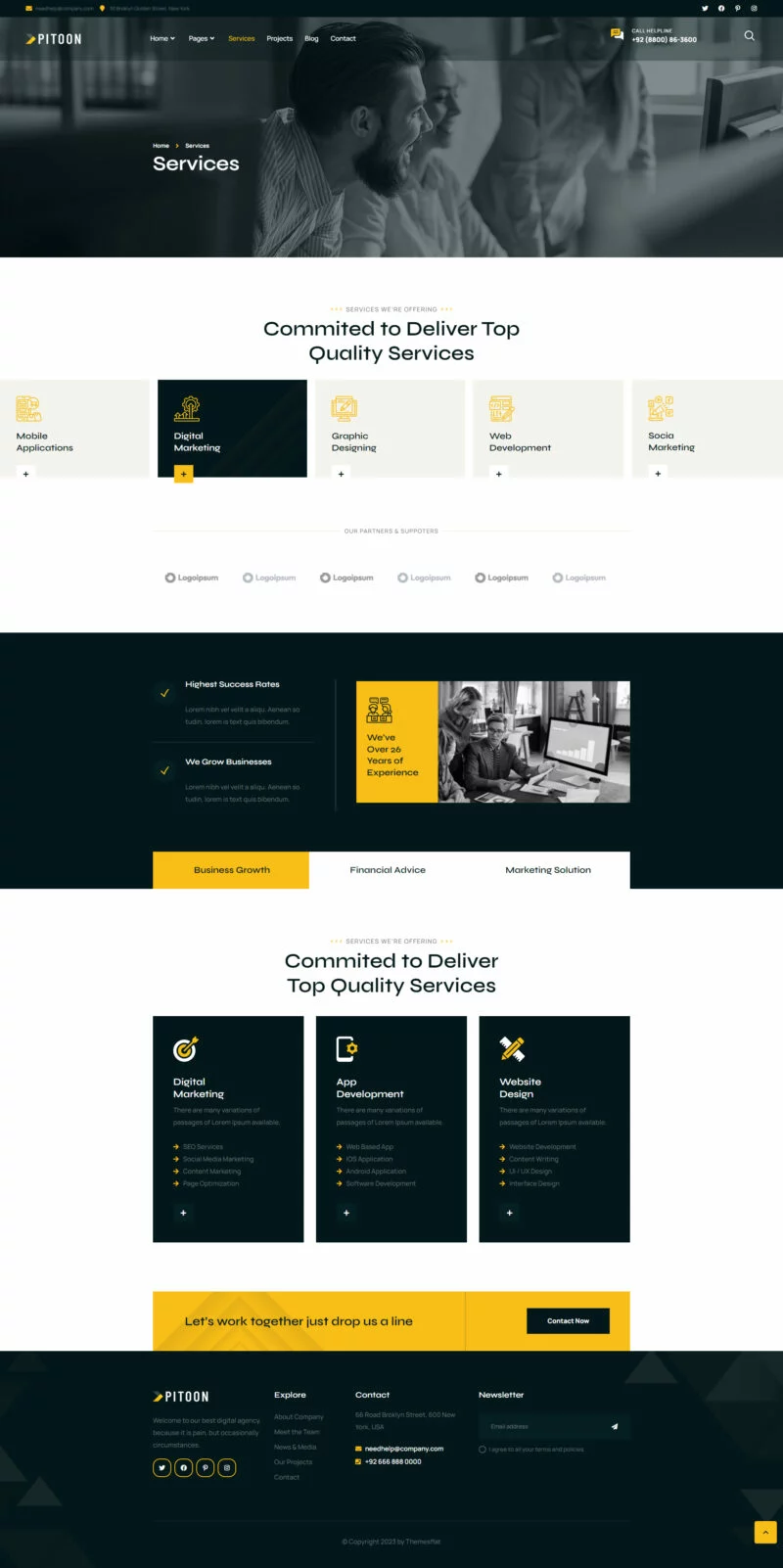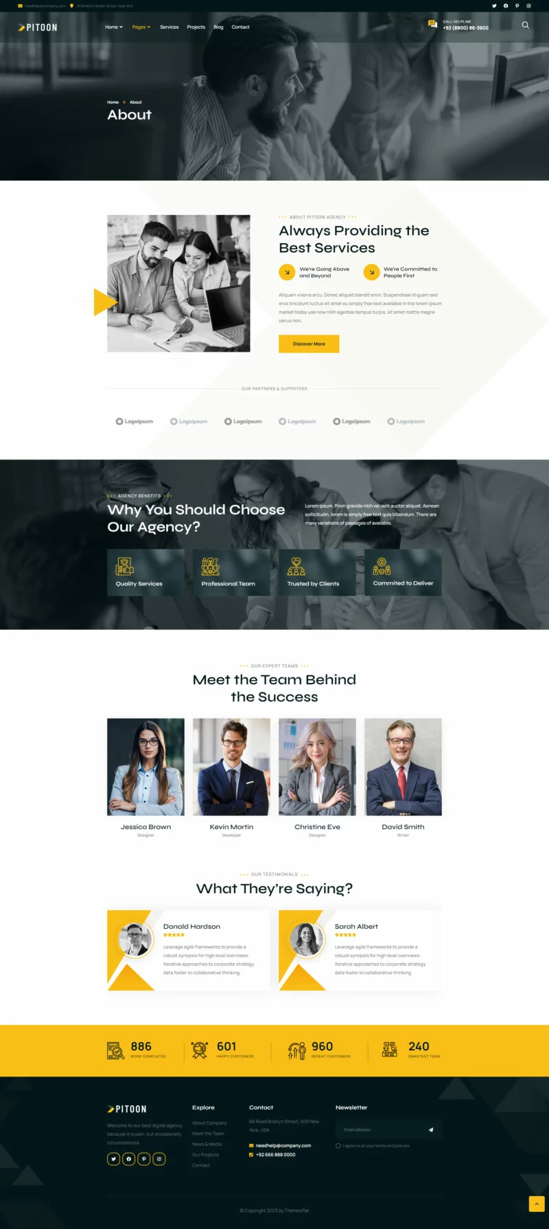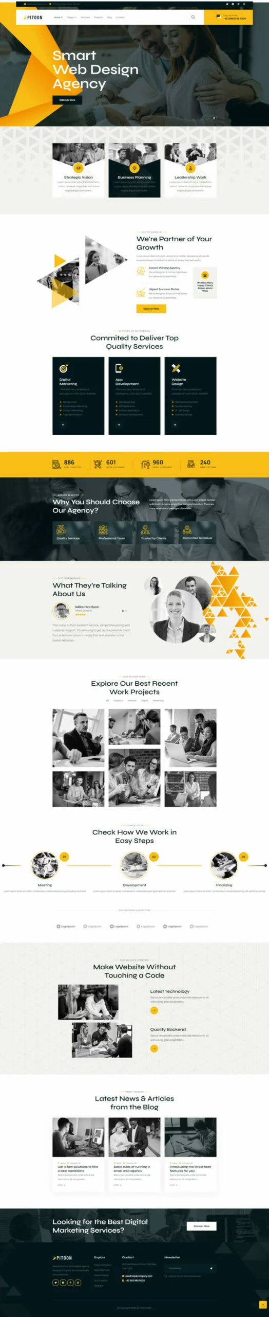 کیت قالب المنتور آژانس دیجیتال خلاق Pitoon بهطور خاص برای طراحی وب، توسعه وب، بازاریابی دیجیتال، خدمات SEO و سایر خدمات مرتبط با آژانسها و کسبوکارها طراحی شده است. کیت Pitoon با المنتور، بهترین سیستم صفحهساز، ایجاد شده است. این صفحهساز کشیدن و رها کردن آسان استفاده میشود که به شما کمک میکند هر طرحی که تصور میکنید را بهسرعت و آسانی ایجاد کنید. این قالب در هر دستگاهی 100% واکنشگرا خواهد بود. بدون نیاز به مهارتهای کدنویسی!