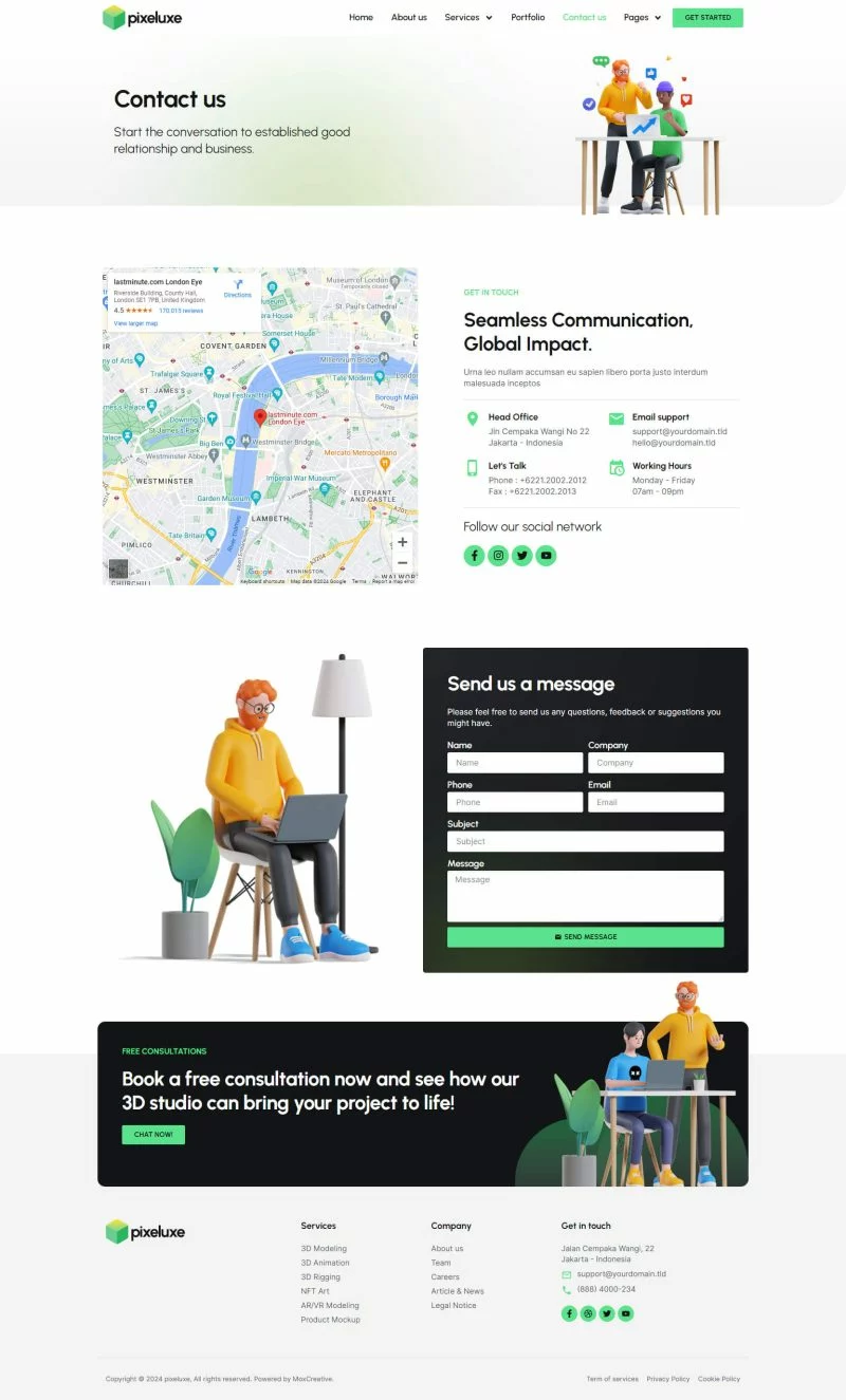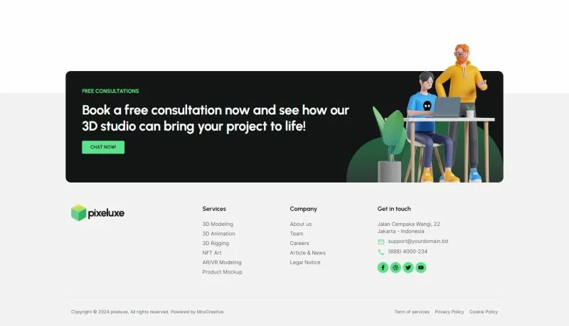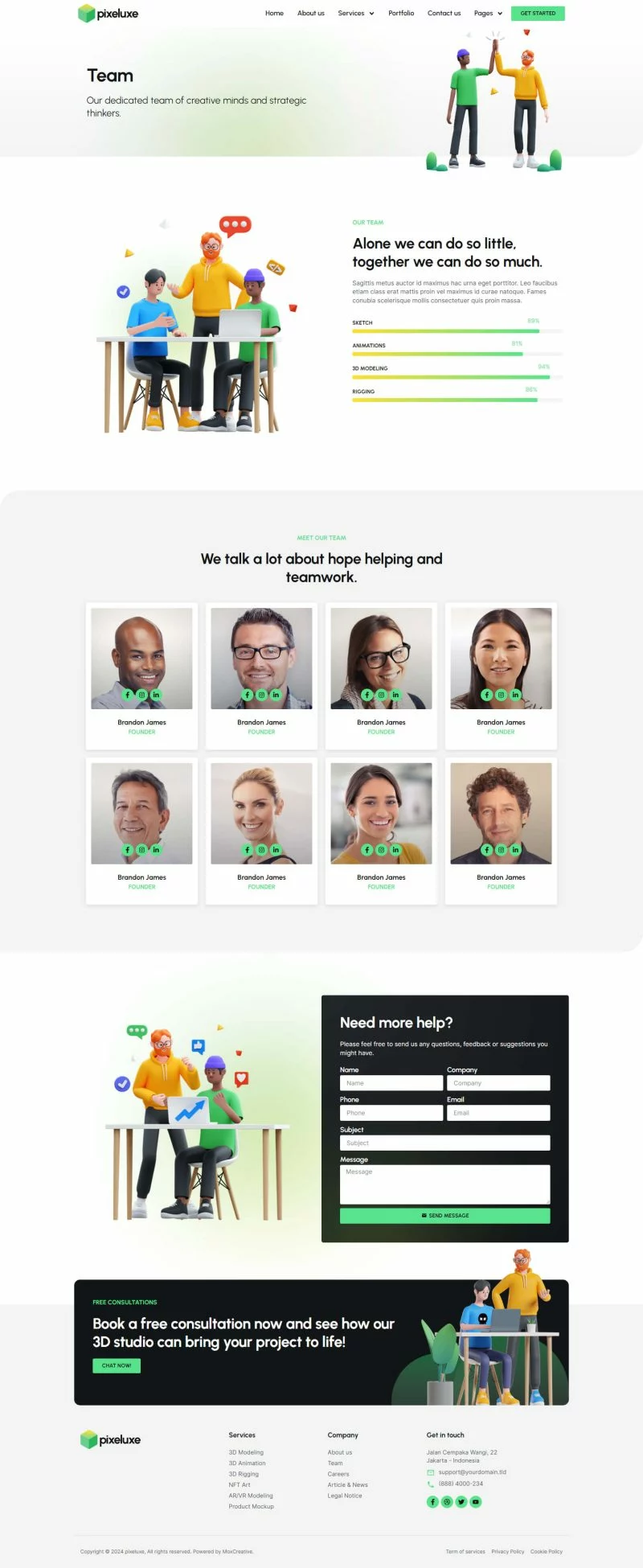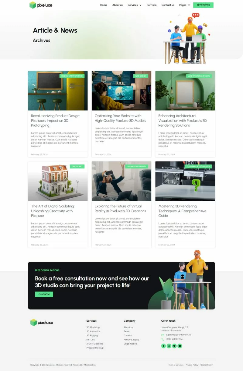 کیت قالب المنتور استودیو طراحی سه بعدی Pixeluxe شامل بیش از 12 قالب از پیش ساخته شده با طراحی جذاب و سبک مدرن میباشد. شما میتوانید از این کیت قالب خلاقانه برای هر نوع کسبوکار یا خدماتی مانند استودیو طراحی، طراحی داخلی، استودیو انیمیشن سهبعدی، انیمیشن ویدئویی، مدلسازی سهبعدی، خدمات فیلم سهبعدی، استودیو داراییهای بازی سهبعدی و بسیاری دیگر استفاده کنید.