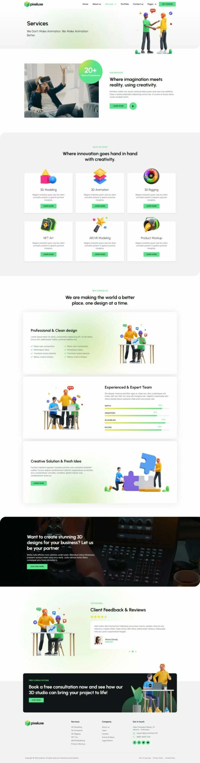 کیت قالب المنتور استودیو طراحی سه بعدی Pixeluxe به شما این امکان را میدهد که به سرعت و با استفاده از طراحیهای از پیش ساخته شده و حرفهای، وبسایتی مدرن و واکنشگرا ایجاد کنید. با قابلیت سفارشیسازی آسان و استفاده از افزونههای المنتور، این کیت تمامی نیازهای شما را برای ایجاد یک وبسایت خلاقانه و کارآمد برآورده میکند. بدون نیاز به کدنویسی، شما میتوانید تمامی عناصر را با کشیدن و رها کردن ویرایش کنید و وبسایتی زیبا و منحصر به فرد بسازید که مخاطبان شما را تحت تأثیر قرار دهد.