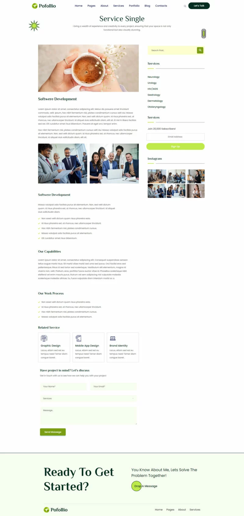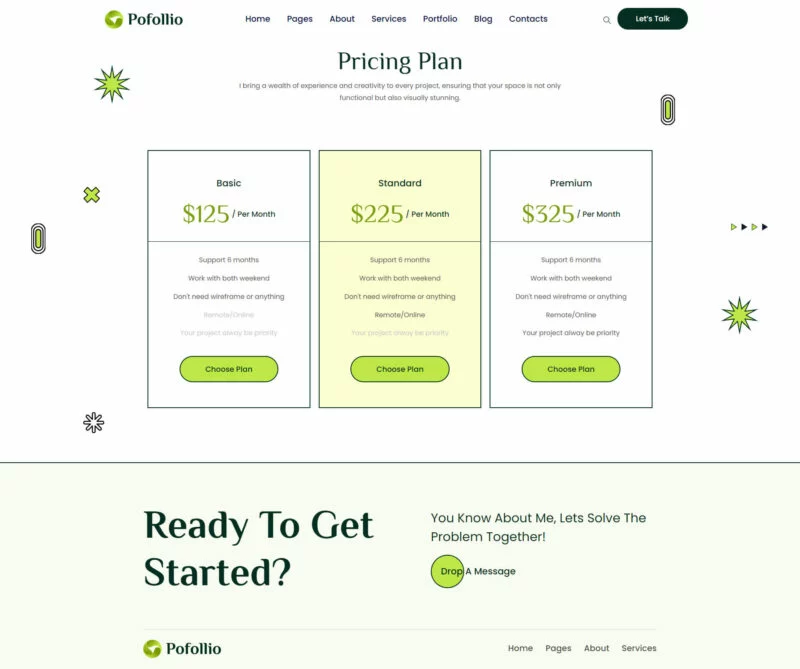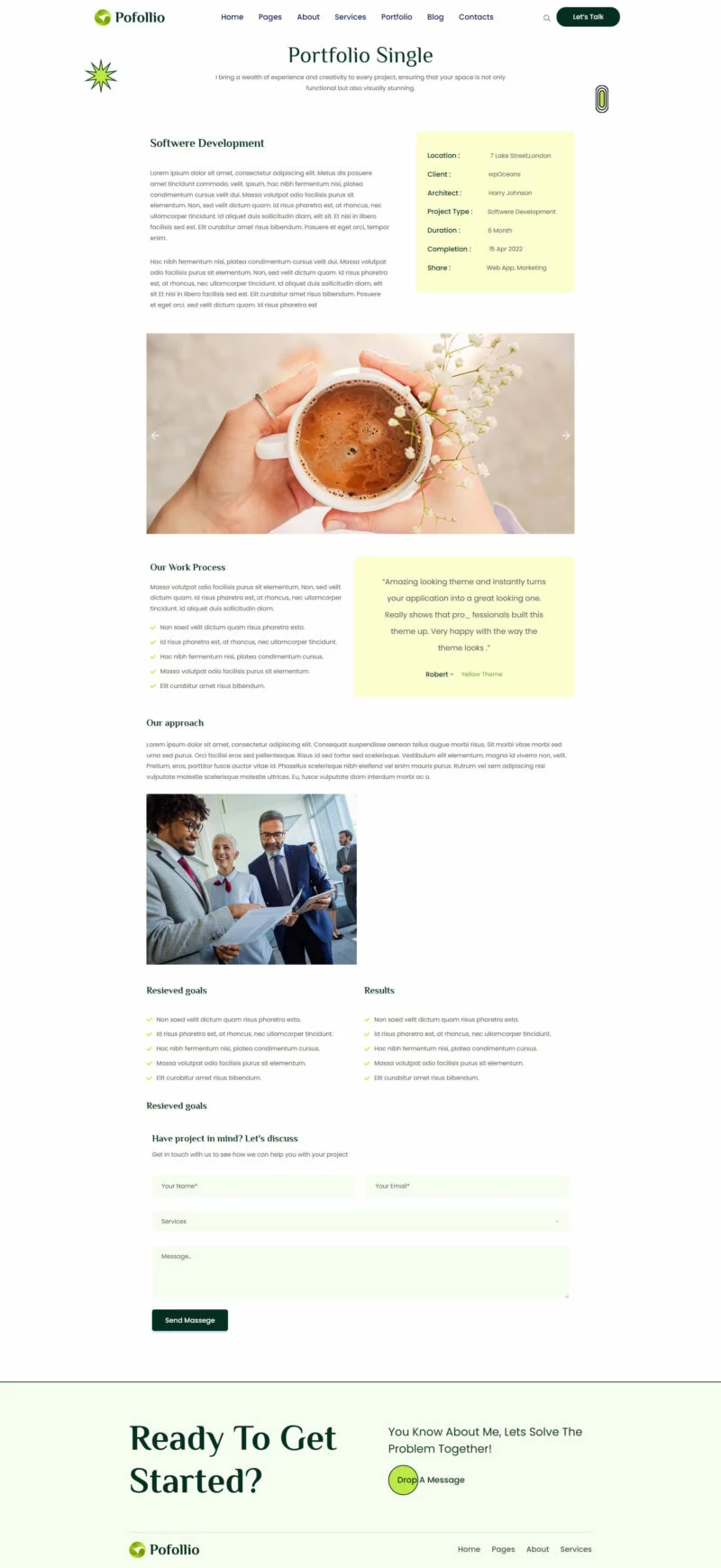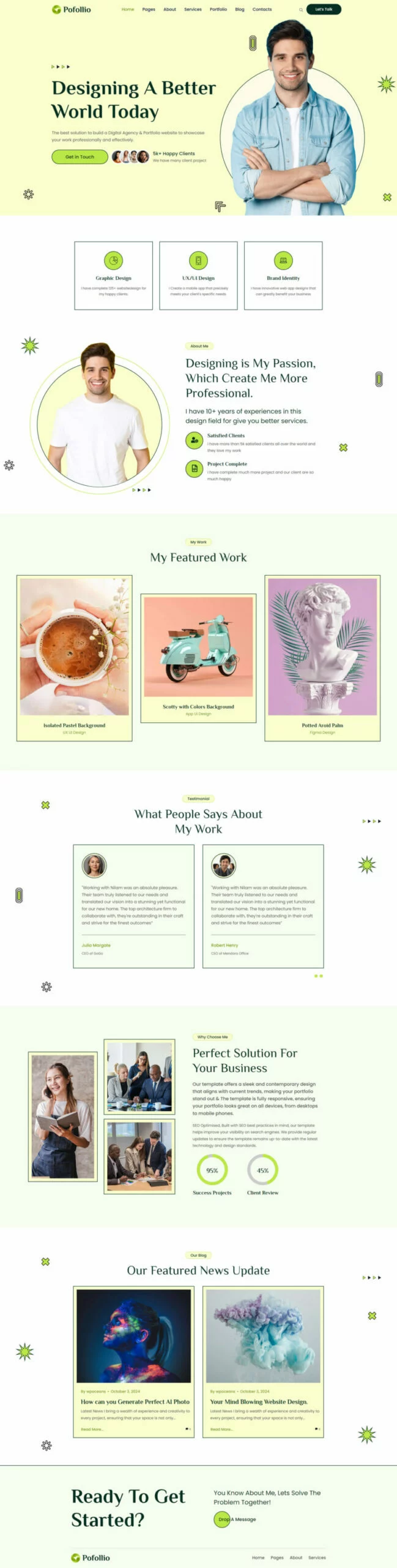 این کیت یک تم وردپرس نیست و شامل محتوای صفحات برای سازنده صفحات المنتور است. Pofollio بهطور خاص برای استفاده با قالب رایگان Hello Elementor بهینهسازی شده است، اما میتوان آن را با اکثر تمهایی که از المنتور پشتیبانی میکنند نیز استفاده کرد.