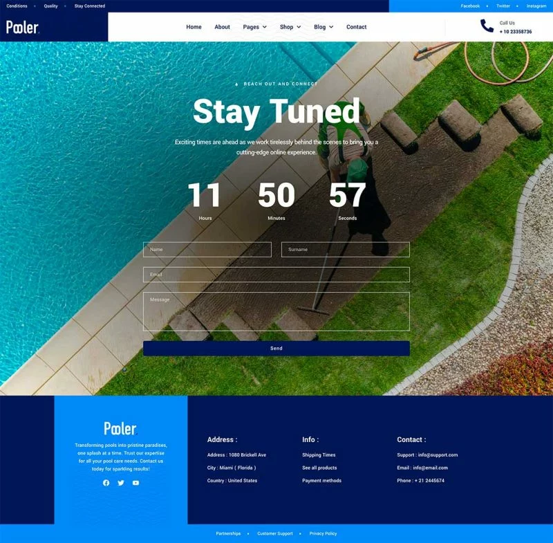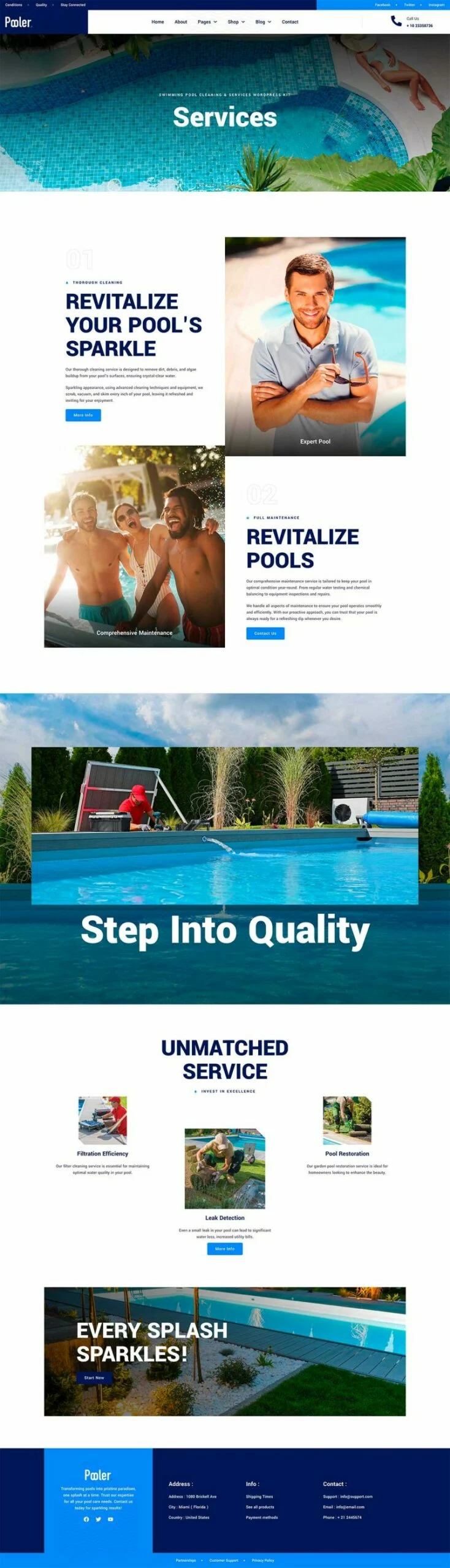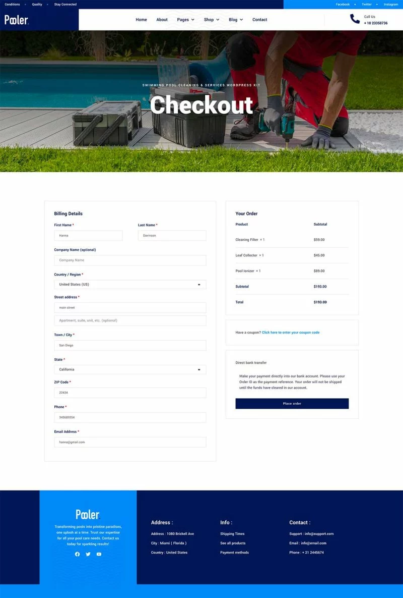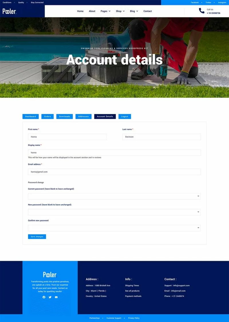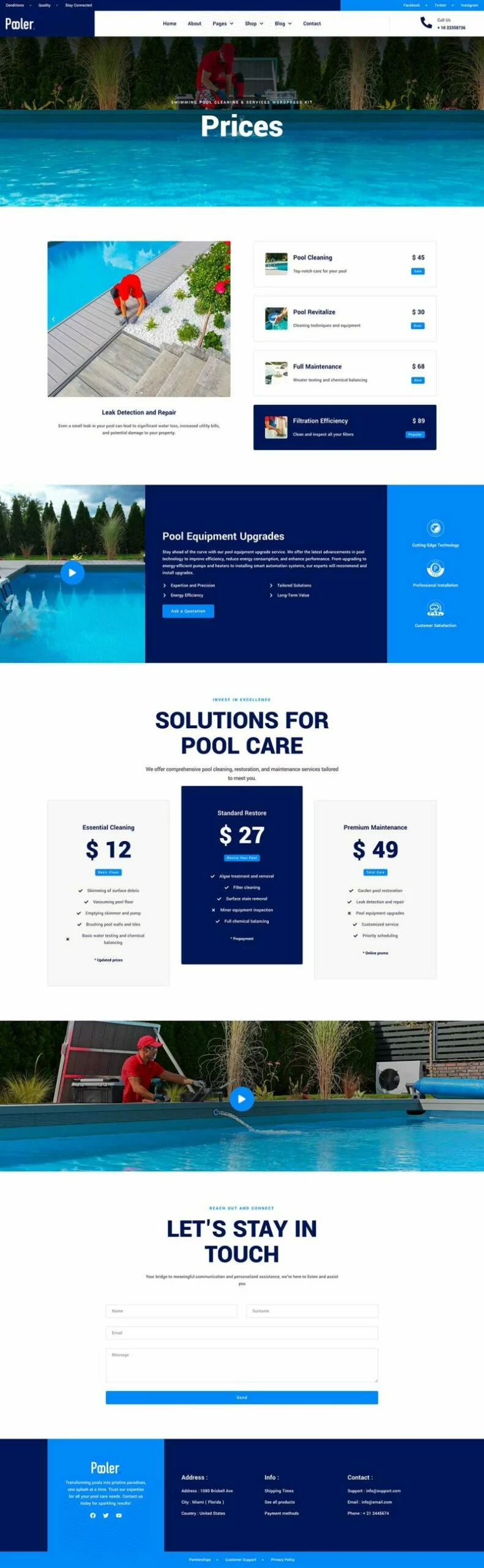 کیت قالب المنتور خدمات تمیزکاری استخر Pooler با طراحی مدرن و قابلیتهای سفارشیسازی پیشرفته، این قالب به شما کمک میکند تا بدون نیاز به دانش کدنویسی، یک وبسایت با عملکرد بالا و ظاهری جذاب ایجاد کنید. از قالبهای متنوع آن میتوان برای ایجاد صفحات مختلف استفاده کرد و با استفاده از Elementor Pro میتوان امکانات بیشتری را به وبسایت اضافه کرد.