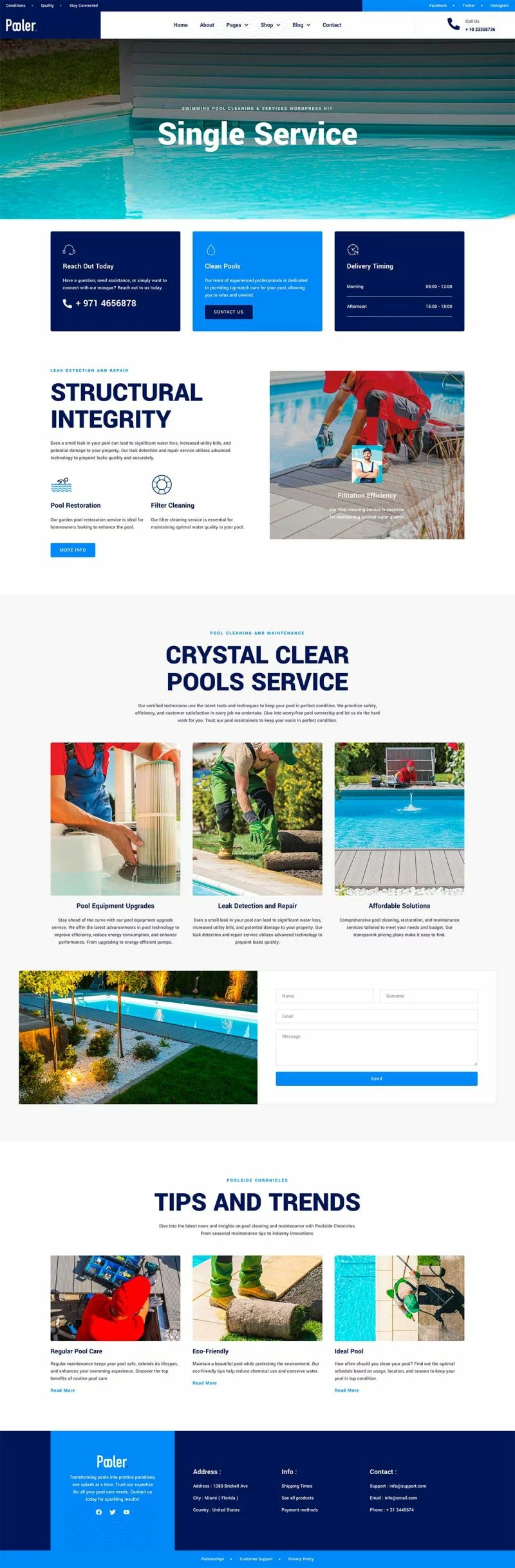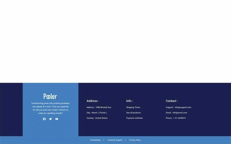 کیت قالب المنتور خدمات تمیزکاری استخر Pooler به شما امکان میدهد به سرعت و به آسانی وبسایتهایی برای کسبوکار خود ایجاد کنید. این کیت با استفاده از افزونه صفحهساز المنتور وردپرس ساخته شده است و بهطور خاص برای استفاده با قالب رایگان Hello Elementor بهینهسازی شده است، اما میتواند با اکثر قالبهای پشتیبانیکننده المنتور نیز سازگار باشد.