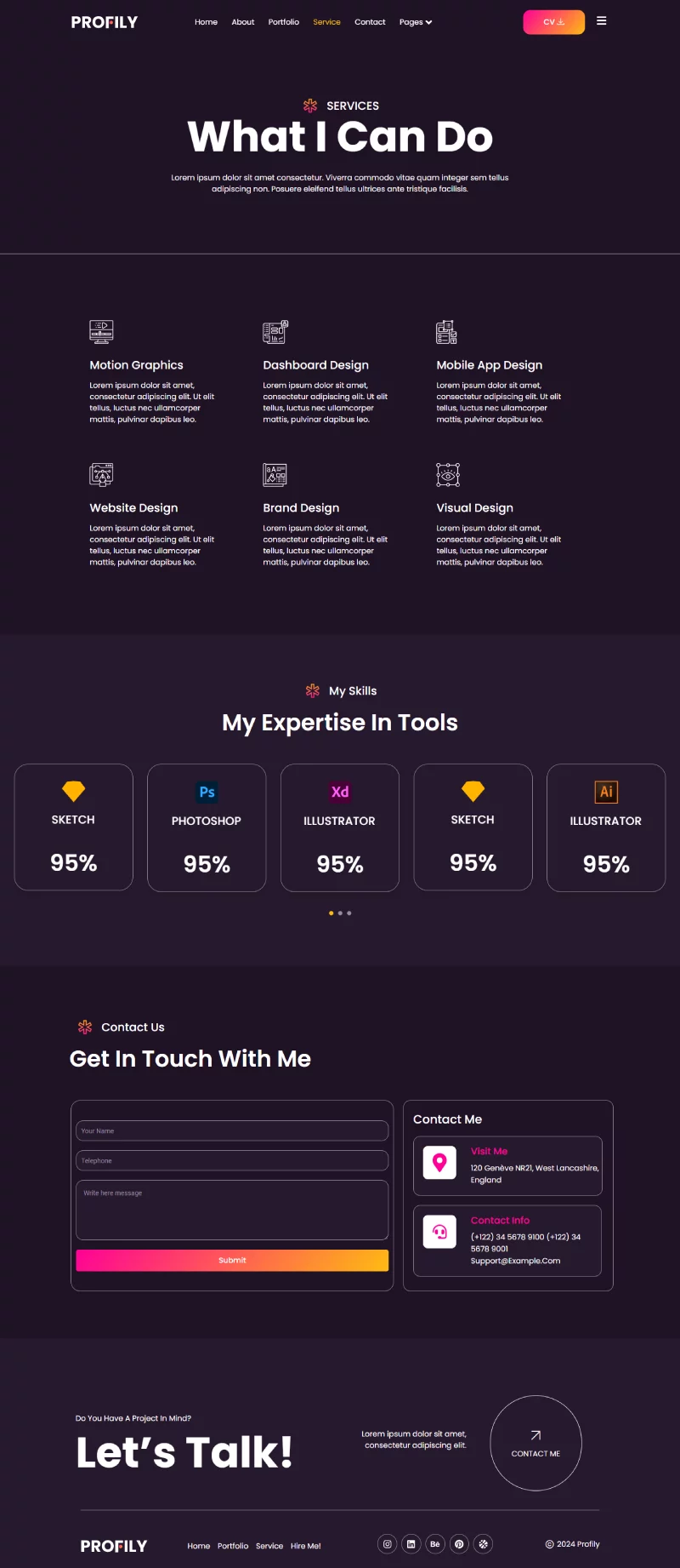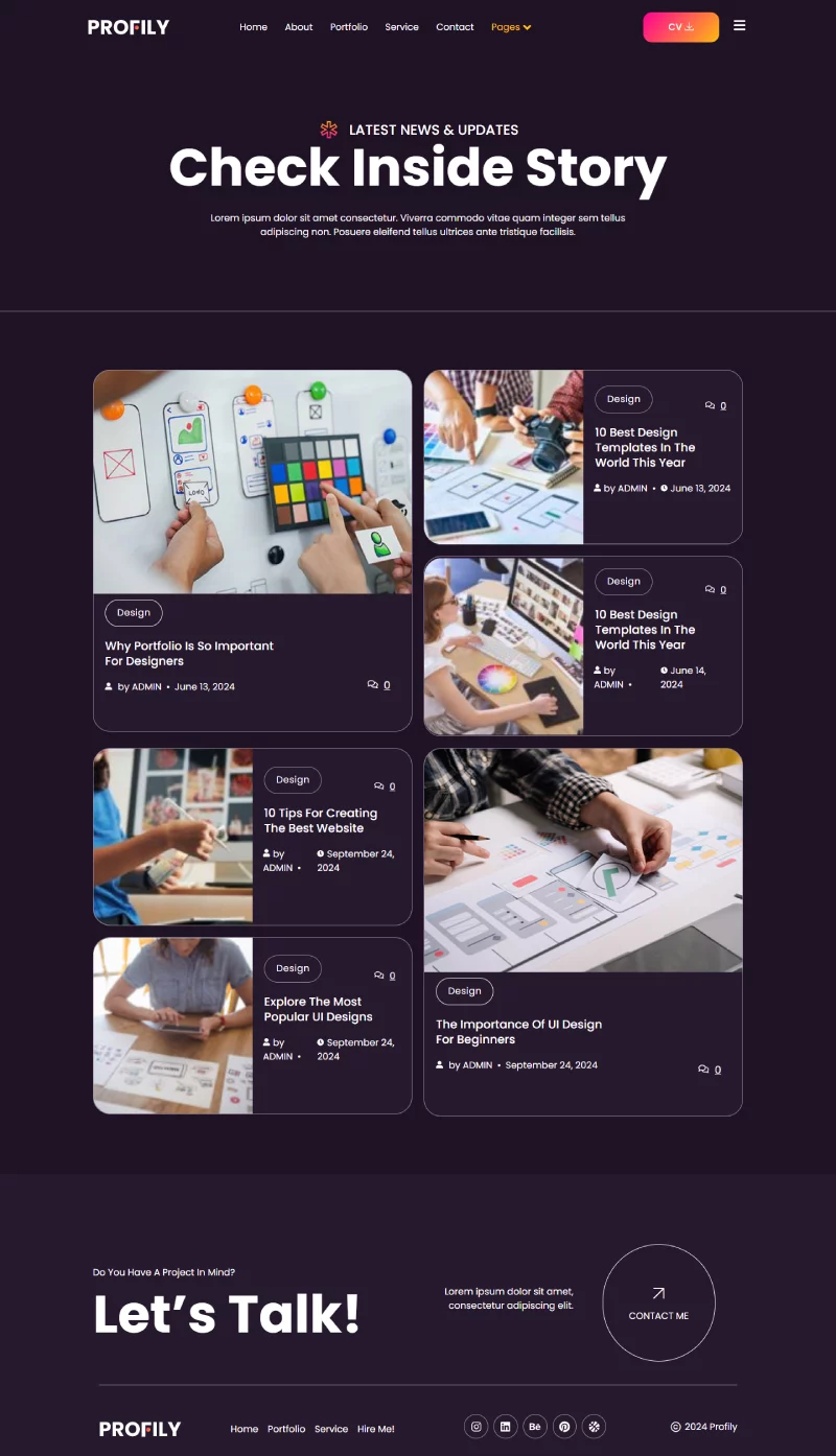 Profily با طراحی ساده و مدرن، تمامی نیازهای شما برای یک وبسایت پروفایل شخصی را برآورده میکند. این طراحی باعث میشود که وبسایت شما حرفهای و جذاب به نظر برسد و بازدیدکنندگان بیشتری را به خود جذب کند.