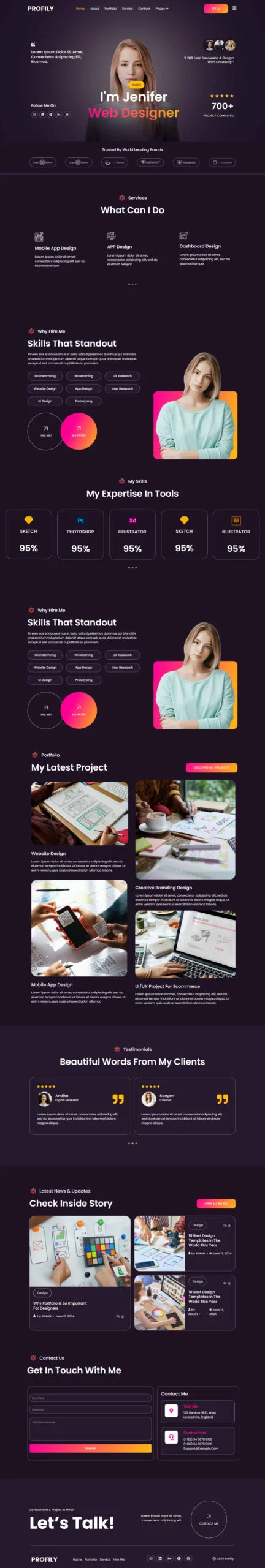 این کیت قالب، انتخابی عالی برای کسانی است که میخواهند با یک وبسایت جذاب و کاربرپسند، خود را بهصورت حرفهای به بازار کار معرفی کنند. اگر به دنبال ساخت یک حضور آنلاین منحصربهفرد و تأثیرگذار هستید، Profily انتخابی مناسب برای شما خواهد بود.
