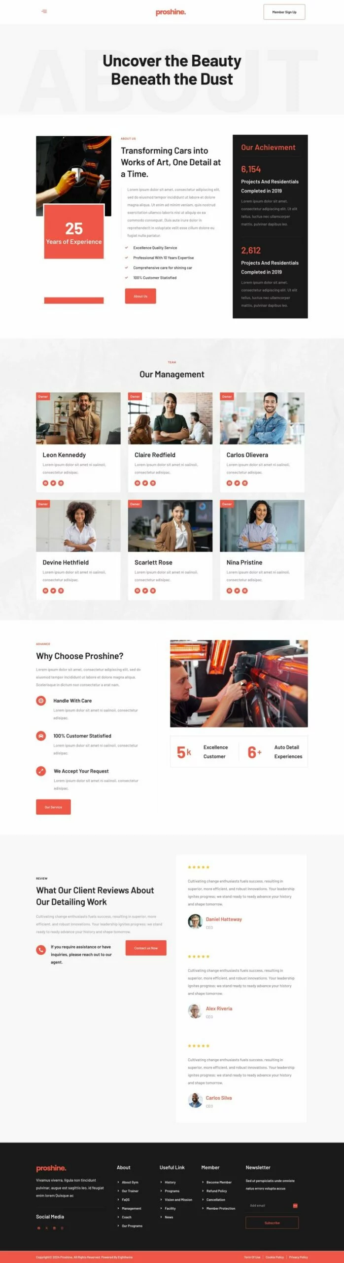 کیت قالب المنتور خدمات خودرو Proshine برای خدمات detailing و سرویسهای خودرو است. این کیت قالب مجموعهای از لایهبندیها برای سازنده صفحات المنتور در وردپرس است و برای استفاده با نسخه رایگان المنتور طراحی شده است. این کیت آماده برای وارد کردن و استفاده مجدد در خدماتی مانند detailing و سرویسهای خودرو، تعمیر و اصلاح خودرو، خدمات شستشو، و مراقبت از خودروها است.