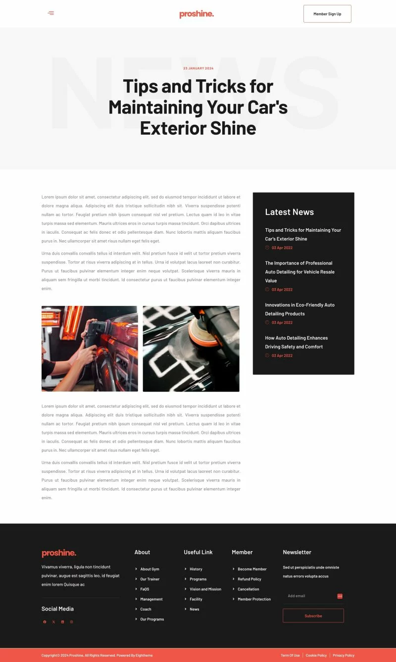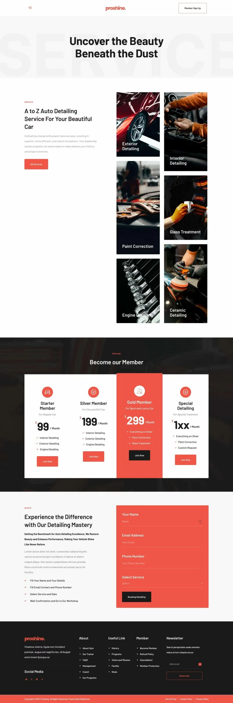 کیت قالب المنتور خدمات خودرو Proshine بهطور خاص برای خدمات خودرو طراحی شده و شامل تمام ابزارها و قالبهایی است که برای ایجاد وبسایتهای حرفهای در این زمینه نیاز دارید. با این کیت، میتوانید به راحتی و بدون نیاز به دانش کدنویسی، وبسایتهایی جذاب و کاربرپسند برای خدمات detailing خودرو، شستشو، و تعمیرات خودرو ایجاد کنید.