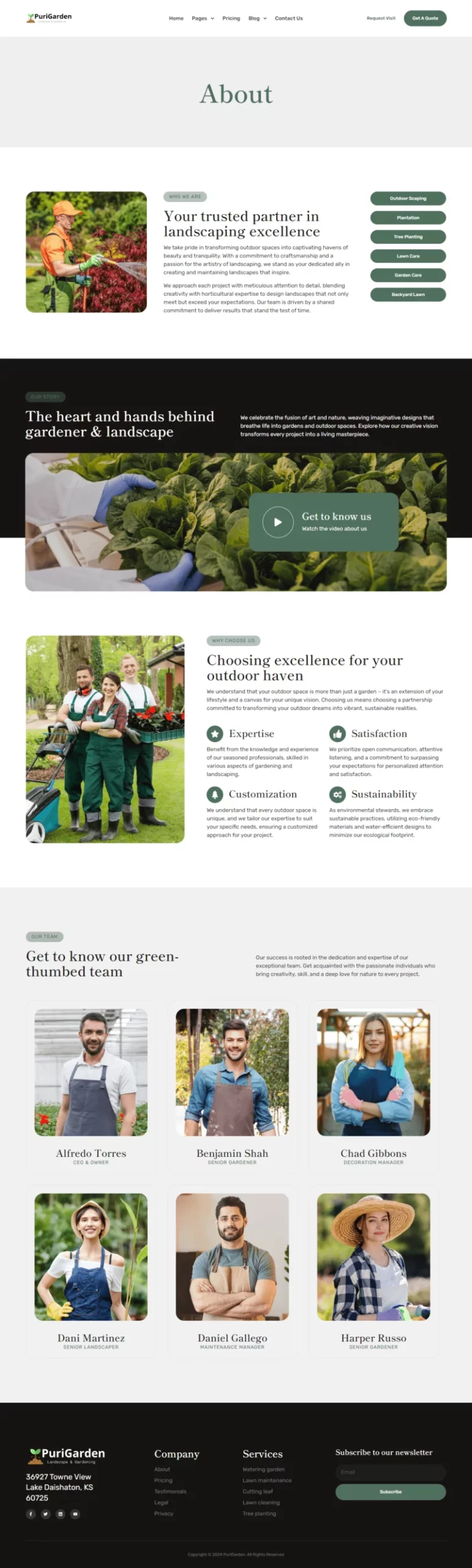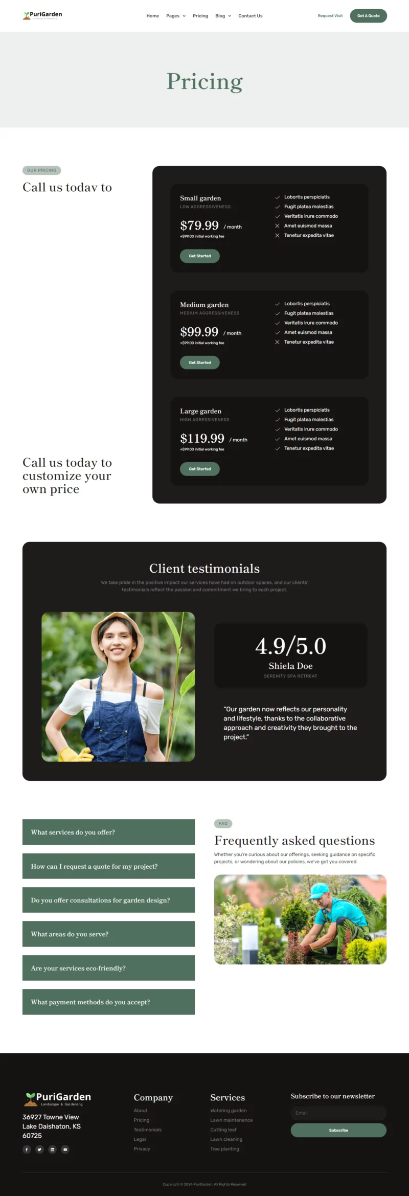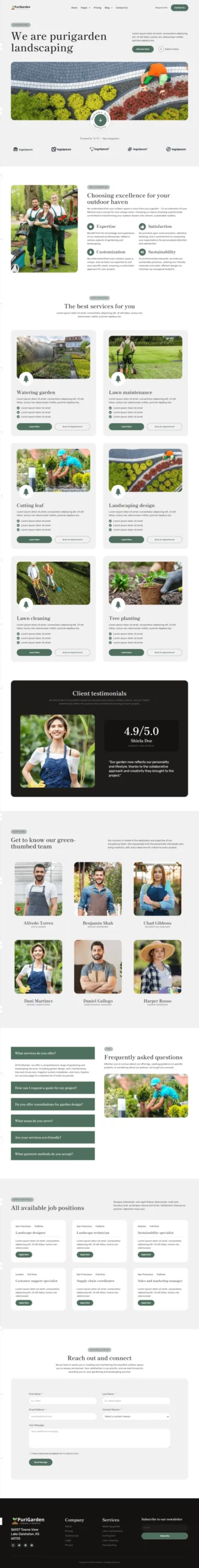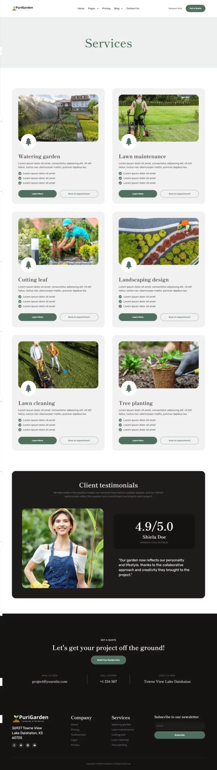 کیت قالب المنتور باغبانی و طراحی فضای سبز PuriGarden برای کسبوکارها و افرادی که میخواهند کارها و خدمات خود را به صورت حرفهای نمایش دهند، بسیار مناسب است. این قالب دارای طراحی زیبا و منحصربهفرد با چیدمان 100% واکنشگرا و آماده برای نمایش در دستگاههای با کیفیت بالا (رتینا) است و به سادگی قابل سفارشیسازی است. این کیت شامل بیش از 10 قالب از پیشساختهشده با طراحی ساده، مدرن و شیک است که بدون نیاز به کدنویسی، تنها با کشیدن و رها کردن قابل استفاده هستند.